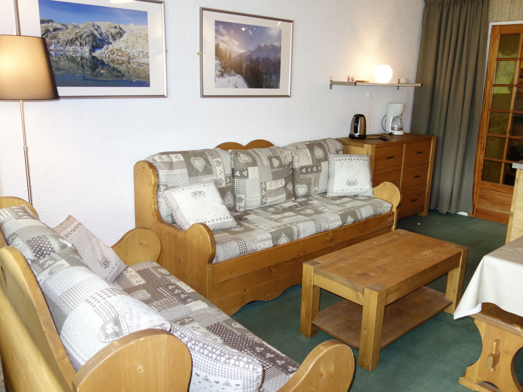 "Sérac V7", 1-Zimmer-Studio 33 m2 im 7. Stock, Südlage. Komfortabel eingerichtet: Eingang mit 2 x 2 Etagenbetten (80 cm, Länge 190 cm). Wohn-/Esszimmer mit 1 Ausziehbett (2 x 80 cm, Länge 190 cm), TV (Flachbildschirm), E-Heizung. Ausgang zur Loggia, Richtung Süden. Kochnische (Backofen, Geschirrspüler, 3 Glaskeramikherd Platten, Wasserkocher, Mikrowelle, elektrische Kaffeemaschine). Bad, sep. WC. Sehr schöne Sicht auf die Berge und die Skipiste. Zur Verfügung: Internet (Wireless LAN, extra). Bitte beachten: Nichtraucher-Unterkunft. Rauchmelder. Inserat einer Privatperson nach Artikel 155, IV, CGI.