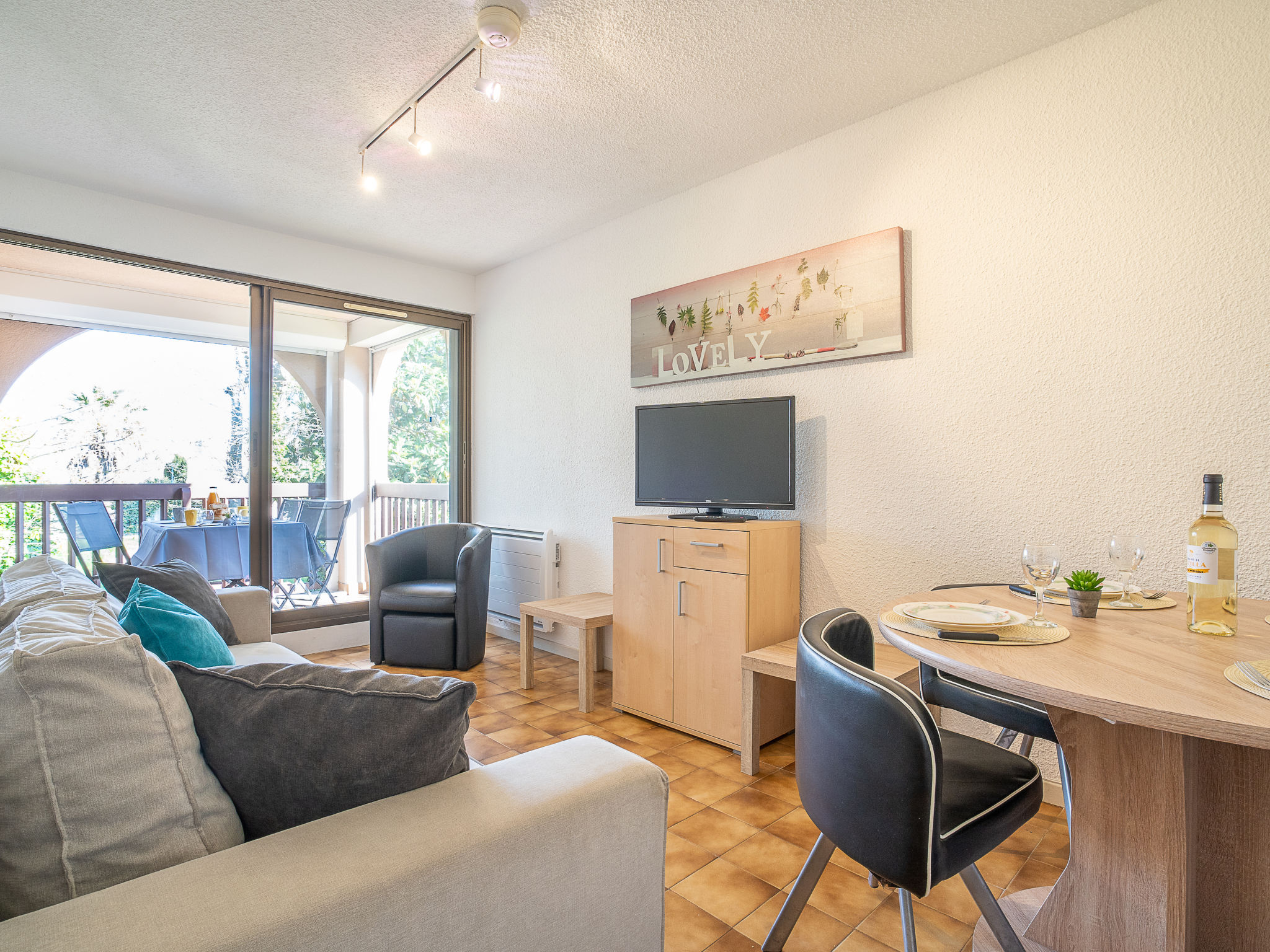 Residenz "Les Bastides de Grand Stade", auf 2 Stockwerken. Im Ortsteil Grand Stade, 1.8 km vom Meer, 1.8 km vom Strand. Zur Mitbenutzung: Schwimmbad (20 x 10 m, 100 - 200 cm tief, saisonale Verfügbarkeit: 15.Jun.-15.Sep.). Im Hause: Waschmaschine (zur Mitbenutzung, extra). Einkaufsgeschäft, Lebensmittelgeschäft 600 m, Supermarkt 2 km, Restaurant 600 m, Bahnstation "Elne" 7 km, Sandstrand "Plage Sud" 1.8 km. Sporthafen 2 km, Golfplatz (27 Loch) 5.5 km, Segelschule 2 km, Minigolf 4.4 km, Reitstall 2 km, Sportzentrum 150 m. Nahe gelegene Sehenswürdigkeiten: Aqualand 2 km.