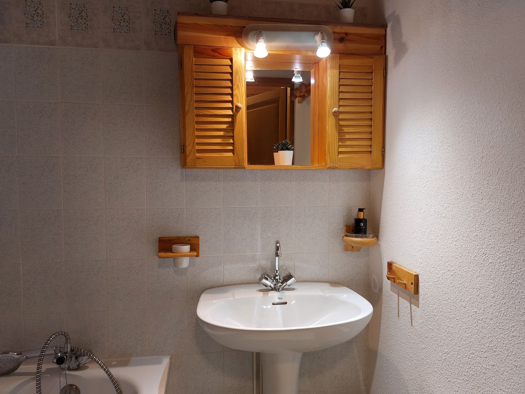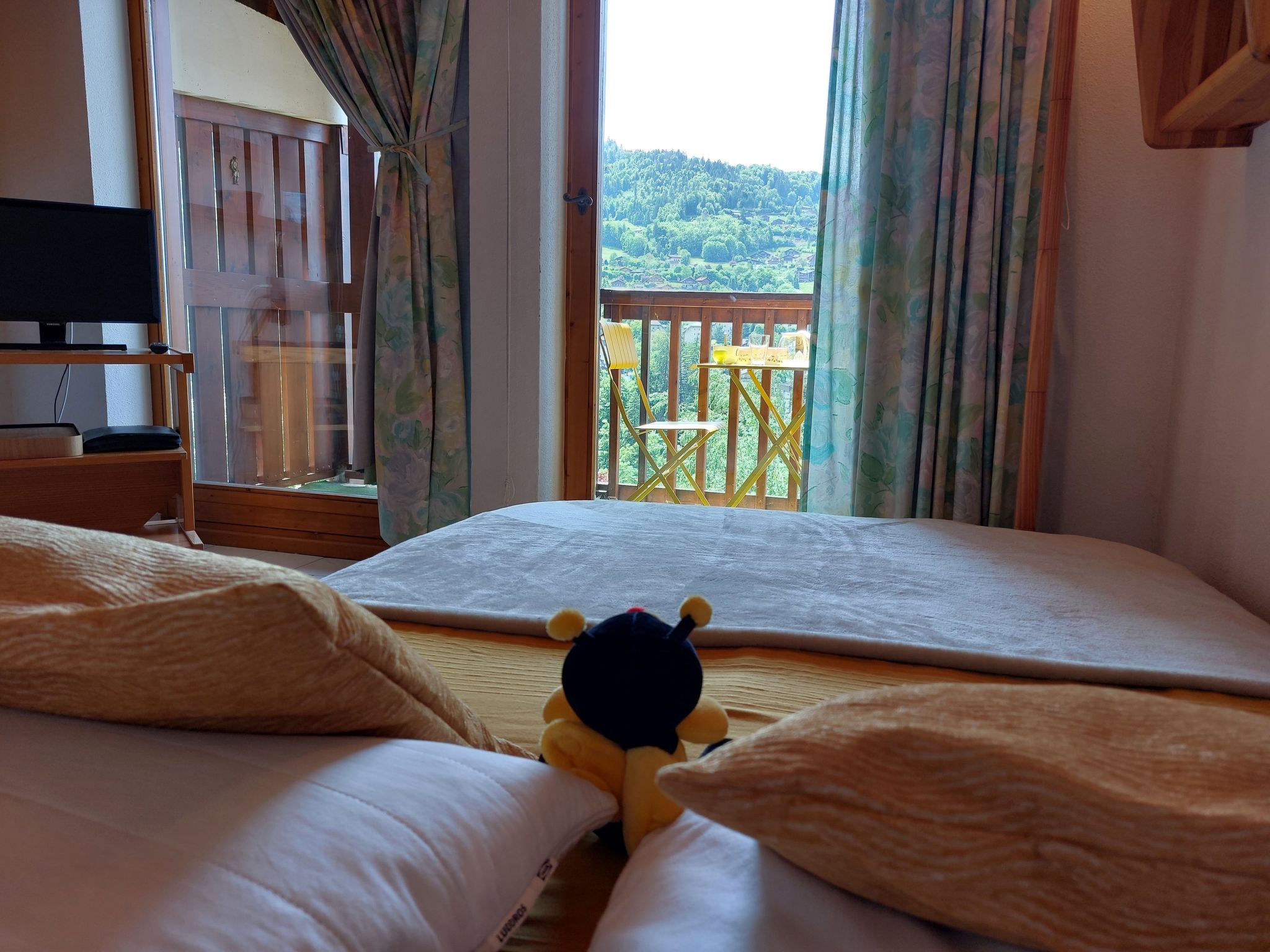 "Martagon", 2-Zimmer-Wohnung 25 m2 im 3. Stock. Wohn-/Esszimmer mit 1 Doppeldiwanbett (140 cm), TV und Flachbildschirm. Ausgang zum Balkon. 1 kleines Zimmer mit 1 x 2 Etagenbetten (90 cm). Kochnische (2 Kochplatten, Backofen, Toaster, Wasserkocher, elektrische Kaffeemaschine, Racletteofen). Bad, sep. WC. Balkon 5 m2, Westlage. Balkonmöbel. Schöne Sicht auf die Berge. Zur Verfügung: Internet (Wireless LAN, extra). Bitte beachten: Nichtraucher-Unterkunft. TV nur FR. Rauchmelder, kein Fahrstuhl. Inserat einer Privatperson nach Artikel 155, IV, CGI.