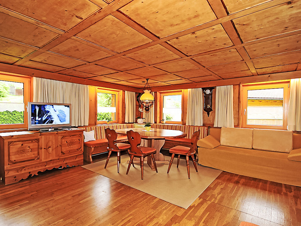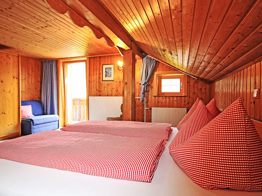 5-Zimmer-Haus 125 m2 auf 2 Stockwerken. Grosses Wohnzimmer mit Essecke, Sat-TV, Radio und DVD. 1 Zimmer mit 1 x 2 Etagenbetten, 1 Doppelbett. Küche (Backofen, Geschirrspüler, 4 Glaskeramikherd Platten, Mikrowelle, Tiefkühler) mit Essecke. Dusche/WC. Obergeschoss: 1 Doppelzimmer mit Waschbecken. Ausgang zum Balkon. 1 abgeschrägtes Doppelzimmer. Ausgang zum Balkon. 1 Doppelzimmer mit Waschbecken. Dusche/WC, Doppelwaschbecken. Balkon 8 m2, Terrasse 20 m2. Schöne Sicht auf die Berge. Zur Verfügung: Waschmaschine, Wäschetrockner, Kinderhochstuhl, Babybett. Internet (Wireless LAN, gratis). Parkplatz (3 Autos). Bitte beachten: Nichtraucher-Unterkunft.
