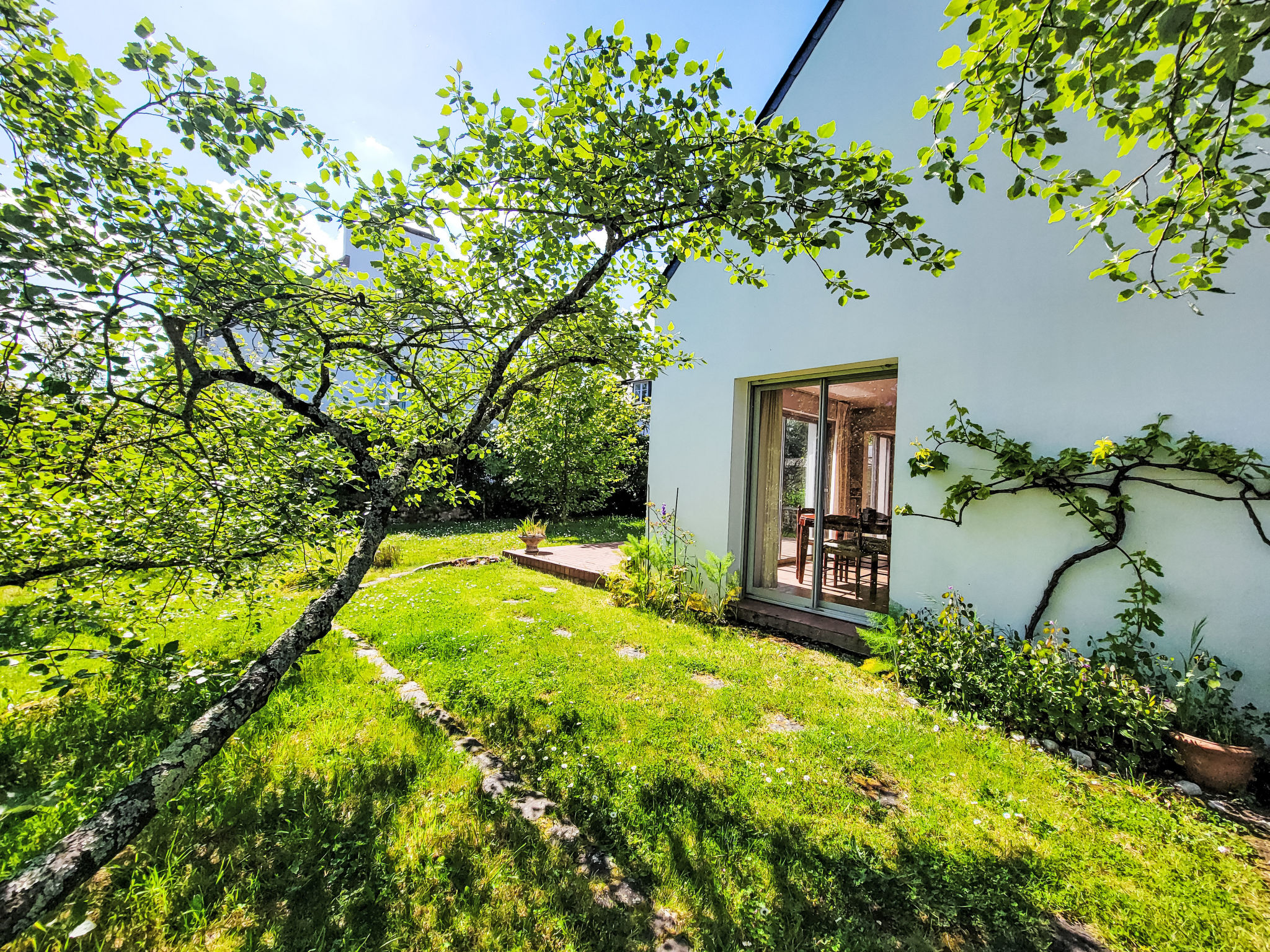 3-Zimmer-Haus 90 m2 auf 2 Stockwerken. Schön eingerichtet: Wohn-/Esszimmer mit TV (Flachbildschirm). Ausgang zum Garten, zur Terrasse. Kleine Küche (4 Kochplatten, Backofen, Geschirrspüler, Toaster, Wasserkocher, Mikrowelle, Tiefkühler, elektrische Kaffeemaschine). Ausgang zum Garten, zur Terrasse. Sep. WC. Obergeschoss: 1 Zimmer mit 2 Betten (90 cm, Länge 190 cm). 1 Zimmer mit 1 franz. Bett (1 x 140 cm, Länge 190 cm). Bad. E-Heizung. Terrasse 15 m2. Terrassenmöbel, Gartengrill, Liegestühle (2). Sicht auf den Garten. Zur Verfügung: Waschmaschine, Bügeleisen, Haartrockner. Internet (Wireless LAN, gratis). Bitte beachten: Rauchmelder. Inserat einer Privatperson nach Artikel 155, IV, CGI.