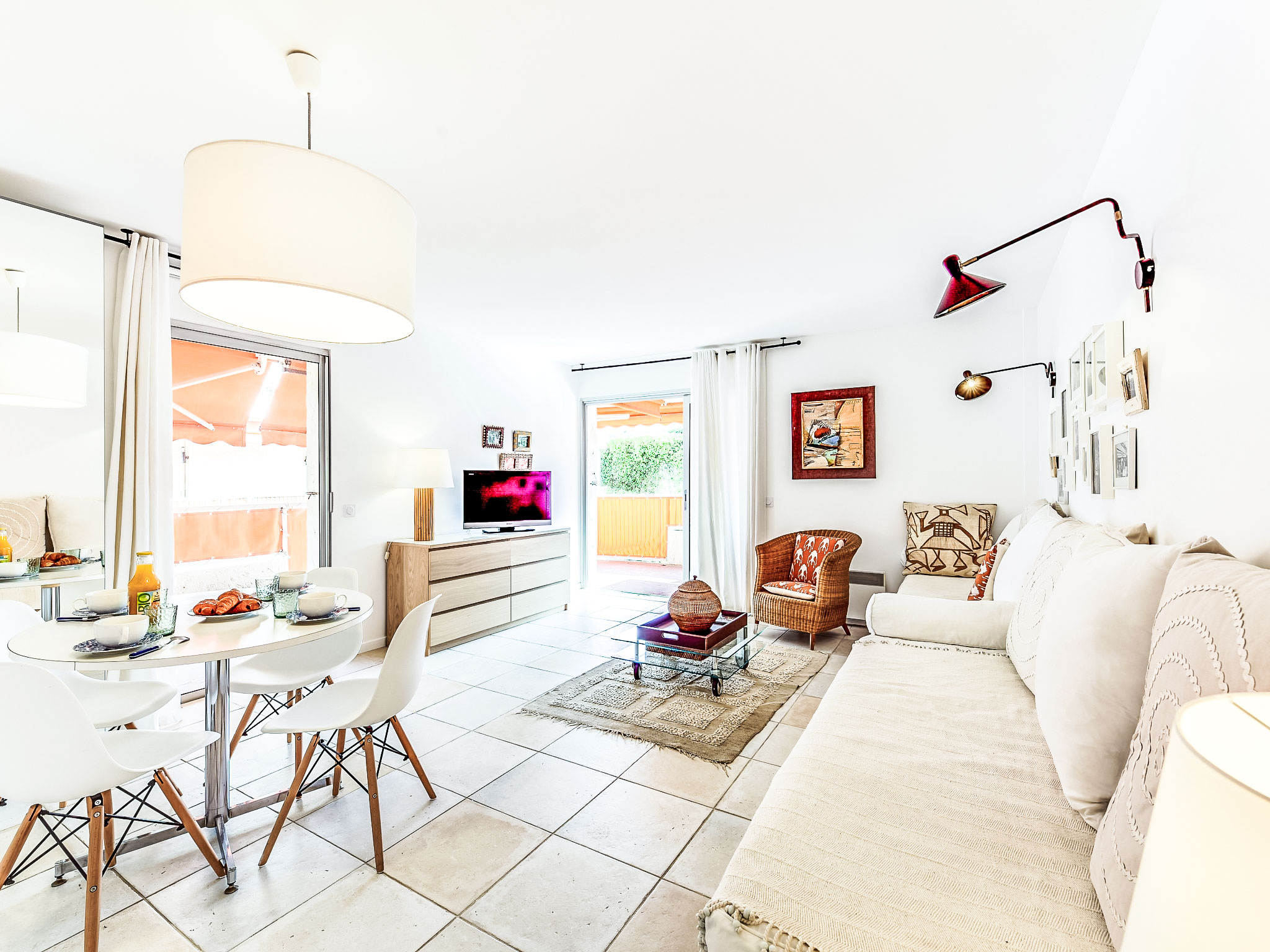 2-Zimmer-Wohnung 50 m2 im 1. Stock. Renoviert im Jahre 2017, schön eingerichtet: Wohn-/Esszimmer mit 2 Betten (90 cm, Länge 190 cm), TV (Flachbildschirm), Klimaanlage. Ausgang zur Terrasse. 1 Zimmer mit 1 Doppelbett (2 x 80 cm, Länge 200 cm). Ausgang zur Terrasse. Küche (Mini-Backofen, Geschirrspüler, 4 Induktionskochplatten, Toaster, Wasserkocher, Tiefkühler, elektrische Kaffeemaschine). Dusche, sep. WC. E-Heizung. Terrasse 37 m2, überdacht, Westlage. Terrassenmöbel. Zur Verfügung: Waschmaschine, Wäschetrockner, Bügeleisen. Internet (Wireless LAN, gratis). Parkplatz Nr. 746 (überdacht), Höhe 180 cm, Breite 200 cm. Bitte beachten: Rauchmelder. Inserat einer Privatperson nach Artikel 155, IV, CGI. 83119002475DP