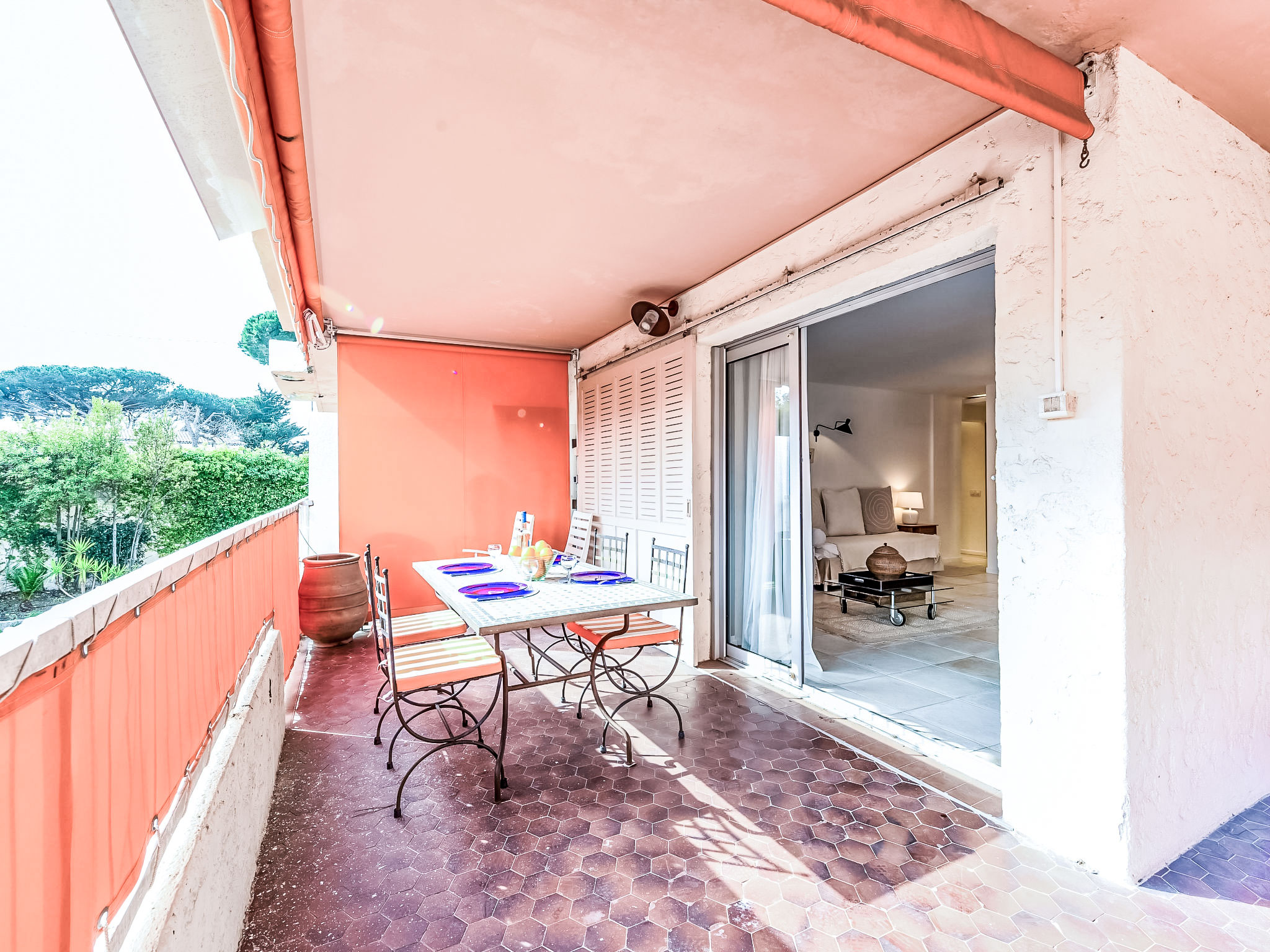 Residenz "Les Patios", auf 3 Stockwerken. 600 m vom Zentrum, 200 m vom Meer. Zur Mitbenutzung: Garten mit Rasen und Bäumen, Schwimmbad (16 x 10 m, 80 - 220 cm tief, saisonale Verfügbarkeit: 15.Mai.-30.Sep.). In der Anlage: Fahrstuhl. Parkplatz/Garage nur für kleine - mittlere Fahrzeuge geeignet. Einkaufsgeschäft, Lebensmittelgeschäft 300 m, Supermarkt 4 km, Restaurant 300 m, Sandstrand "La Bouillabaisse" 200 m. Nahe gelegene Sehenswürdigkeiten: Parc d'attractions Azur Park 4 km, Port Grimaud 6 km, Plages de Pampelonne 8 km, Cannes 84 km, Nice 110 km, Monaco 134 km. Bekannte Seen in der Umgebung sind gut erreichbar: Lac de Sainte Croix 92 km. Wandergebiete: Massif de l'Esterel 50 km. Bitte beachten: In diesem Haus sind weitere Ferienwohnungen mietbar.