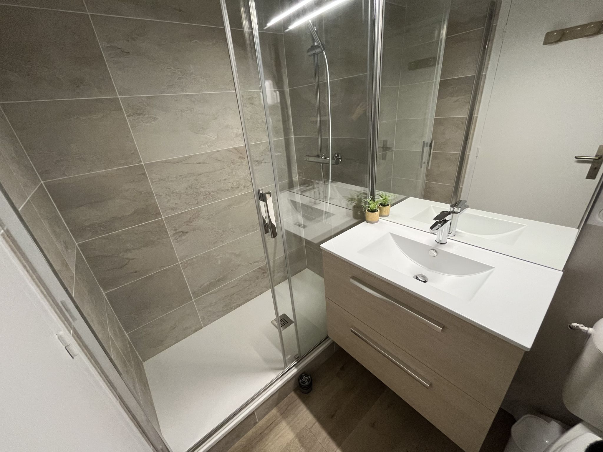 1-Zimmer-Studio 31 m2 im 3. Stock. Schön eingerichtet: Kabine mit 1 x 2 Etagenbetten (90 cm, Länge 190 cm). Wohn-/Esszimmer mit 1 Doppeldiwanbett (1 x 140 cm, Länge 190 cm), TV (Flachbildschirm). Ausgang zur Terrasse, Richtung Süden. Kochnische (Geschirrspüler, 2 Glaskeramikherd Platten, elektrische Kaffeemaschine, Kombinationsmikrowelle). Bad/WC. E-Heizung. Kleine Terrasse 6 m2. Terrassenmöbel. Sicht auf die Landschaft. Zur Verfügung: Internet (Wireless LAN, gratis). Bitte beachten: Rauchmelder. Inserat einer Privatperson nach Artikel 155, IV, CGI.