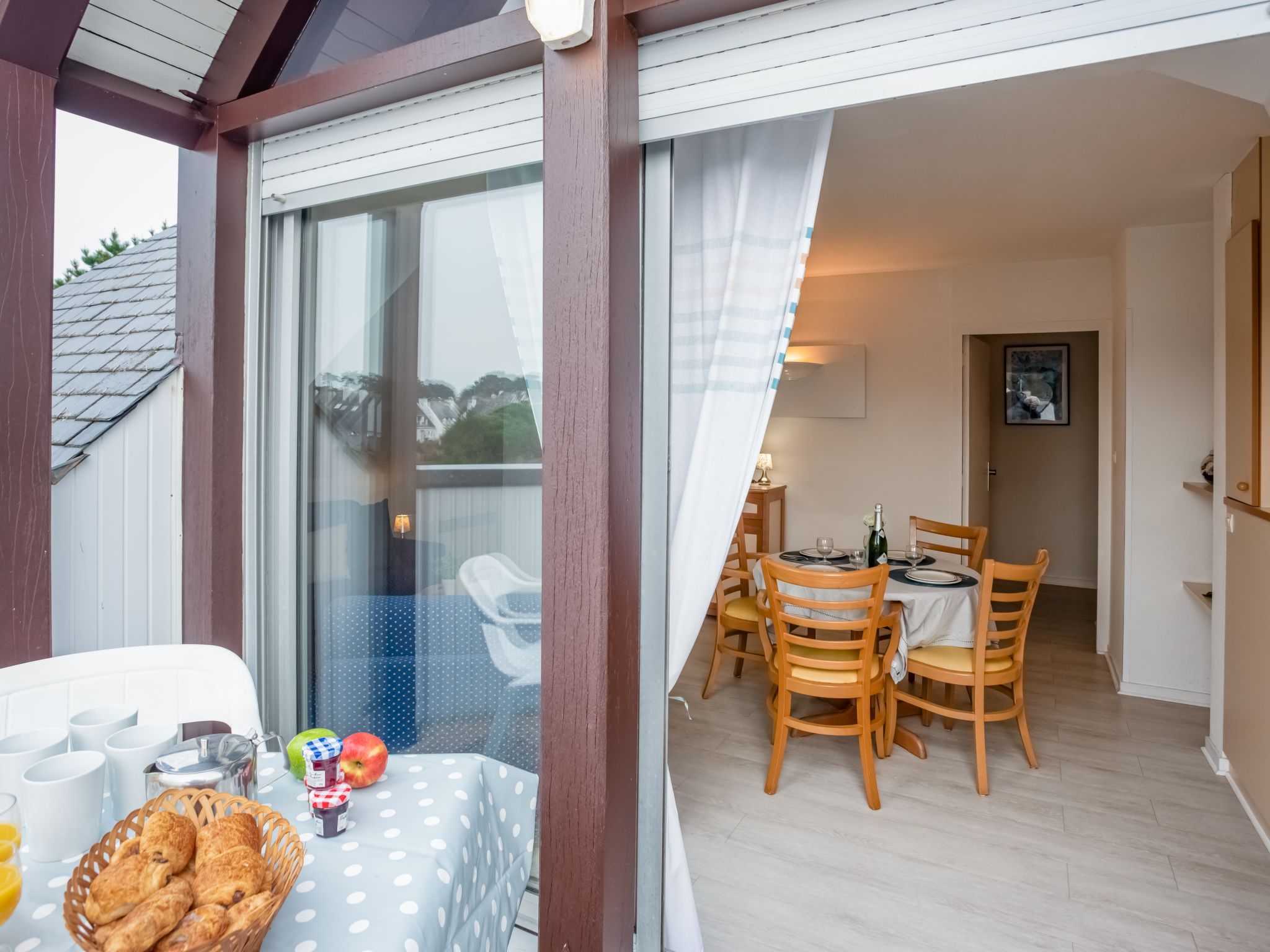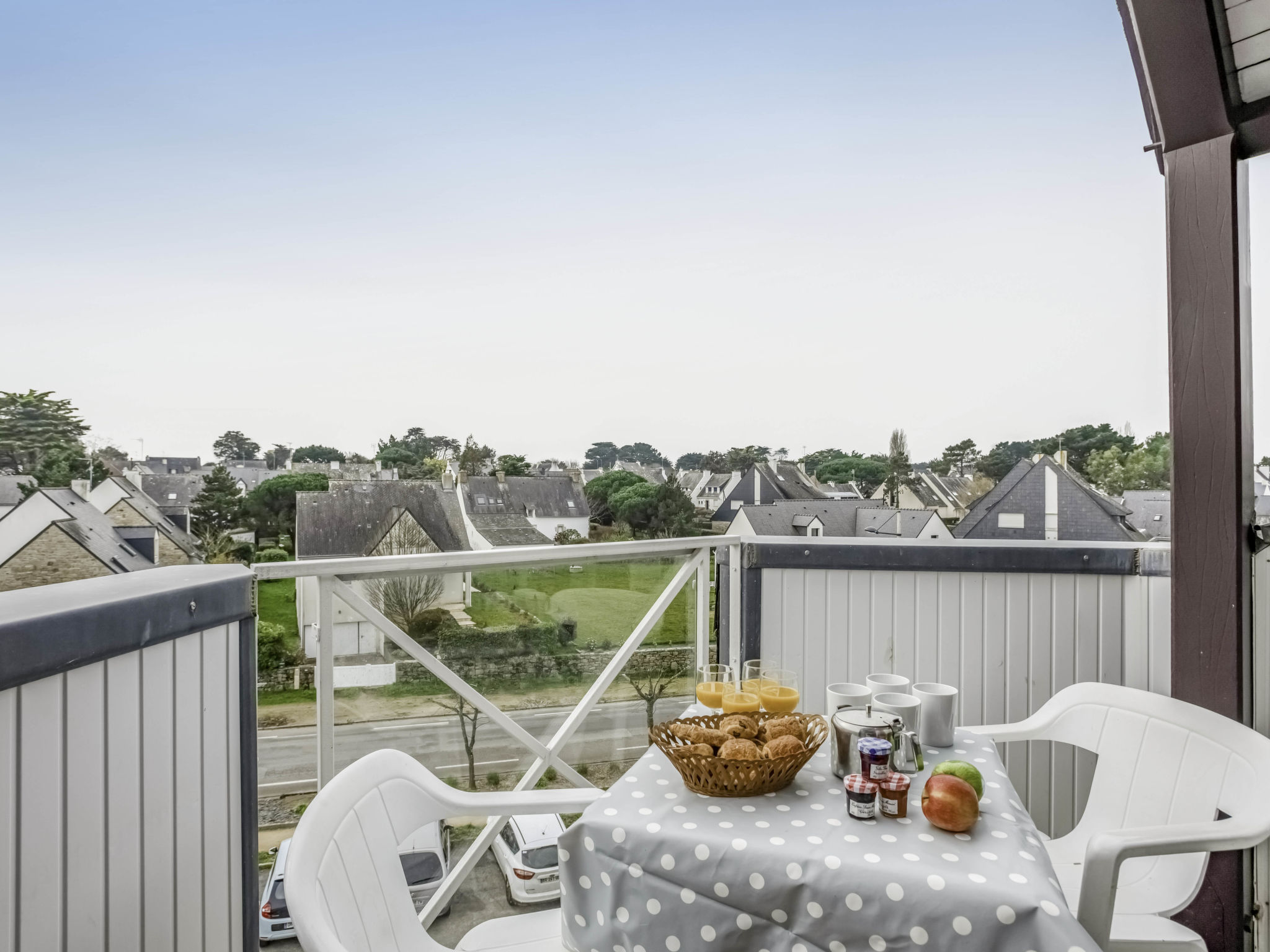 Residenz "Bleue Océane", auf 4 Stockwerken. Im Ort, 300 m vom Zentrum von Carnac Plage, in einem Wohnquartier, 200 m vom Meer, 200 m vom Strand. Zur Mitbenutzung: Schwimmbad eckig beheizt (3 x 6 m, 90 - 175 cm tief, saisonale Verfügbarkeit: 15.Jun.-15.Sep.). In der Anlage: Fahrstuhl, Waschmaschine, Wäschetrockner (zur Mitbenutzung, extra). Öffentliche Parkplätze auf der Strasse. Einkaufsgeschäft, Restaurant 300 m, Sandstrand "Plage de Carnac" 150 m, Thermalbad "Thalassothérapie" 150 m. Golfplatz (18 Loch) 15 km, Surfschule 6 km, Segelschule 150 m. Nahe gelegene Sehenswürdigkeiten: Les alignements de Carnac 6 km, Presqu'ile de Quiberon 25 km, Belle ile en Mer, Le Golfe du Morbihan, Vannes 35 km, Lorient 55 km. Objekt geeignet für 2 Erwachsene + 2 Kinder.