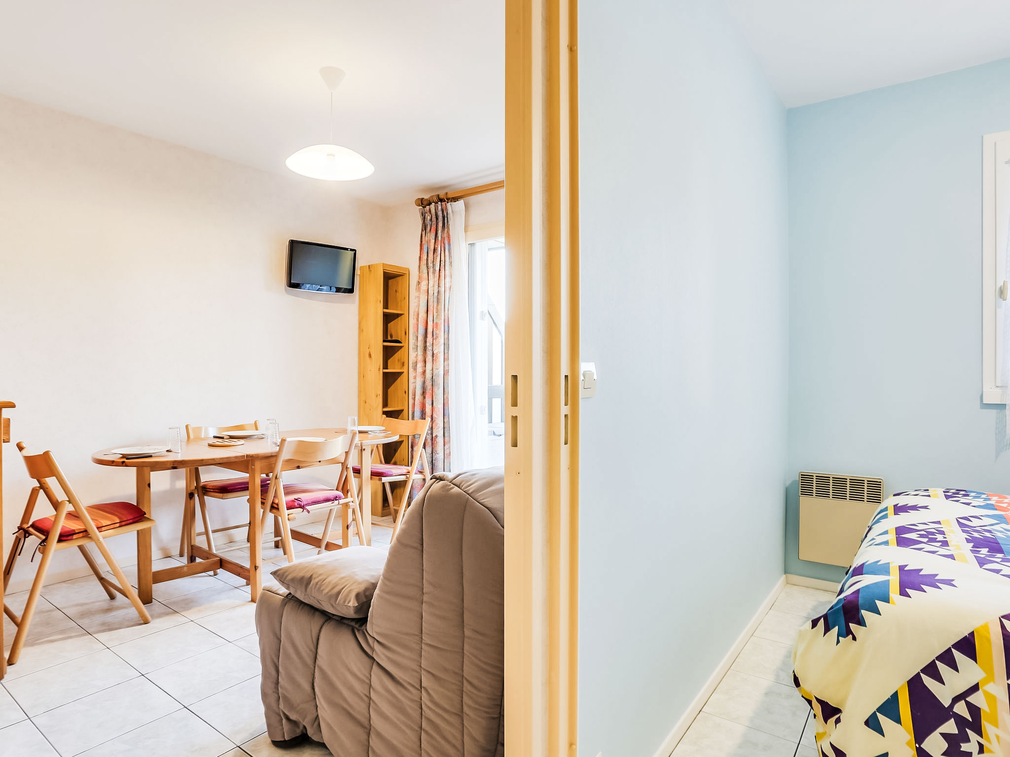 2-Zimmer-Wohnung 24 m2 im 1. Stock, Südostlage. Wohn-/Esszimmer mit 1 Doppeldiwanbett (140 cm, Länge 190 cm), TV (Flachbildschirm). Ausgang zum Balkon. 1 Zimmer mit 1 franz. Bett (140 cm, Länge 190 cm). Kochnische (2 Kochplatten, Mini-Backofen, Wasserkocher, Mikrowelle) mit Bar. Bad/WC. E-Heizung, Boiler. Balkon 8 m2. Balkonmöbel. Zur Verfügung: Waschmaschine, Bügeleisen. Internet (Wireless LAN, extra). Bitte beachten: Nichtraucher-Unterkunft. Rauchmelder. Inserat einer Privatperson nach Artikel 155, IV, CGI.
