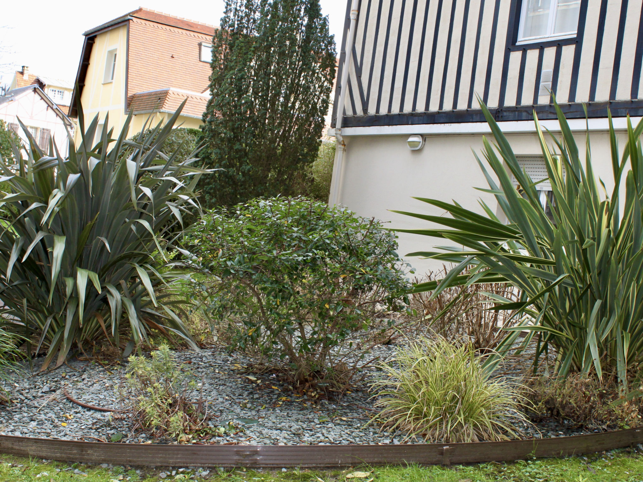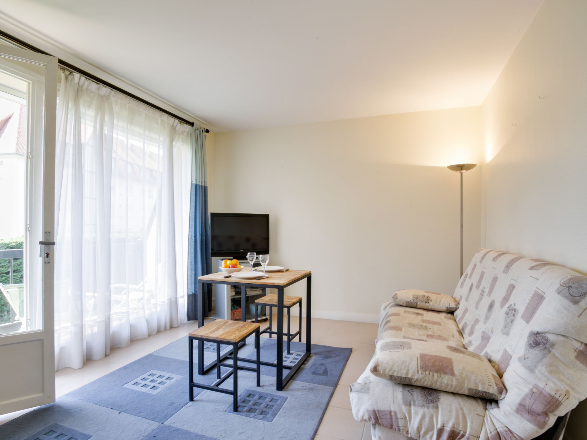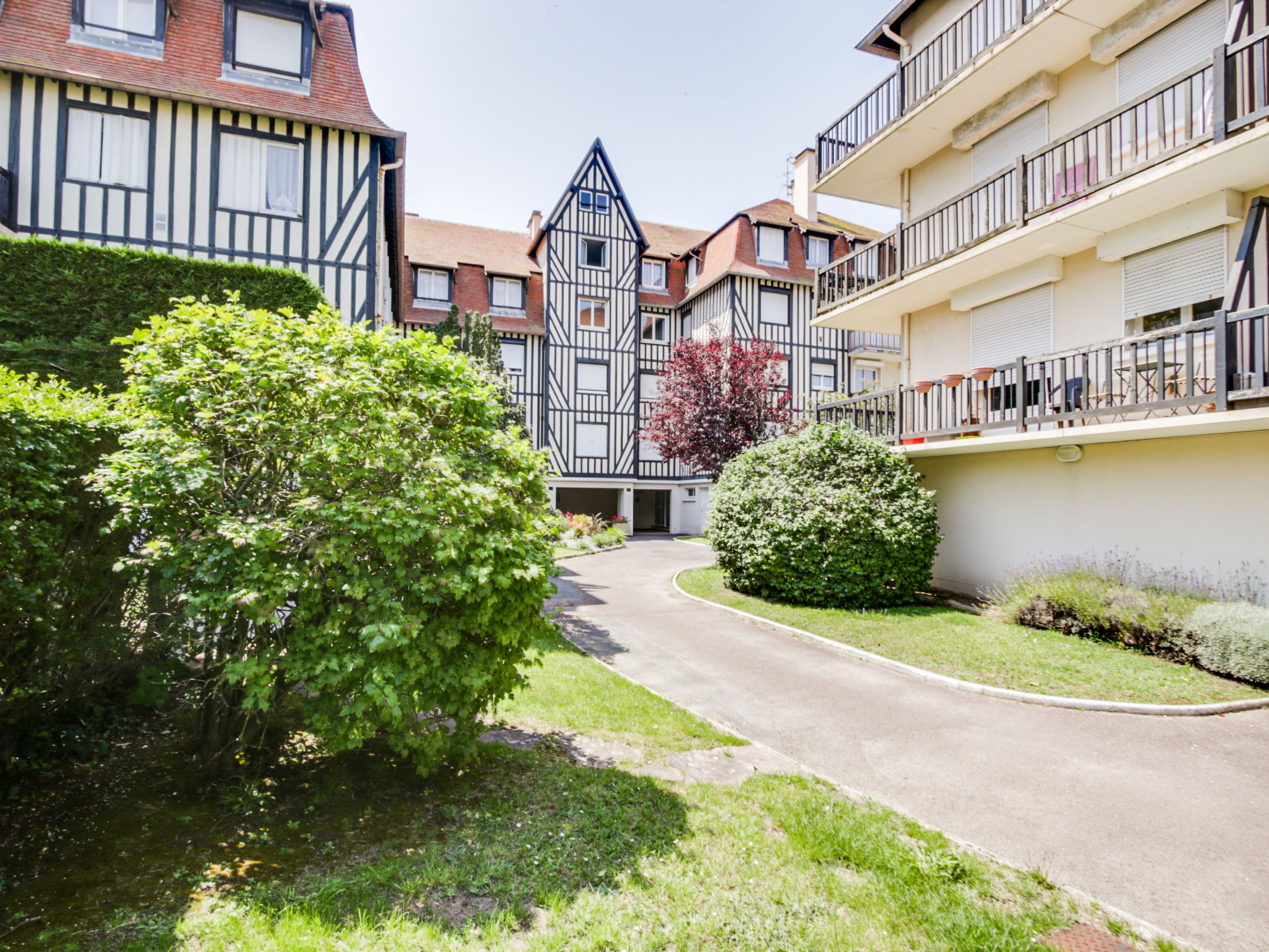 Deauville: Residenz "Les Prairies", auf 3 Stockwerken. Im Ortsteil de l'hippodrome, ruhige Lage im Villenviertel, 700 m vom Meer, 700 m vom Strand. In der Anlage: Fahrstuhl. Supermarkt 650 m, Bäckerei 250 m, Bahnstation "Deauville-Trouville" 1.6 km, Thermalbad "thalasso" 1.1 km. Golfplatz 3 km. Nahe gelegene Sehenswürdigkeiten: Casino de Deauville 900 m, Honfleur, village Normand 15 km, Mémorial de Caen 47 km, Plages du débarquement d'Arromanches 83 km. Die Schlüsselübergabe findet bei der Agentur Interhome in Deauville statt.