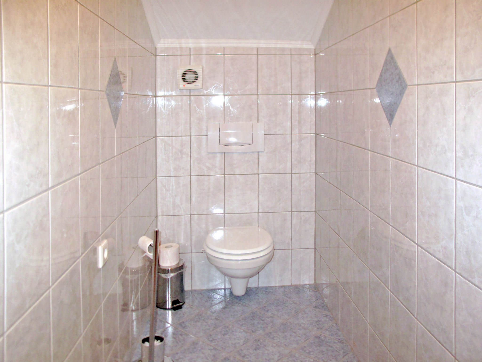 4-Zimmer-Wohnung, 1. Etage (leichte Dachschräge), ca. 70 m². Flur. Wohnküche (4 Ceranfelder, Backofen, Geschirrspüler, Kühlschrank, Kaffeemaschine, Wasserkocher, Toaster) mit Essplatz (Eckbank). 2 Schlafzimmer, jeweils mit Doppelbett und Einzelbett, ein Zimmer mit Balkonausgang. Doppelzimmer. Bad/Dusche. Sep.WC. Bei Belegung mit weniger Personen als der maximalen Personenzahl stehen nicht alle Wohneinheiten zur Verfügung.