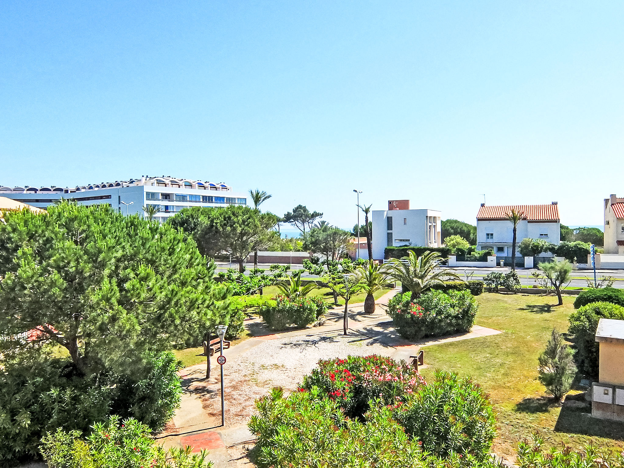 Residenz "Les Mas de La Mer", auf 2 Stockwerken. 400 m vom Meer, 400 m vom Strand, an einer Hauptstrasse. Parkplatz. Einkaufsgeschäft 700 m, Supermarkt 200 m, Restaurant, Bäckerei 700 m, Bahnstation "Elne" 8.6 km, Sandstrand "Plage Nord" 400 m. Sporthafen 2 km, Golfplatz (27 Loch) 2 km, Segelschule 3.5 km, Minigolf 500 m, Reitstall 3 km, Sportzentrum 4 km. Nahe gelegene Sehenswürdigkeiten: Aqualand 6 km. Bitte beachten: In diesem Haus sind weitere Ferienwohnungen mietbar.