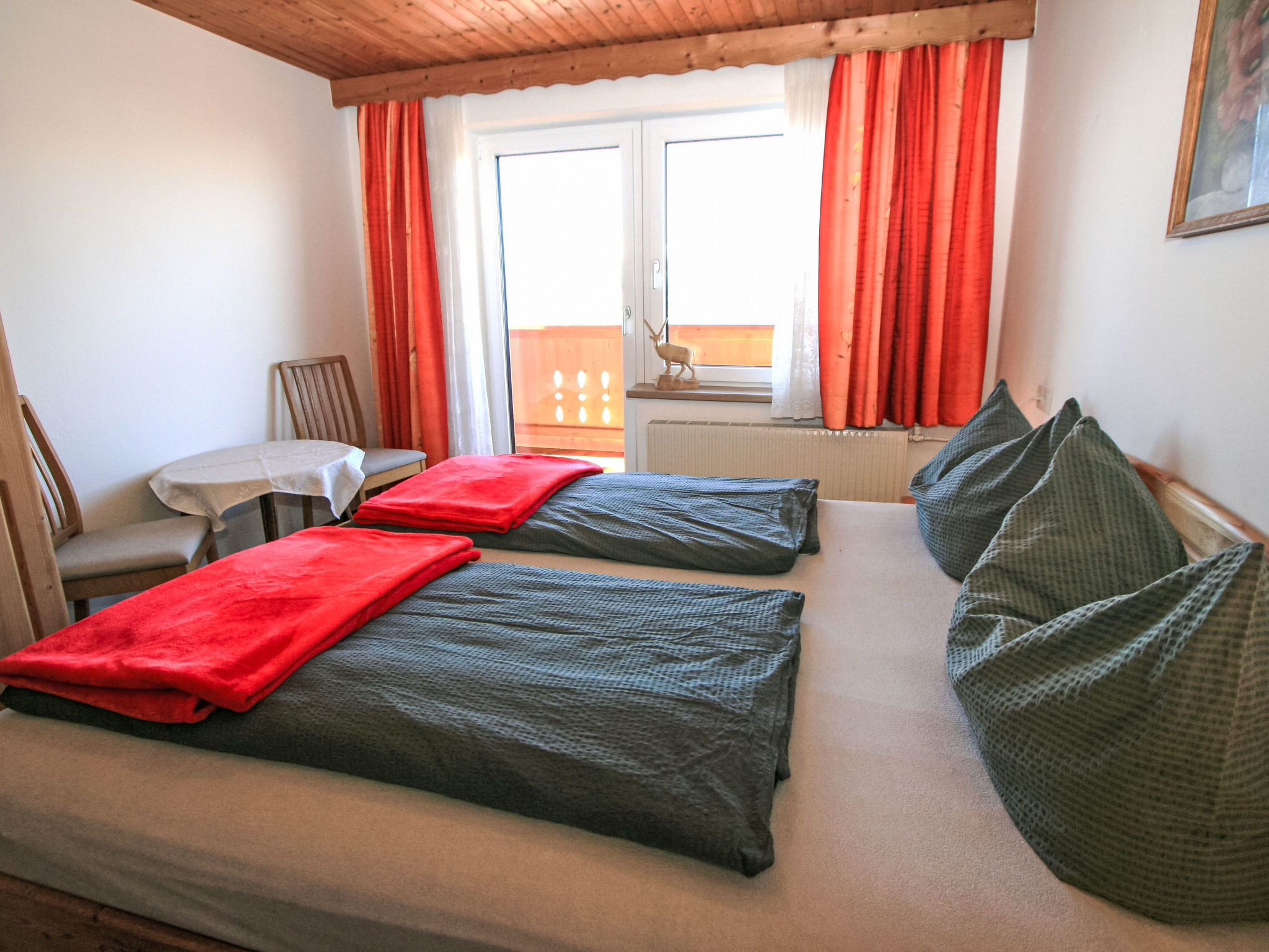 3-Zimmer-Wohnung 60 m2 im 1. Stock. Einfach eingerichtet: Wohn-/Esszimmer mit Essecke, Sat-TV und Flachbildschirm. 1 Doppelzimmer mit Waschbecken. Ausgang zum Balkon. 1 Doppelzimmer mit 1 Diwanbett, 1 Doppelbett und Waschbecken. Offene Küche (Backofen, Geschirrspüler, 4 Glaskeramikherd Platten, Mikrowelle, elektrische Kaffeemaschine). Dusche/WC. Ölheizung. Teppichboden. Balkon. Balkonmöbel. Herrliche Panoramasicht auf die Berge und das Tal. Zur Verfügung: Kinderhochstuhl, Babybett bis 2 Jahre. Internet (Wireless LAN, gratis). 1 Haustier/Hund erlaubt. Die Wohnungen sind offen zum Treppenhaus. Im Erdgeschoss wohnt die Besitzerin. Skier können in der Garage abgestellt werden. Die Skischuhe im Treppenhaus.