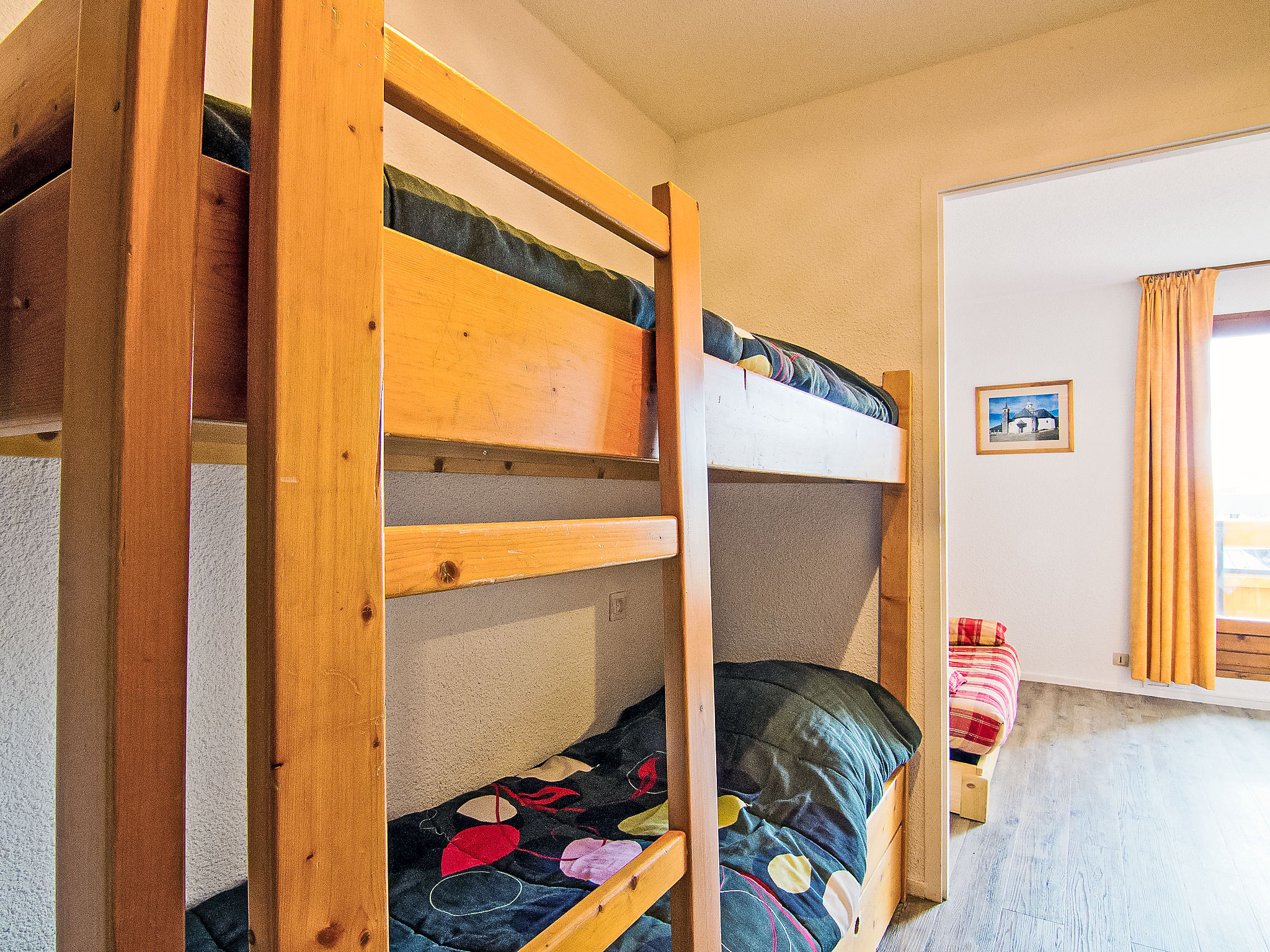 "Carlines 1 46", 1-Zimmer-Wohnung 24 m2 im 5. Stock. Wohn-/Esszimmer mit 1 Doppeldiwanbett (140 cm, Länge 190 cm), TV (Flachbildschirm). Ausgang zum Balkon. Eingang mit 1 x 2 Etagenbetten (80 cm, Länge 190 cm). Kochnische (2 Kochplatten, Mini-Backofen, elektrische Kaffeemaschine). Bad/WC. E-Heizung. Balkon, Nordlage und Westlage. Zur Verfügung: Internet (Wireless LAN, extra). Bitte beachten: Rauchmelder. "Carlines" 1. Inserat einer Privatperson nach Artikel 155, IV, CGI.