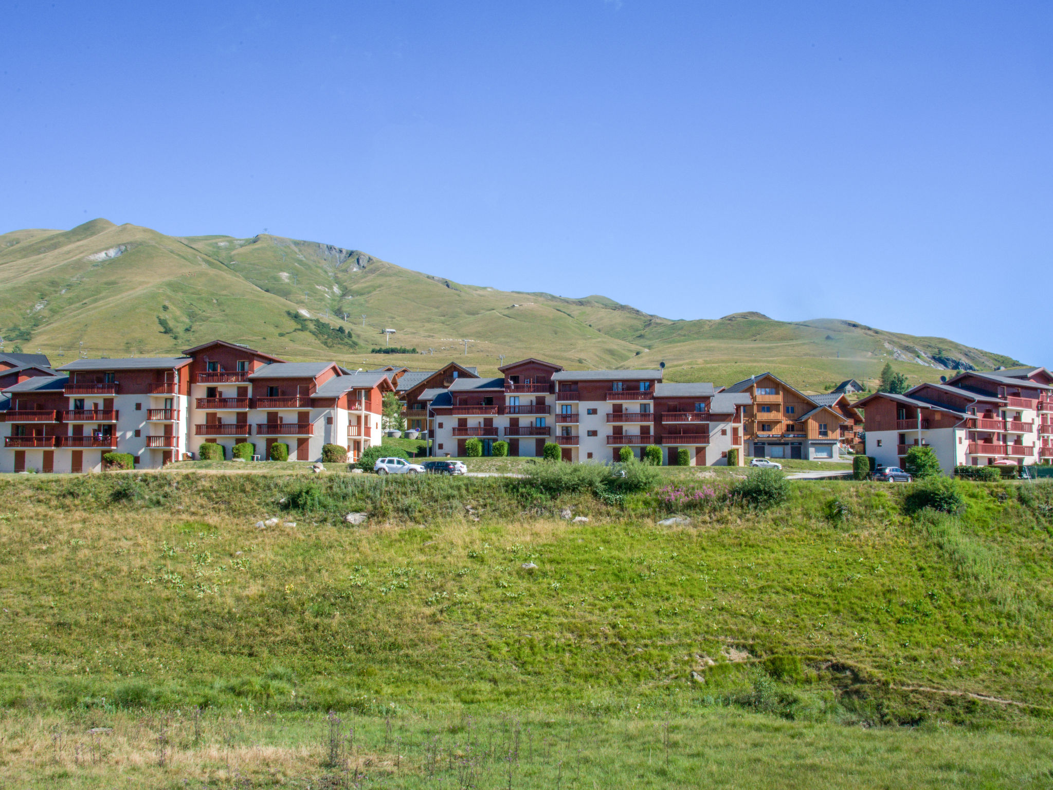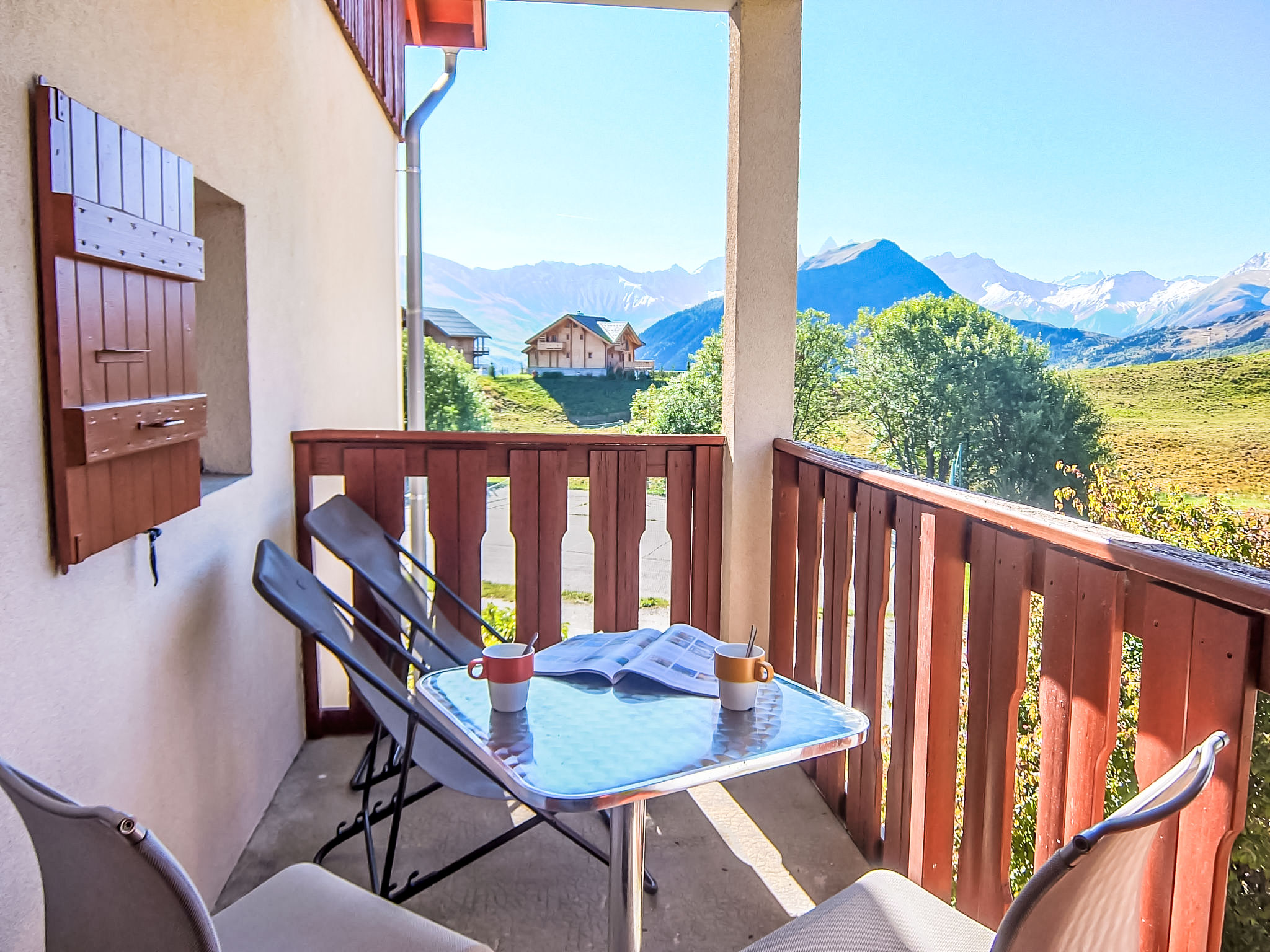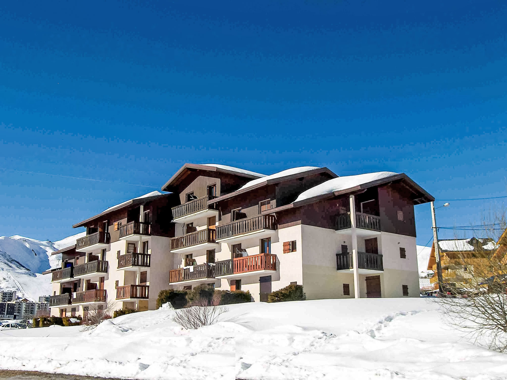 Residenz "Plein Soleil". Rive droite, am Ortsrand, 800 m vom Zentrum, ruhige, sonnige Lage. Zur Mitbenutzung: Tennis. Im Hause: Skiraum. Parkplatz auf dem Grundstück. Einkaufsgeschäft 800 m, Lebensmittelgeschäft 20 m, Supermarkt 500 m, Restaurant 20 m. Tennis 20 m, Skilift 200 m, Sessellift, Skibushaltestelle 20 m, Skischule 800 m. Bitte beachten: In diesem Haus sind weitere Ferienwohnungen mietbar. WARNUNG: Die Schlüssel für die Unterkunft in Toussuire werden im 4 km entfernten Interhome-Büro in Le Corbier übergeben. Bei Anreise mit dem Bus kontaktieren Sie uns bitte 48 Stunden im Voraus, um die Schlüsselübergabe zu organisieren. Ein Extra-Service gegen eine Gebühr ist für 30€ erhältlich.