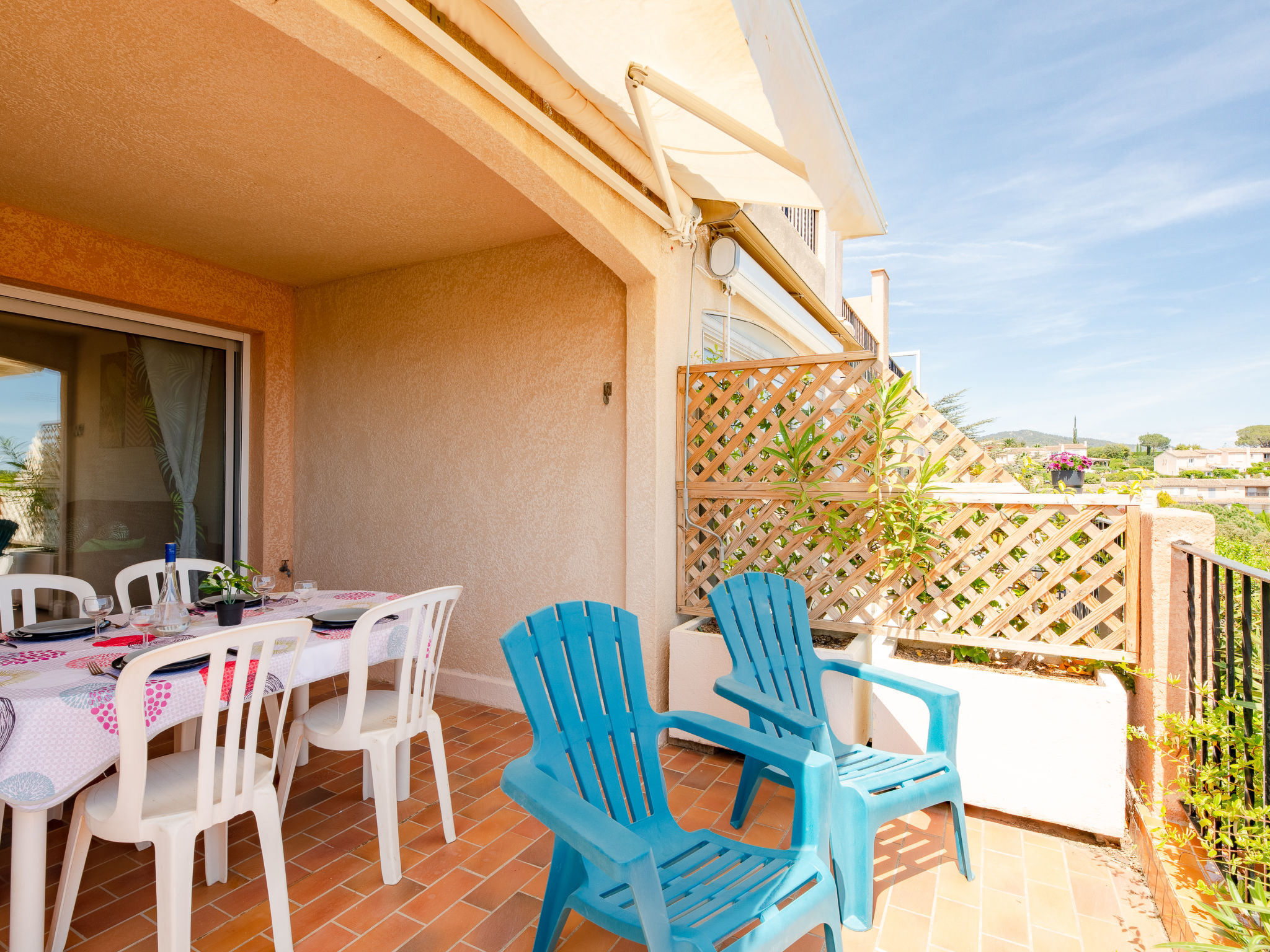 Residenz "Le Domaine de la Croisette". Am Ortsrand, 1.5 km vom Zentrum von Ste Maxime, sonnige, erhöhte Lage am Hang, 400 m vom Meer. Zur Mitbenutzung: Schwimmbad (7 x 14 m, 90 - 210 cm tief, saisonale Verfügbarkeit: 15.Jun.-30.Sep.). Parkplatz (beschränkte Anzahl). Einkaufsgeschäft 700 m, Supermarkt 1.5 km, Einkaufszentrum 1.5 km, Restaurant 400 m, Bäckerei 1.5 km, Bahnstation "Saint-Raphael TGV" 20 km, Sandstrand "La croisette" 400 m, Thermalbad "Thalasso Les Issambres" 7 km. Sporthafen 2 km, Golfplatz (18 Loch) 5 km, Tennis 900 m. Nahe gelegene Sehenswürdigkeiten: Aqualand waterpark 5 km, Azur Park attractions 10 km, Saint-Tropez/Ramatuelle 14 km, Port-Grimaud 8 km, Gorges du Verdon 95 km. Wandergebiete: Massif des Maures 5 km, Massif de l'Esterel 38 km. Bitte beachten: Die Residenz wird durch elektrische Tore geschlossen. Die Schlüsselübergabe findet bei der Agentur Interhome in Sainte-Maxime statt. Flugplatz 70 km vom Haus.