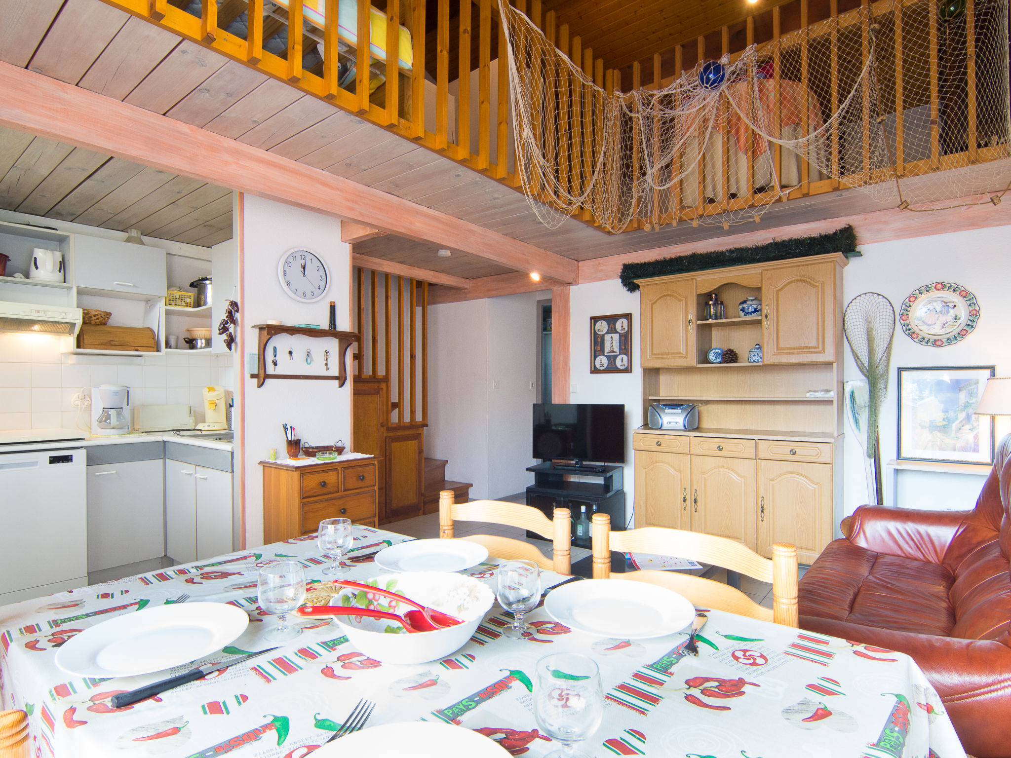 3-Zimmer-Wohnung 41 m2 im 1. Stock. Wohnzimmer mit Esstisch und TV. Ausgang zur Terrasse. 1 Zimmer mit 1 franz. Bett (140 cm, Länge 190 cm). Kochnische (Backofen, Geschirrspüler, 4 Glaskeramikherd Platten, Mikrowelle). Bad, Dusche/WC. Obergeschoss: Galerie mit 2 Betten (90 cm, Länge 190 cm), 1 franz. Bett (140 cm, Länge 190 cm). Terrassenmöbel. Zur Verfügung: Waschmaschine. Internet (Wireless LAN, extra). Parkplatz. Bitte beachten: Rauchmelder. Inserat einer Privatperson nach Artikel 155, IV, CGI. 40065000124E6