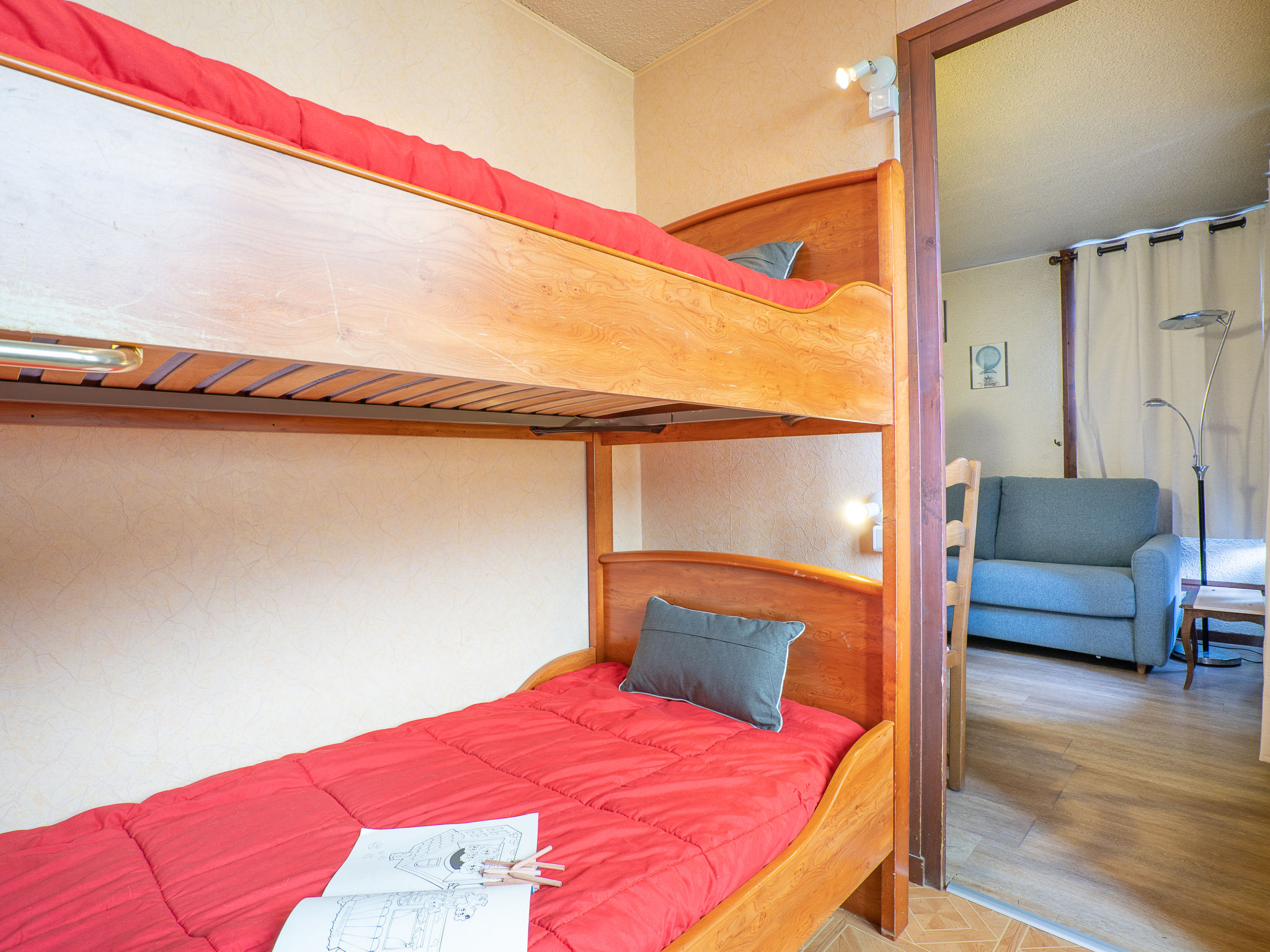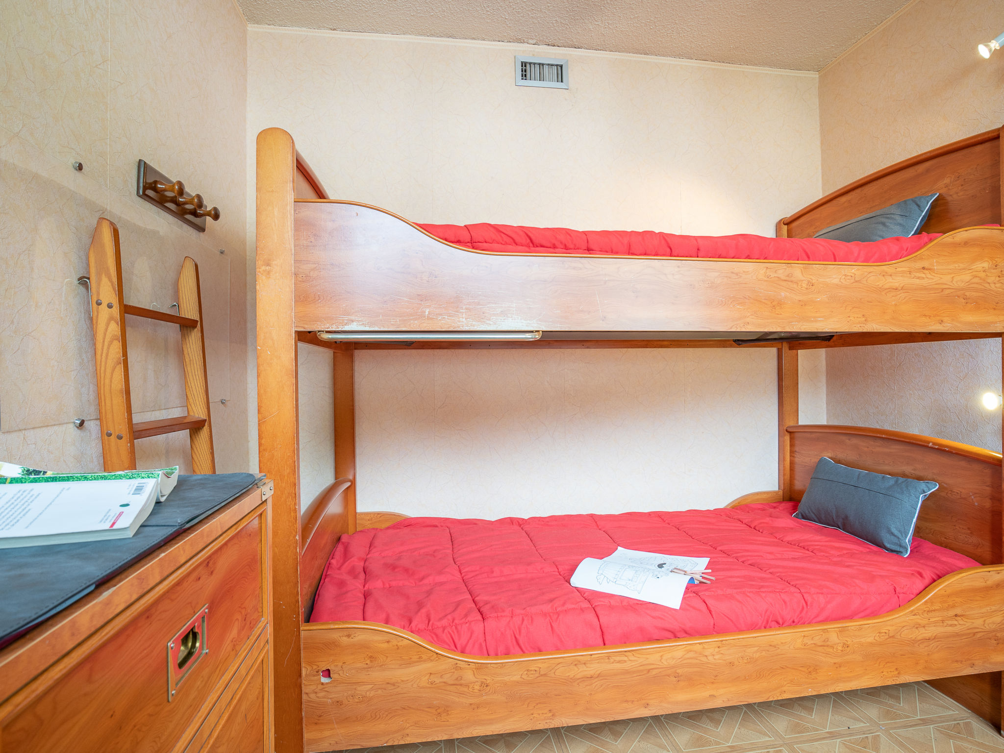 2-Zimmer-Wohnung 32 m2 im 4. Stock. Wohn-/Esszimmer mit 1 Doppeldiwanbett (160 cm, Länge 200 cm), TV. Ausgang zur Terrasse. 1 Zimmer mit 1 x 2 Etagenbetten (90 cm, Länge 190 cm). Kochnische (2 Kochplatten, Backofen, Geschirrspüler, Wasserkocher, Mikrowelle, Tiefkühler, elektrische Kaffeemaschine). Bad/WC. E-Heizung. Terrasse 15 m2, Nordwestlage. Schöne Sicht auf die Berge. Zur Verfügung: Internet (Wireless LAN, extra). Bitte beachten: kein Parkplatz. TV nur FR. Rauchmelder. Kleiner Parkplatz in der Tiefgarage. Inserat einer Privatperson nach Artikel 155, IV, CGI.