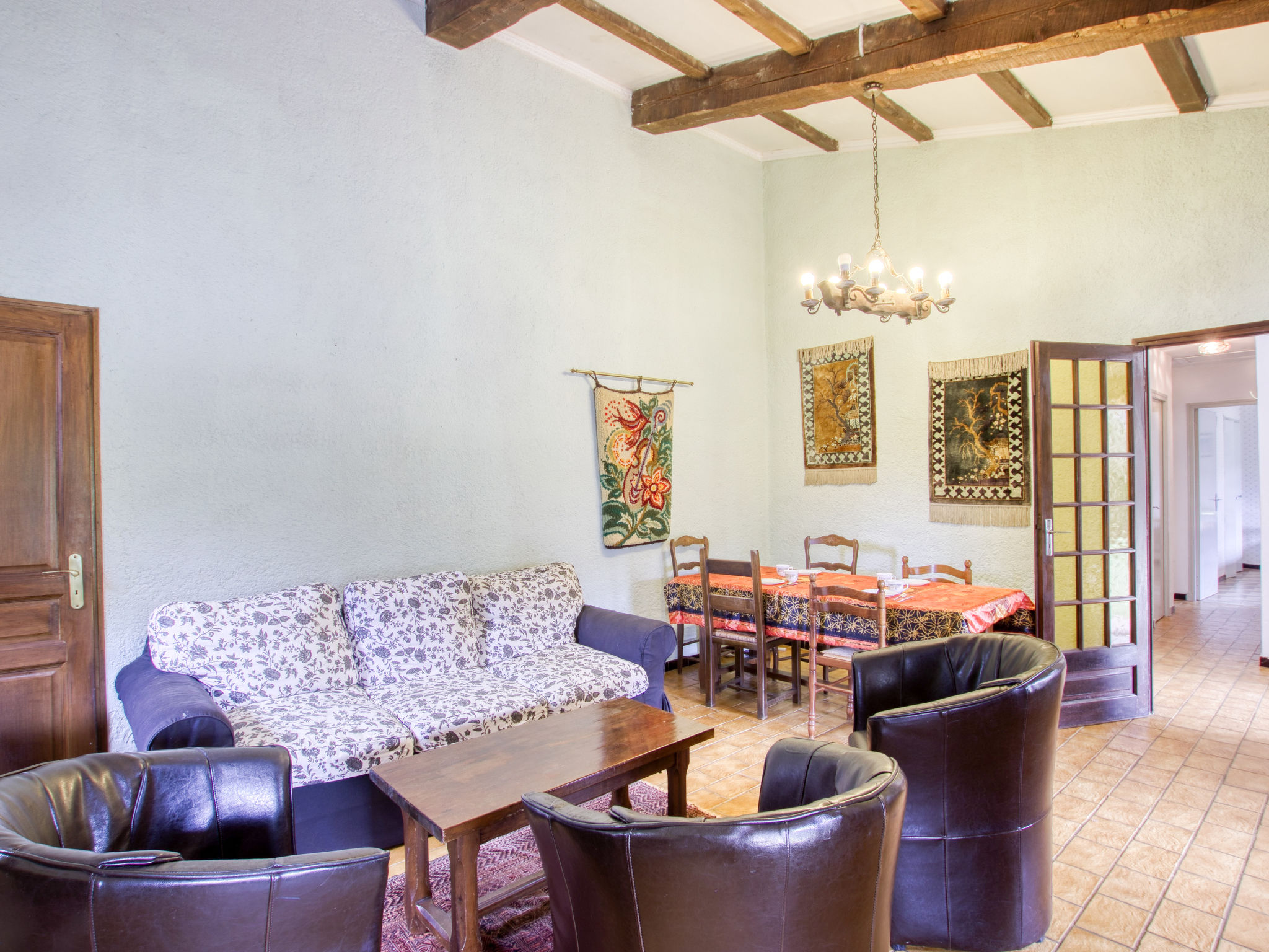 4-Zimmer-Haus, ca. 90 m². Wohnraum mit Sitzgruppe, Kamin (Einsatz), Essplatz, Terrassenausgang. Küche (4 Ceranfelder, Backofen, Mikrowelle, Geschirrspüler, Kühl-/Gefrierkombination, Kaffeemaschine, Toaster). 2 Schlafzimmer, jeweils mit franz. Bett. Doppelzimmer (Bettbreite 1,60 m) mit Dusche/WC und Ausgang ins Freie. Bad. Sep.WC. Inserat einer Privatperson nach Artikel 155, IV, CGI.
