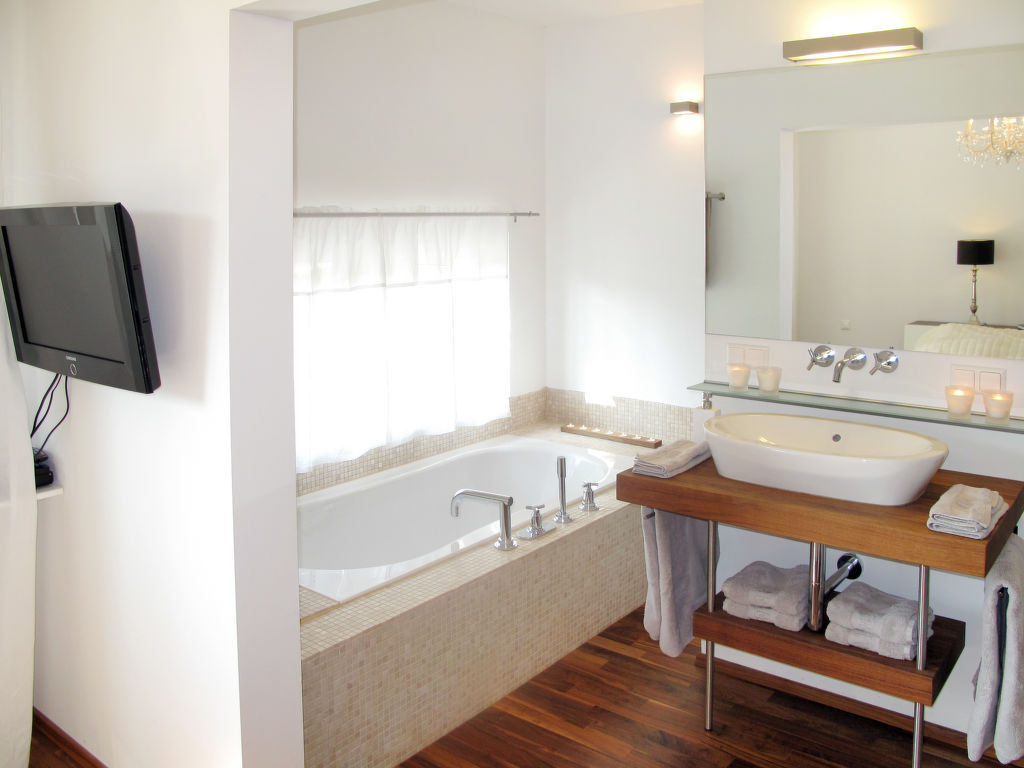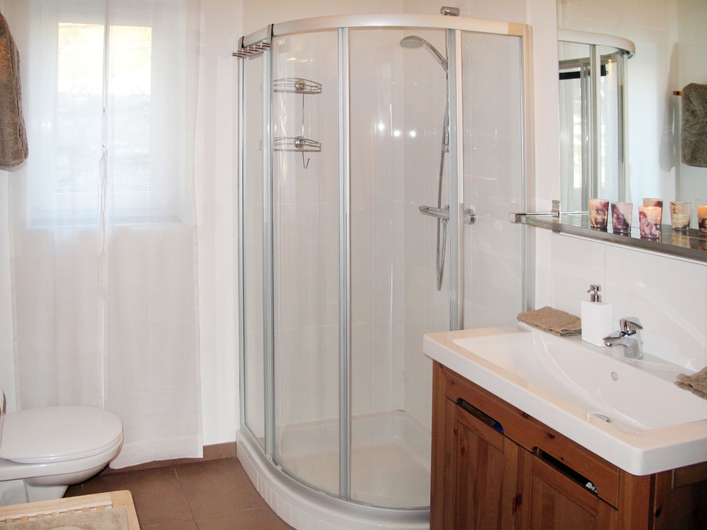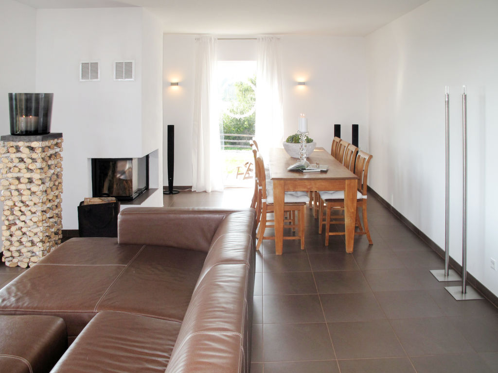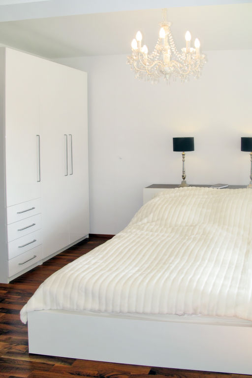 4-Zimmer-Wohnung, Erdgeschoss, ca. 110 m². Flur. Wohnraum mit Sitzcouch, Essplatz und Terrassenausgang, durch Theke mit Barhockern abgeteilte Küche (4 Ceranfelder, Backofen, Geschirrspüler, Kühlschrank, Kaffeemaschine, Wasserkocher, Toaster). Doppelzimmer mit Bad/Dusche/WC. 2 Doppelzimmer. Dusche/WC. Bei Belegung mit weniger Personen als der maximalen Personenzahl stehen nicht alle Wohneinheiten zur Verfügung.