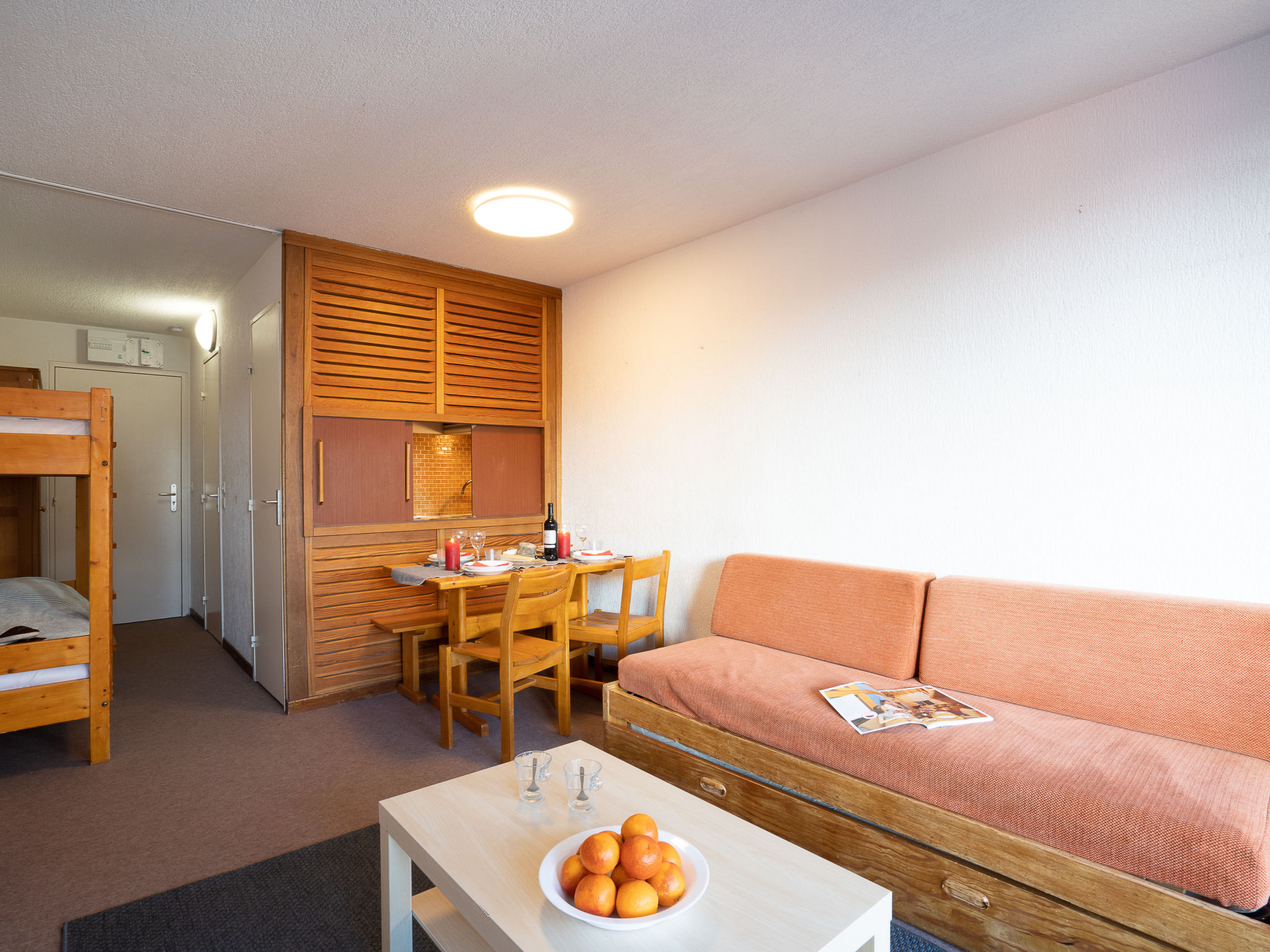 "Les Grandes Platières II", 1-Zimmer-Wohnung 27 m2 im 1. Stock. Sehr einfach und zweckmässig eingerichtet: Wohn-/Esszimmer mit 2 Betten (80 cm). Eingang mit 1 x 2 Etagenbetten (80 cm). Kochnische (2 Kochplatten, Mikrowelle). Bad/WC. Balkon, Südlage. Sicht auf die Berge und die Skipiste. Zur Verfügung: Internet (Wireless LAN, extra). Bitte beachten: Nichtraucher-Unterkunft. Rauchmelder. Inserat einer Privatperson nach Artikel 155, IV, CGI.