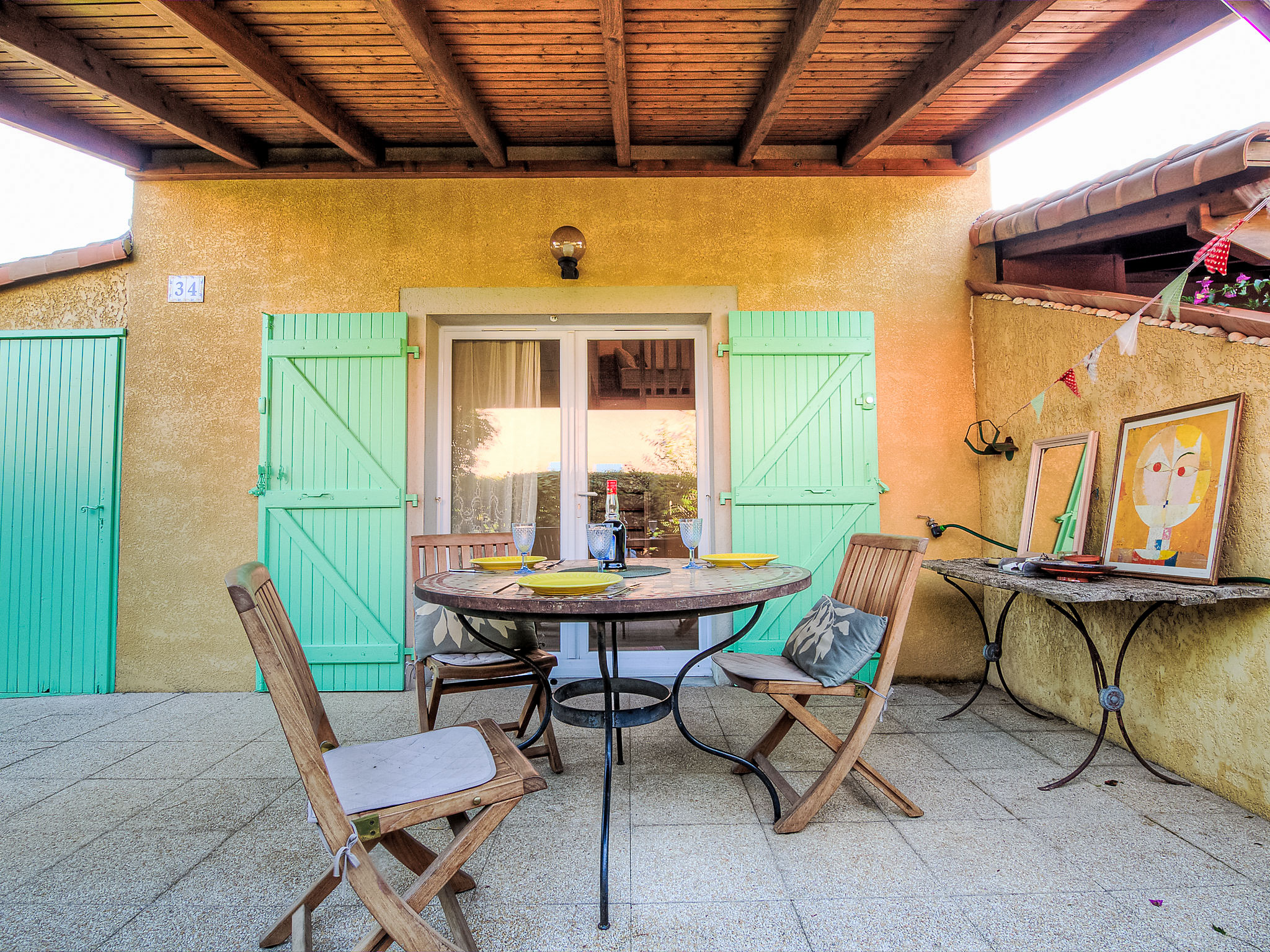 3-Zimmer-Reihenhaus 40 m2 auf 2 Stockwerken. Wohn-/Esszimmer mit TV. Ausgang zur Terrasse. 1 Zimmer mit 1 franz. Bett (140 cm, Länge 190 cm). Kochnische (2 Kochplatten, Geschirrspüler, Mikrowelle, Tiefkühler). Dusche/WC. Obergeschoss: (steile Treppe) 1 Zimmer mit 1 franz. Bett (140 cm, Länge 190 cm). Galerie mit 1 Bett (80 cm, Länge 190 cm). Terrasse 20 m2 teilweise überdacht, Westlage, Gartensitzplatz, Westlage. Terrassenmöbel, Gartengrill. Zur Verfügung: Waschmaschine. Internet (Wireless LAN, extra). Parkplatz. Bitte beachten: Rauchmelder. Inserat einer Privatperson nach Artikel 155, IV, CGI.