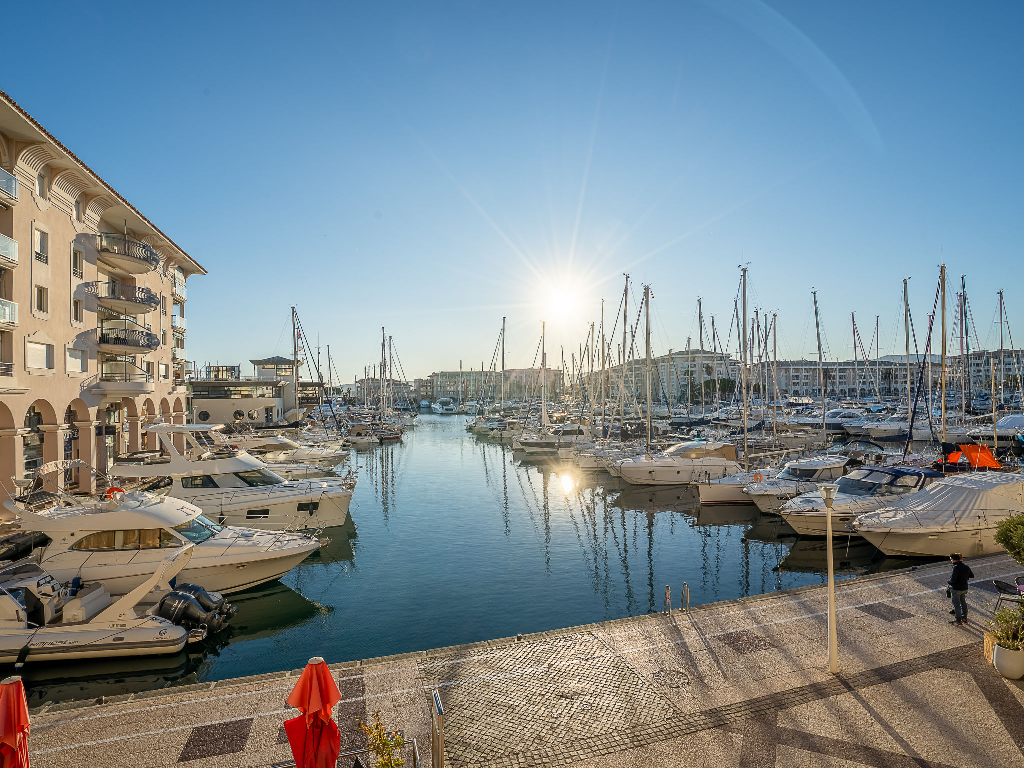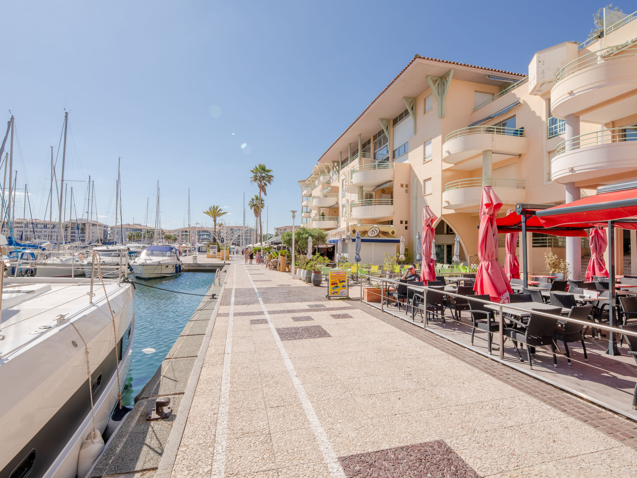 Port Fréjus: Residenz "Quartier Latin", auf 4 Stockwerken. 150 m vom Meer. In der Anlage: Fahrstuhl. Einkaufsgeschäft, Supermarkt, Restaurant 100 m, Bahnstation "Saint-Raphaël" 2 km, Sandstrand, Tauchzentrum 150 m. Sporthafen 20 m, Golfplatz (18 Loch) 5 km. Nahe gelegene Sehenswürdigkeiten: Cannes 40 km, Saint-tropez 40 km, Nice 70 km, Gorges du Verdon 90 km. Bekannte Seen in der Umgebung sind gut erreichbar: sainte-Croix 90 km. Wandergebiete: Estérel 7 km. Der Besitzer akzeptiert keine Jugendgruppen. Bitte beachten: Autobahn 10 km vom Haus. Flugplatz 65 km vom Haus. In diesem Haus sind weitere Ferienwohnungen mietbar.