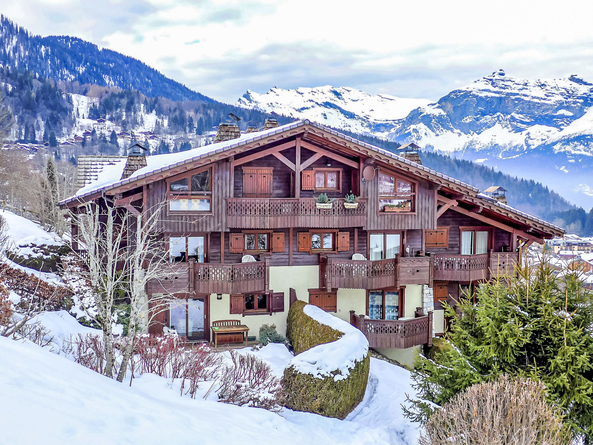 Residenz "Les Hauts des Chavants -". 2 km vom Zentrum, 10 m vom Skigebiet. Zur Mitbenutzung: Hallenbad beheizt (6 x 12 m). In der Anlage: Solarium, Skiraum. Im Winter bitte Schneeketten mitbringen. Parkplatz (beschränkte Anzahl). Einkaufsgeschäft 200 m, Supermarkt 2 km, Restaurant 500 m, Bushaltestelle 200 m. Sportzentrum 12 km, Skisportanlagen 200 m, Skischule 120 m, Langlaufloipe 200 m. Bekannte Skigebiete sind gut erreichbar: Le Prarion. Bitte beachten: Gratis Skibus. Die Residenz "Les Hauts des Chavants" setzt sich aus 9 Chalets zusammen.