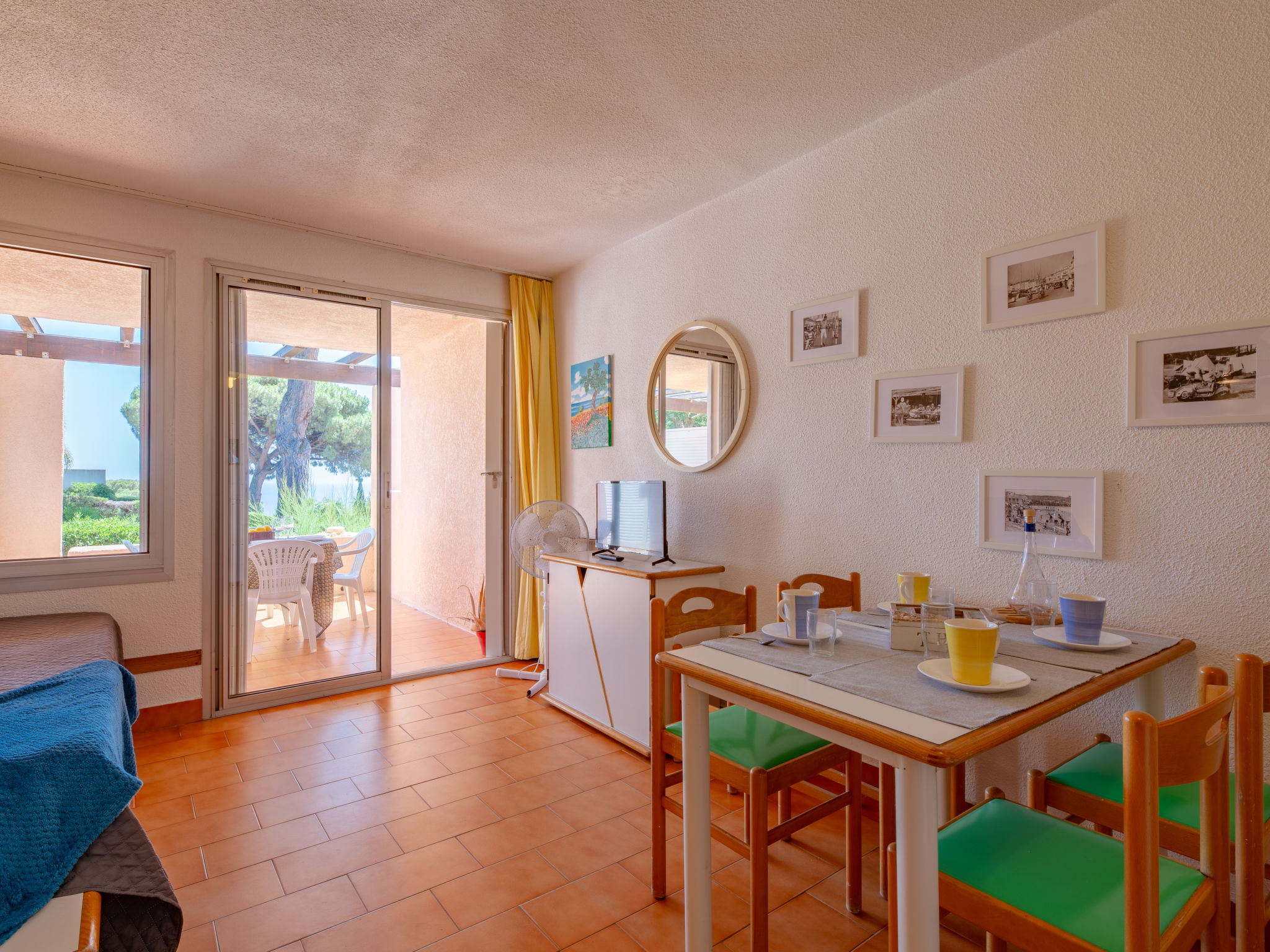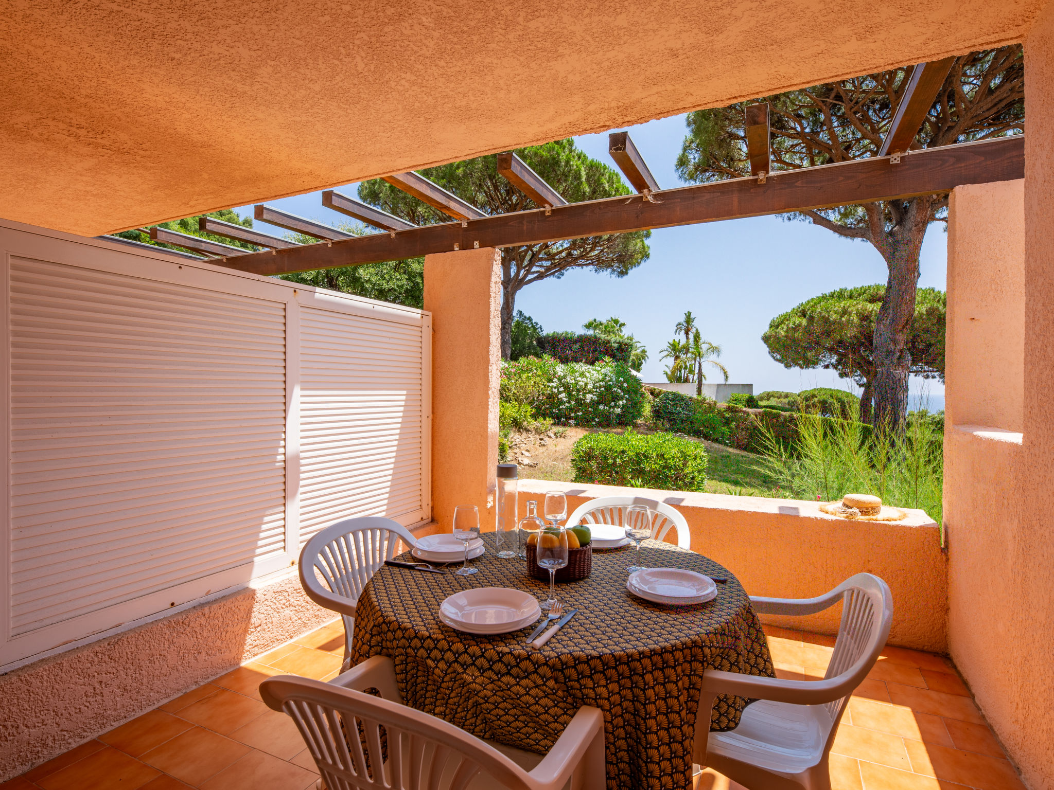 2-Zimmer-Wohnung 26 m2, im Erdgeschoss. Einfach eingerichtet: Wohn-/Esszimmer mit 1 Ausziehbett (2 x 80 cm, Länge 190 cm), TV. Ausgang zur Terrasse. 1 kleines Zimmer mit 1 franz. Bett (140 cm, Länge 190 cm). Kochnische (4 Kochplatten, Geschirrspüler, Toaster, Wasserkocher, Mikrowelle, Tiefkühler, elektrische Kaffeemaschine). Dusche/WC. E-Heizung. Terrasse 11 m2. Schöne Sicht auf das Meer. Zur Verfügung: Waschmaschine. Internet (Wireless LAN, extra). Bitte beachten: Nichtraucher-Unterkunft. 1 Haustier/Hund erlaubt. Rauchmelder. Die Unterkunft ist über 45 Stufen zugänglich und befindet sich 600 m vom Strand entfernt. Diese Unterkunft hat Zugang zum runden Schwimmbad. Inserat einer Privatperson nach Artikel 155, IV, CGI. 83115002954JD