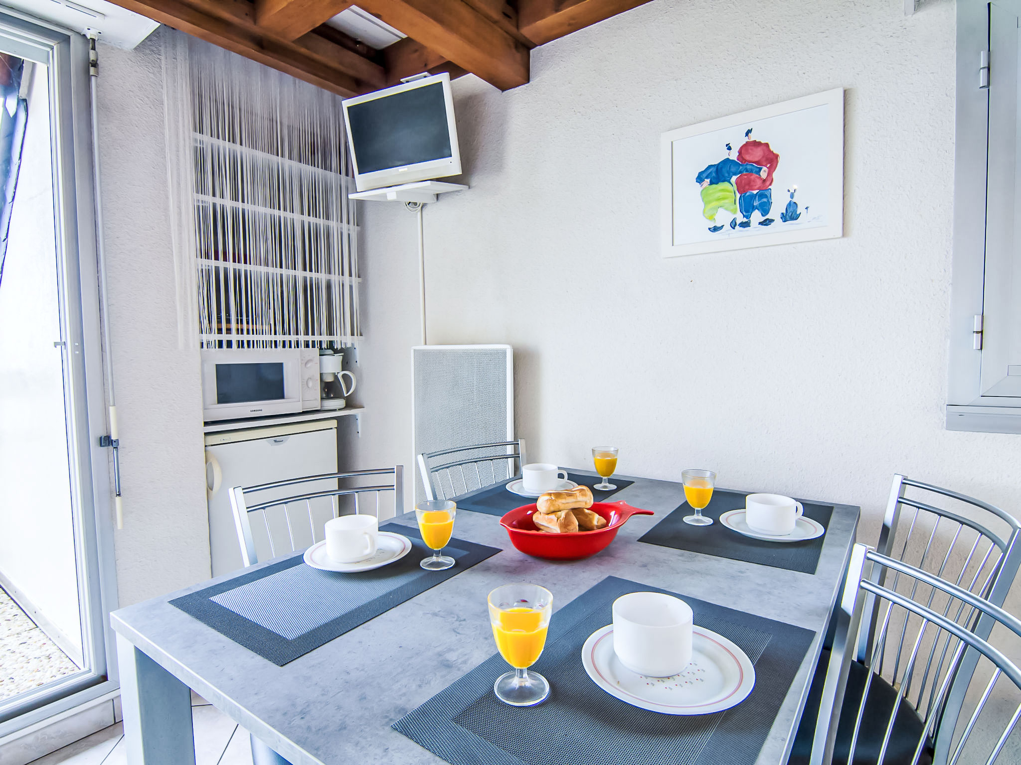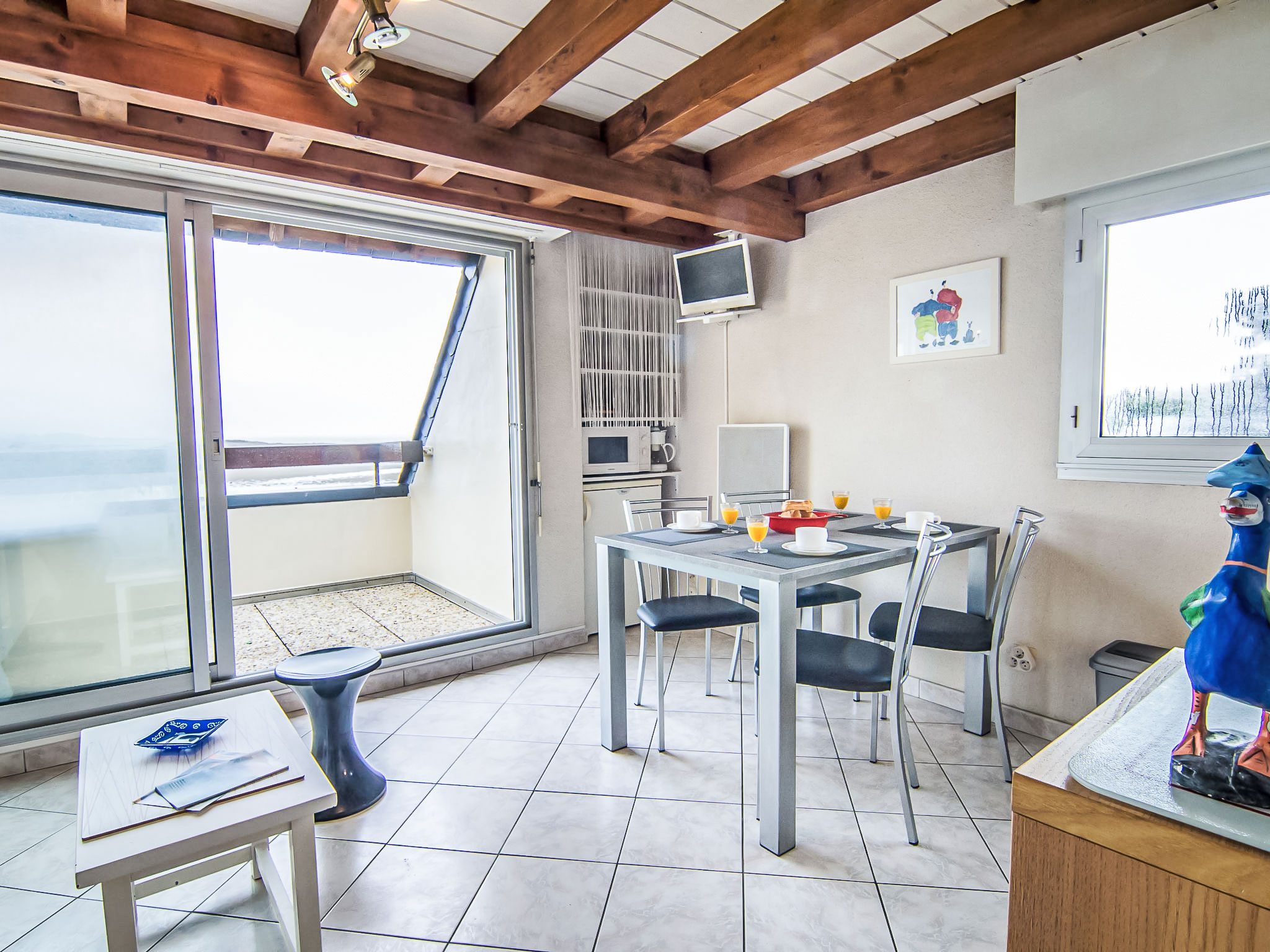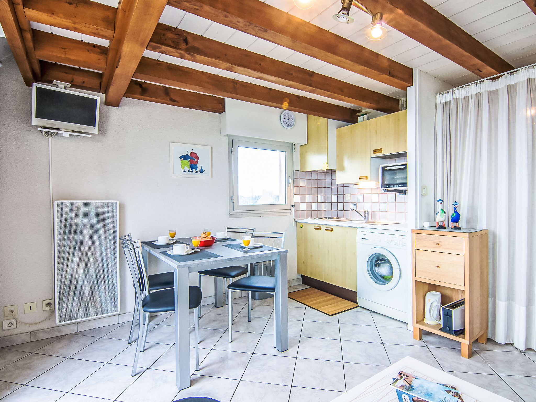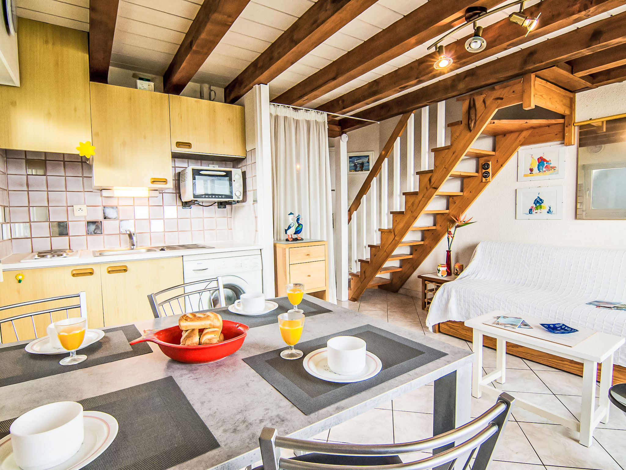 2-Zimmer-Wohnung 29 m2 auf 2 Stockwerken im 2. Stock, Südostlage. Wohn-/Esszimmer mit 1 Ausziehbett (2 Pers.), TV. Ausgang zum Balkon. Kochnische (2 Kochplatten, Backofen, Mikrowelle). Bad/WC. Obergeschoss: 1 abgeschrägtes Zimmer mit 1 franz. Bett (140 cm). Balkon 5 m2. Balkonmöbel. Schöne Sicht auf das Meer. Zur Verfügung: Waschmaschine, Haartrockner. Internet (Wireless LAN, extra). Parkplatz Nr. 14. Bitte beachten: TV nur FR. Rauchmelder. Inserat einer Privatperson nach Artikel 155, IV, CGI.