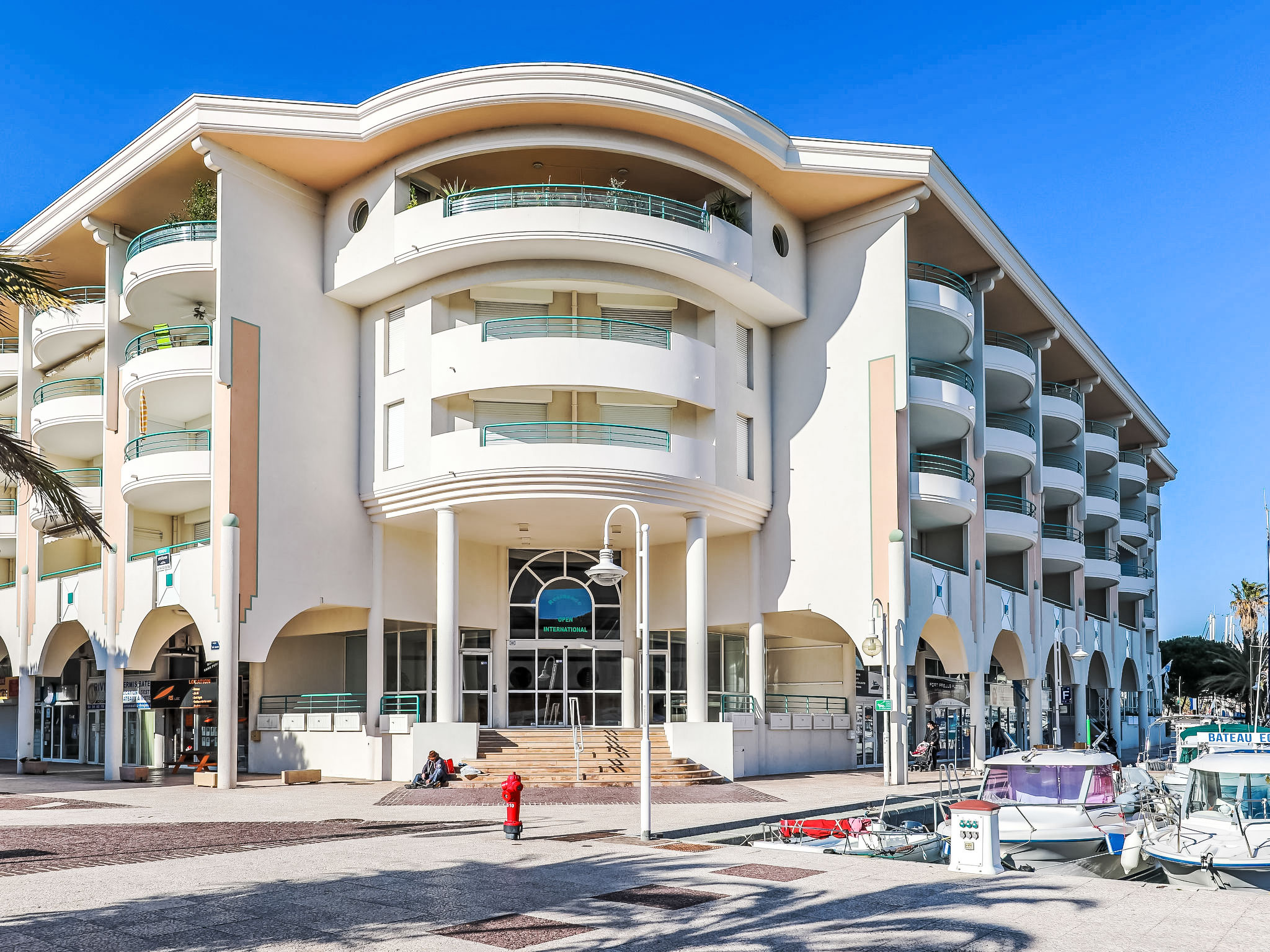Port Fréjus: Residenz "L'Open", auf 5 Stockwerken. 190 Wohnungen in der Residenz. 150 m vom Meer, 150 m vom Strand. Zur Mitbenutzung: Schwimmbad eckig (10 x 20 m, 110 - 180 cm tief, saisonale Verfügbarkeit: 15.Mai.-15.Okt.) mit Innentreppe. Im Hause: Fahrstuhl. Einkaufsgeschäft 100 m, Supermarkt 1 km, Restaurant, Bar 50 m, Bahnstation "Saint-Raphaël Valescure" 2 km, Sandstrand "Base Nature" 500 m, Tauchzentrum 20 m, Freibad 500 m, Thermalbad "Thalassotherapie" 50 m. Sporthafen 10 m, Golfplatz (18 Loch) 8 km. Nahe gelegene Sehenswürdigkeiten: Base nature 200 m, Cannes 40 km, Saint-tropez 40 km, Nice 70 km, Gorges du Verdon 90 km. Bekannte Seen in der Umgebung sind gut erreichbar: Sainte-Croix 90 km. Wandergebiete: Estérel 5 km. Bitte beachten: Autobahn 10 km vom Haus. Flugplatz 65 km vom Haus. In diesem Haus sind weitere Ferienwohnungen mietbar.