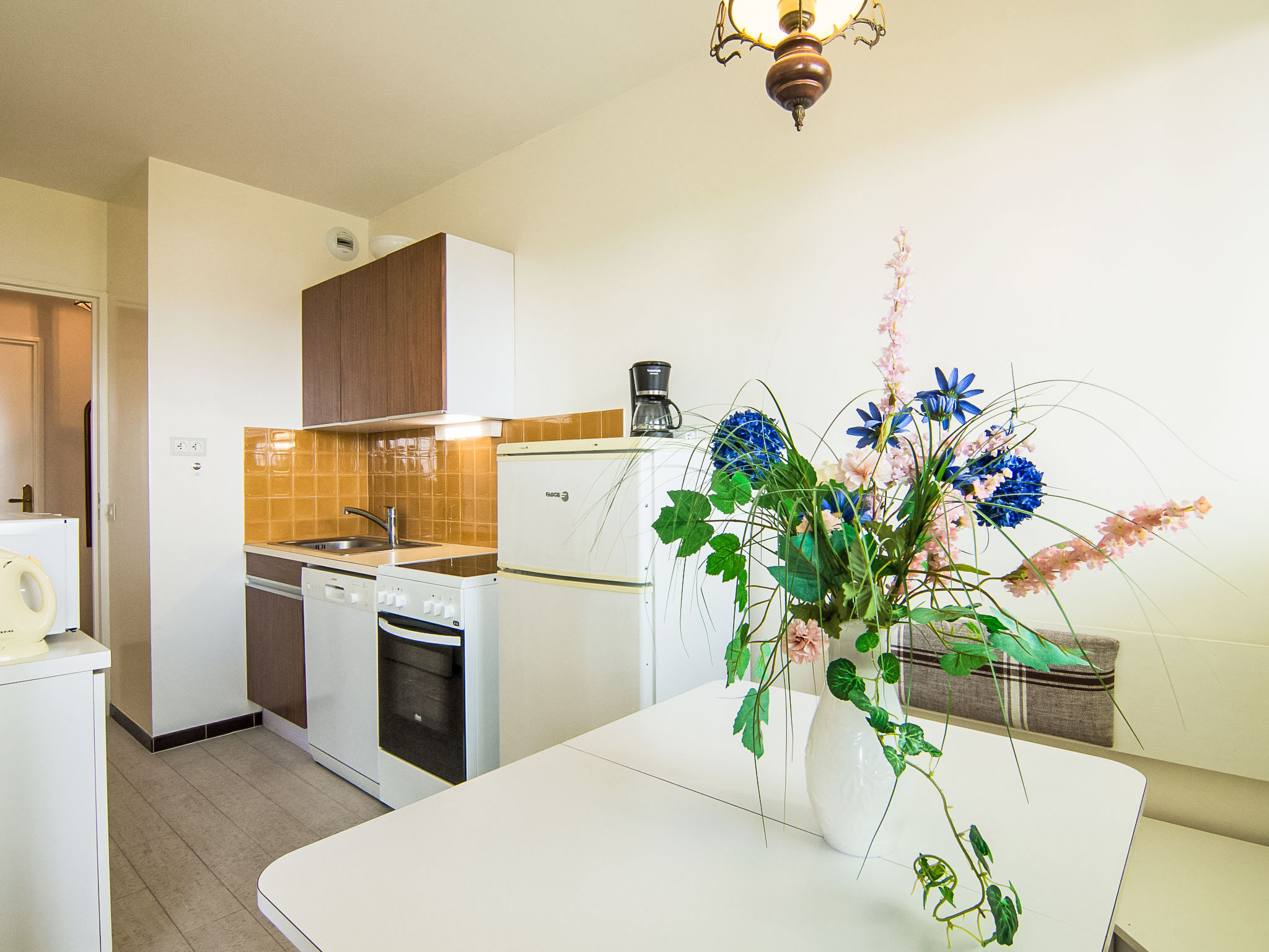2-Zimmer-Wohnung 55 m2 im 3. Stock. Geräumig, zweckmässig eingerichtet: grosses Wohn-/Esszimmer mit 1 Doppeldiwanbett (1 x 140 cm, Länge 190 cm), TV. Ausgang zur Terrasse. 1 Zimmer mit 1 franz. Bett (1 x 140 cm, Länge 190 cm). Offene Küche (4 Kochplatten, Backofen, Mikrowelle, Tiefkühler, elektrische Kaffeemaschine). Dusche, sep. WC. Grosse Terrasse 7 m2, Südlage und Ostlage. Terrassenmöbel. Sicht auf das Städtchen. Zur Verfügung: Internet (Wireless LAN, extra). Bitte beachten: Nichtraucher-Unterkunft. Rauchmelder. Inserat einer Privatperson nach Artikel 155, IV, CGI.