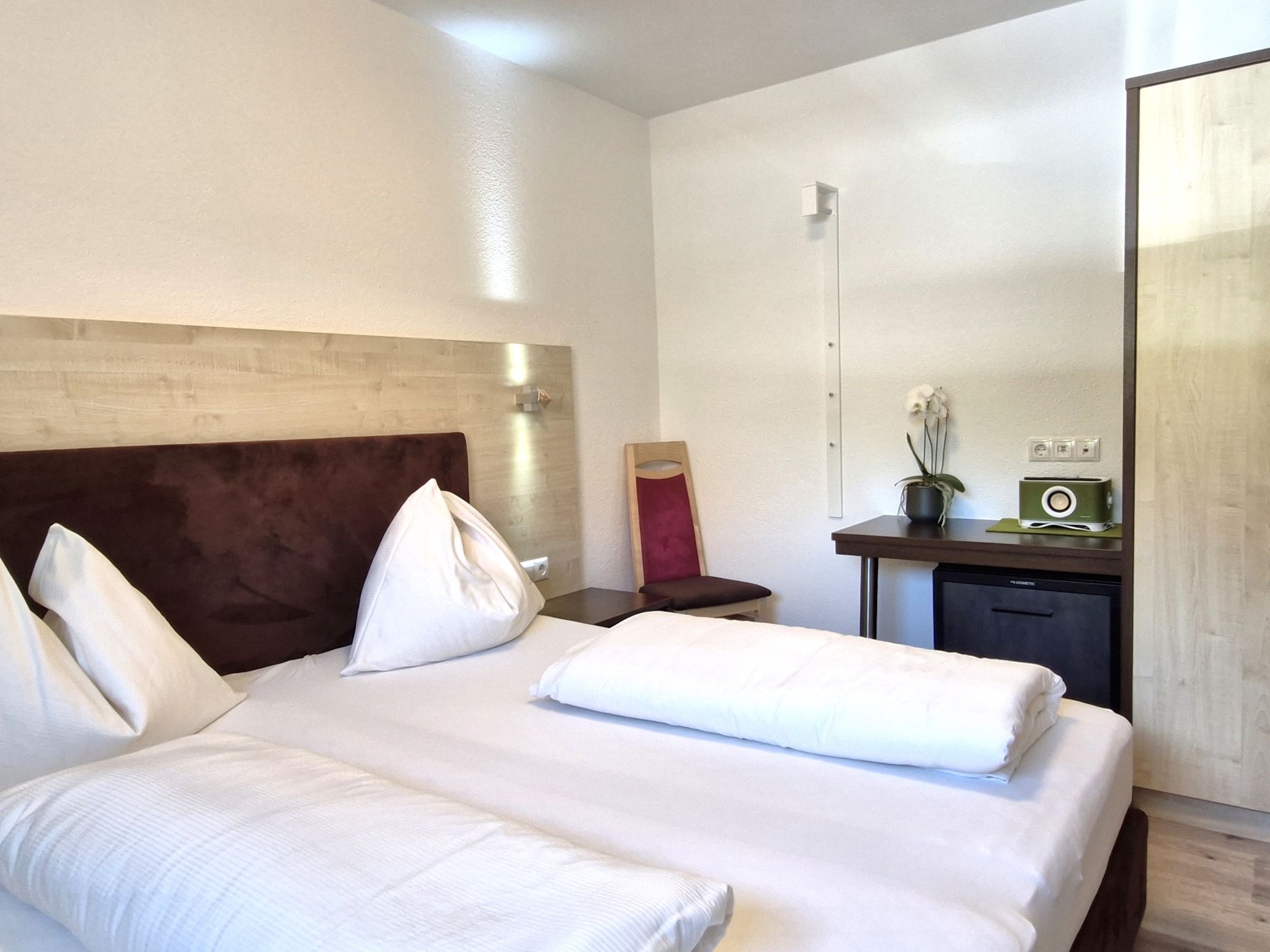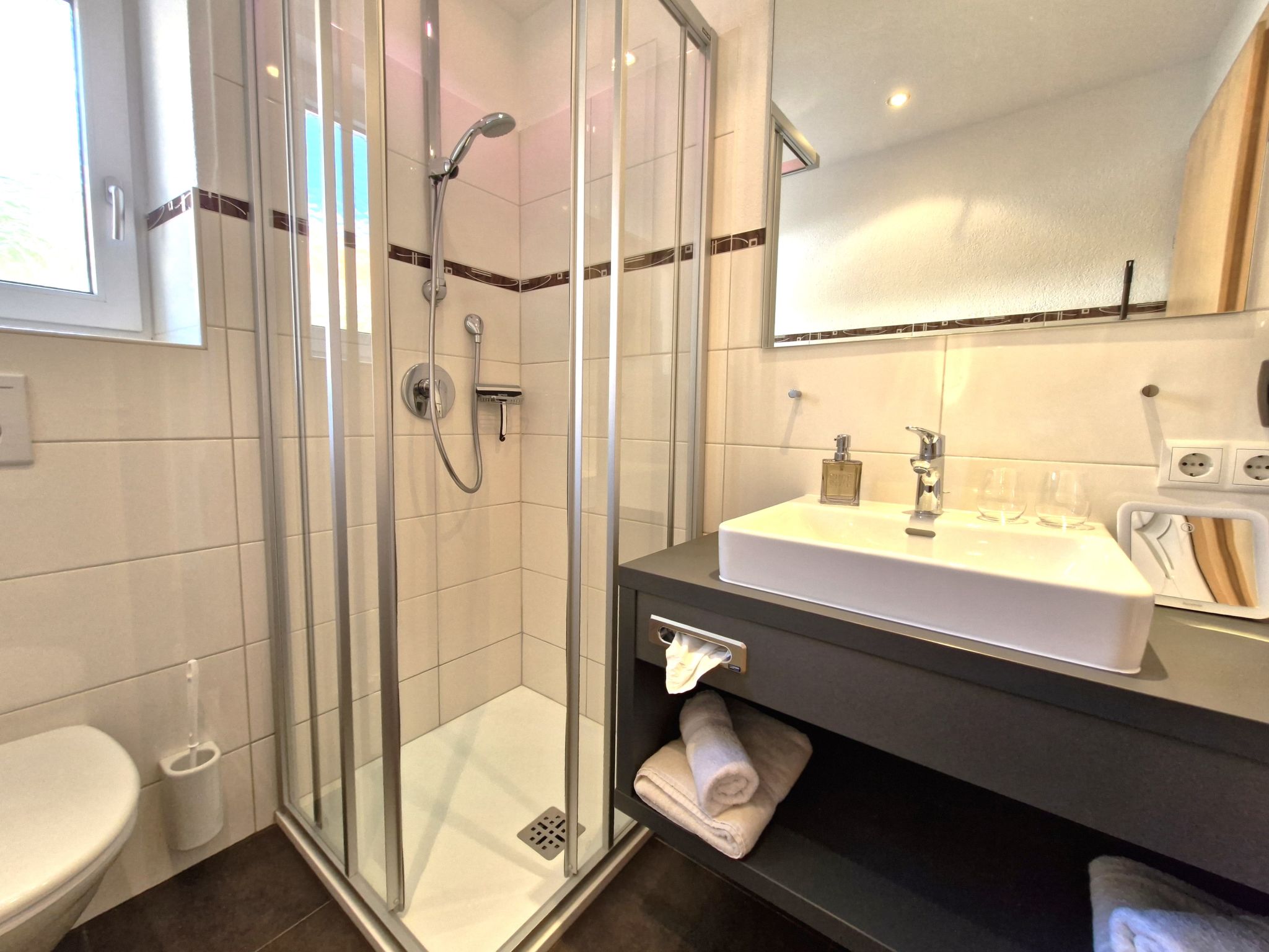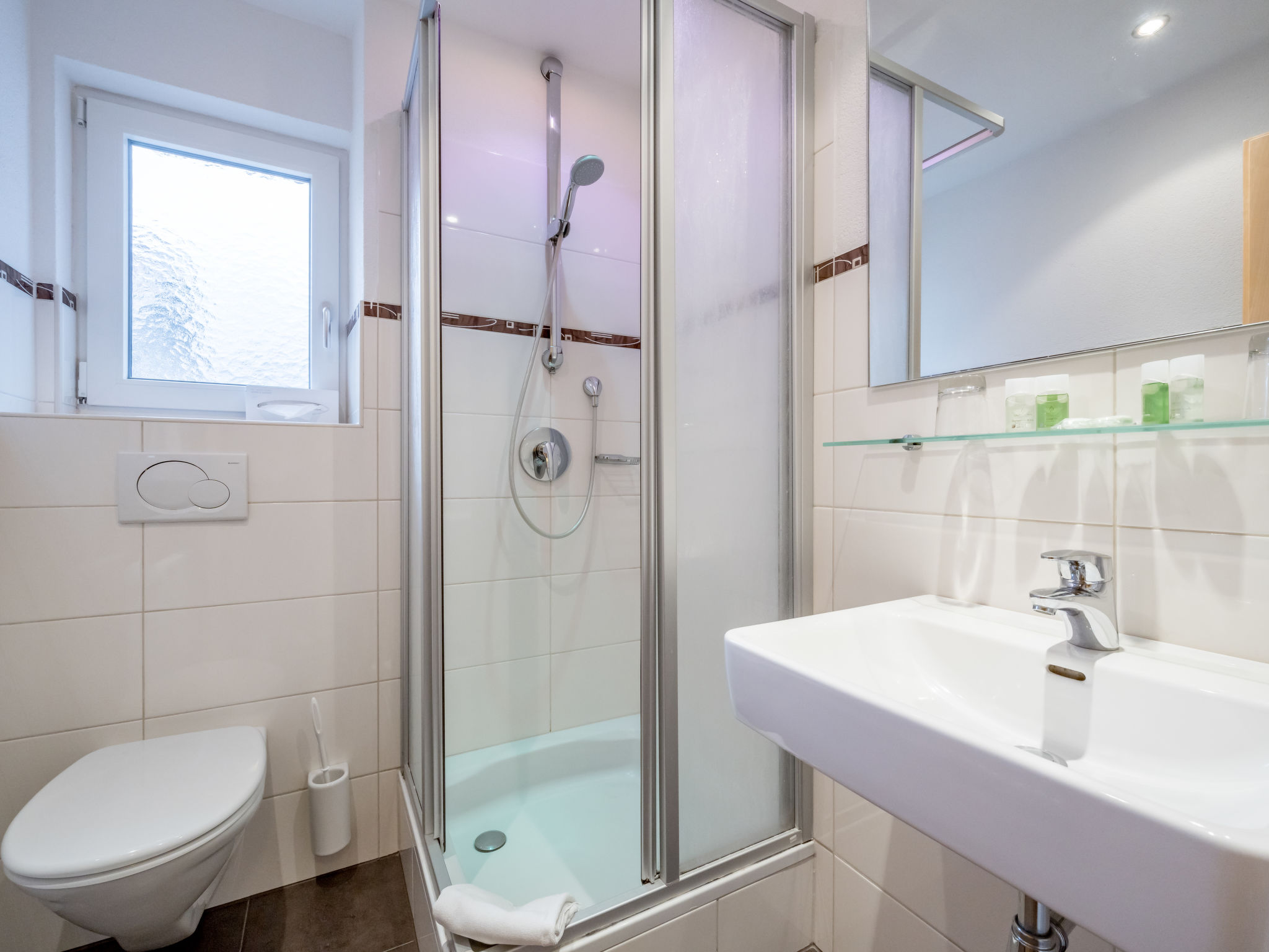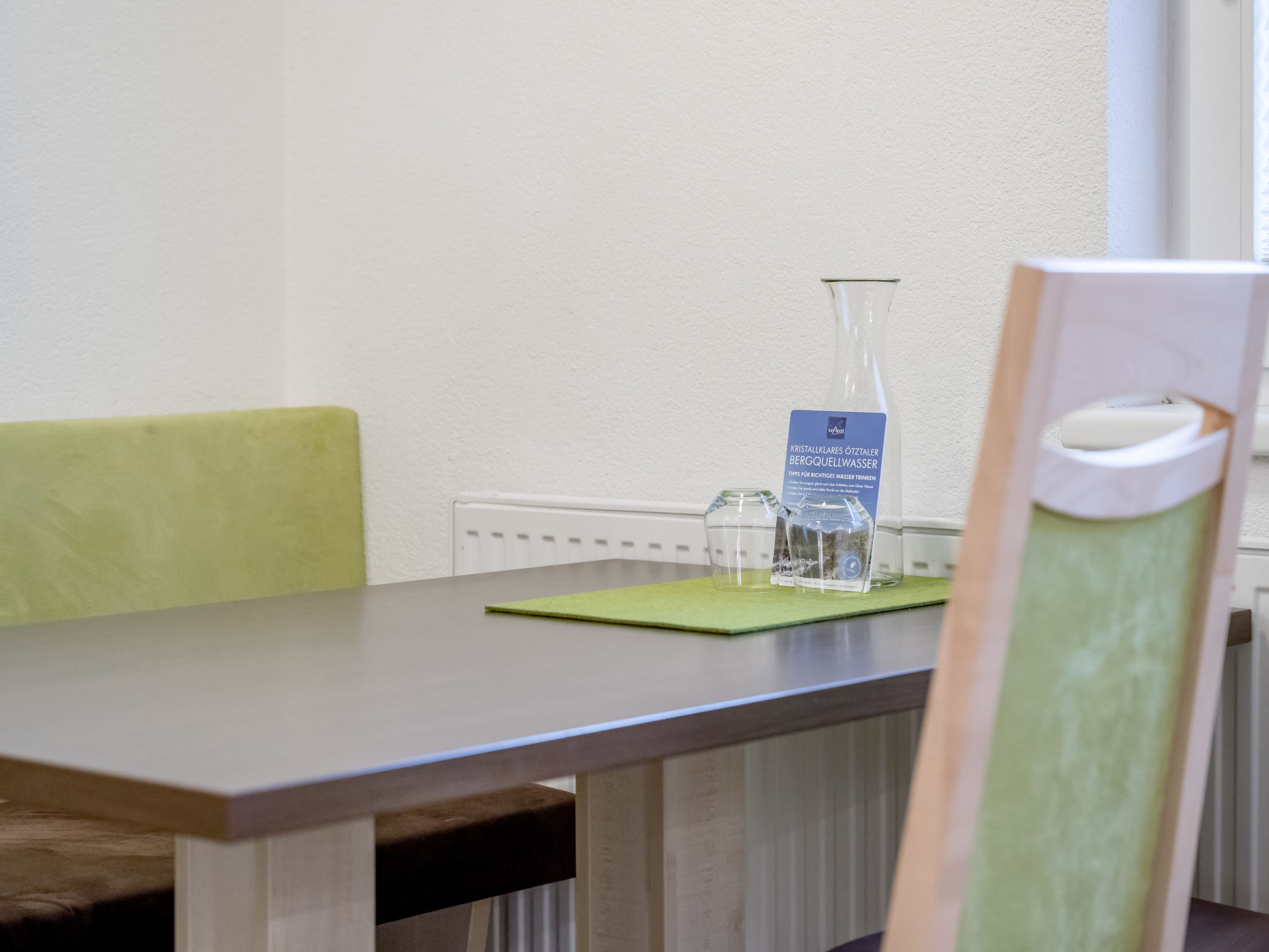 2-Zimmer-Wohnung, Erdgeschoss, ca. 27 m². Kleine Wohnküche (4 Ceranfelder, Mikrowelle, Geschirrspüler, Kühlschrank, Kaffeemaschine, Wasserkocher) mit Essplatz und Bettcouch. Doppelzimmer. Dusche/WC. Bei Belegung mit weniger Personen als der maximalen Personenzahl stehen nicht alle Wohneinheiten zur Verfügung.