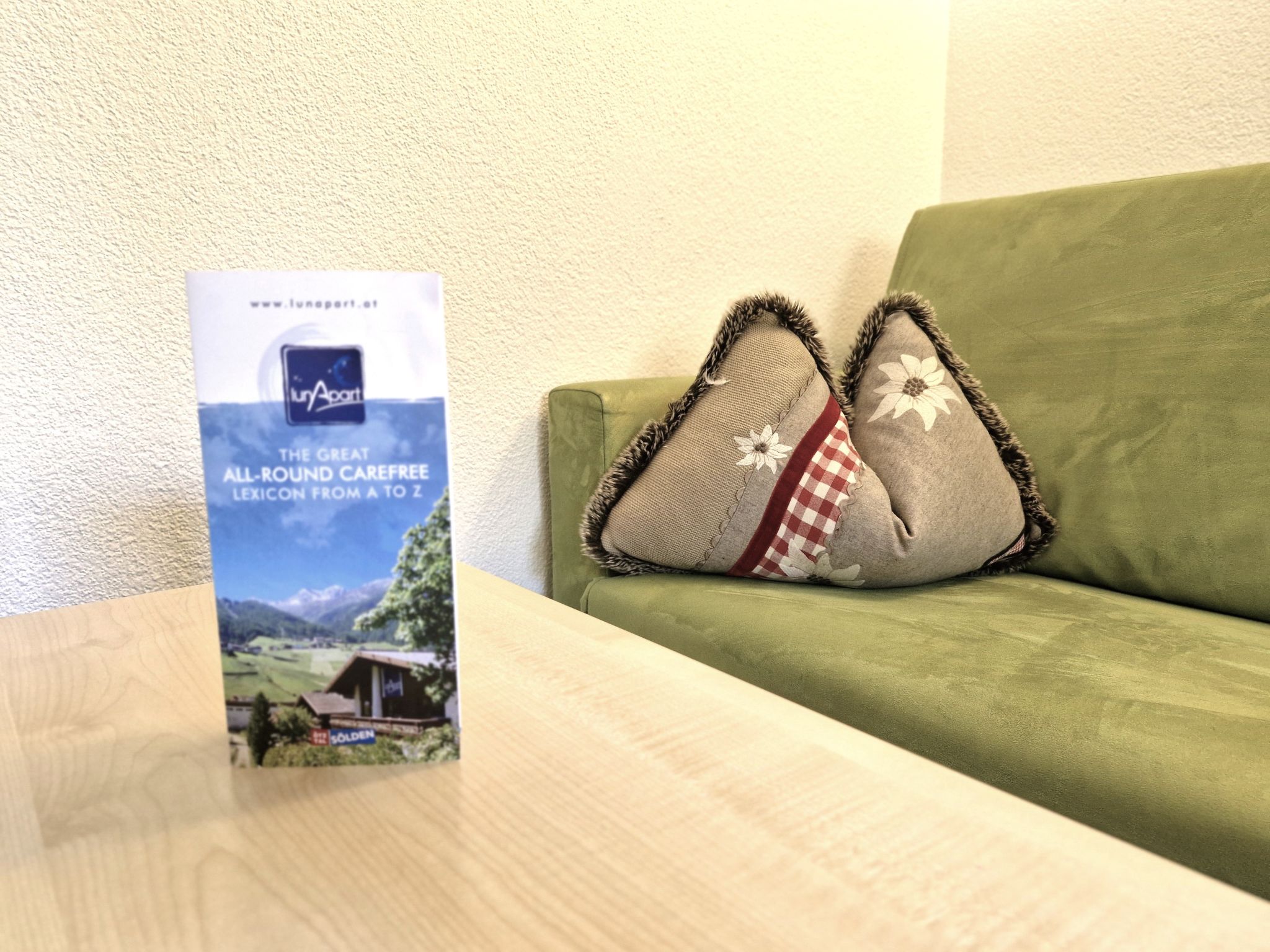 Haus LUNAPART mit 3 Ferienwohnungen und der Wohnung der Besitzer steht nahe der Ortsmitte von Sölden, abseits des Durchgangsverkehrs. Freizeit Arena mit Hallenbad ca. 150 m. Restaurant ca. 100 m, Geschäfte und Supermarkt jeweils ca. 200 m. Parkplatz auf dem Grundstück. Im Haus Aufenthaltsraum bzw. Lounge mit Bartischen und Getränkeautomat. Brötchenservice. Die Wohnungen sind modern und gut eingerichtet. Laminat- und Teppichböden. Jeweils TV, Radio, Internetzugang (WLAN, inklusive), Safe. Öl-Zentralheizung. Extra: Für Gäste des Hauses LUNAPART ist der Eintritt (täglich 1x pro Person) in das Erlebnis-Hallenbad und die Sauna in der Freizeit Arena Sölden (geschlossen von Mai bis Anfang Juni) gratis. Winter-Infos: Giggijochbahn ca. 200 m, Talstation der Gaislachkogelbahn 1,4 km. Langlaufloipe ca. 500 m. Im Haus Skiraum mit Schuhtrockner.