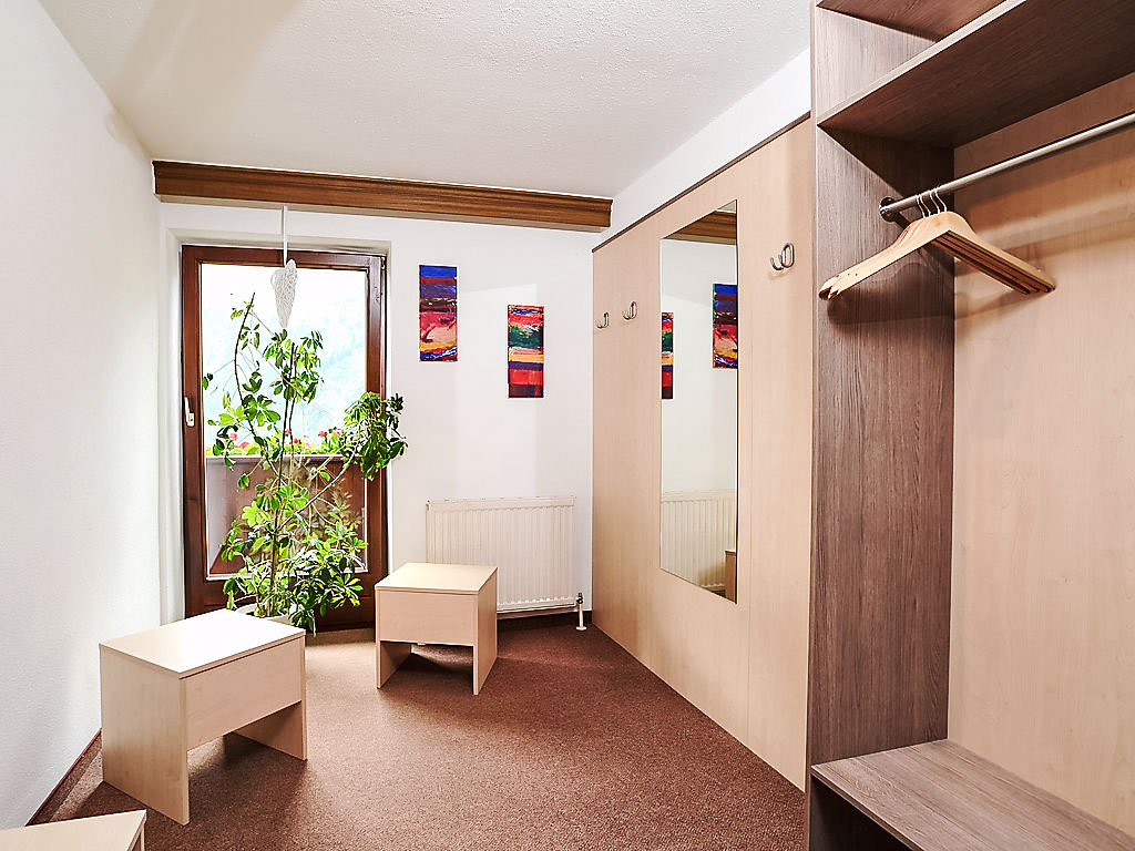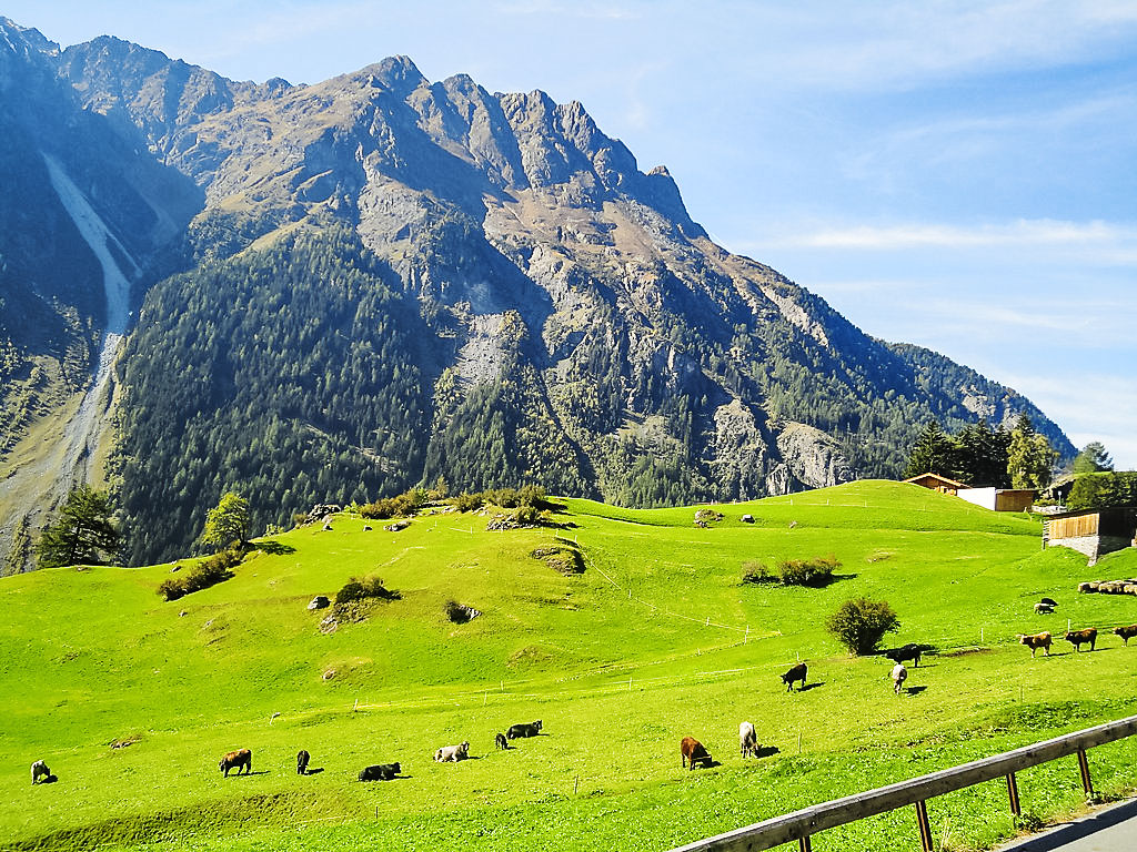 6-Zimmer-Doppelhaushälfte 150 m2 auf 2 Stockwerken. Geschmackvoll und mit viel Holz eingerichtet: Obergeschoss: Eingang. 1 Doppelzimmer mit Sat-TV. 1 Doppelzimmer. Wohnzimmer mit Sat-TV und Kachelofen. Küche (Backofen, Geschirrspüler, 4 Glaskeramikherd Platten, Toaster, Wasserkocher, Tiefkühler, elektrische Kaffeemaschine) mit Essecke und Holzofen. Dusche, sep. WC, Doppelwaschbecken. Fussbodenheizung. 2. Obergeschoss: 1 Doppelzimmer mit Sat-TV. 1 Zimmer mit 1 Bett, 1 Doppelbett, Waschbecken und Sat-TV. Dusche/WC. Komfortable Einrichtung im Landhausstil. Das Wohnzimmer ist eine Bauernstube. Balkon, Terrasse. Terrassenmöbel, Gartengrill. Herrliche Panoramasicht auf die Berge und die Landschaft. Zur Verfügung: Holz (gratis). Internet (Wireless LAN, gratis). Bitte beachten: Nichtraucher-Unterkunft.