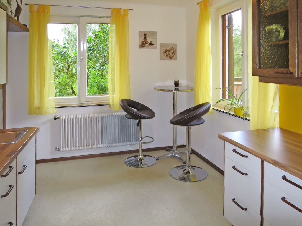 5-Zimmer-Haus, 2 Etagen, ca. 120 m². Erdgeschoss: Eingang in Diele. Wohn-/Schlafraum mit Doppelbettcouch, Sessel und Balkonausgang. Stube mit Essplatz (Eckbank, 4 Stühle). Küche (4 Ceranfelder, Backofen, Mikrowelle, Geschirrspüler, Kühlschrank, Kaffeemaschine, Wasserkocher, Toaster). Bad. Sep.WC. 1. Etage: Doppelzimmer. 2 Doppelzimmer mit Balkonausgang, davon eines mit Waschbecken. Dusche/WC. Bei Belegung mit weniger Personen als der maximalen Personenzahl stehen nicht alle Wohneinheiten zur Verfügung.