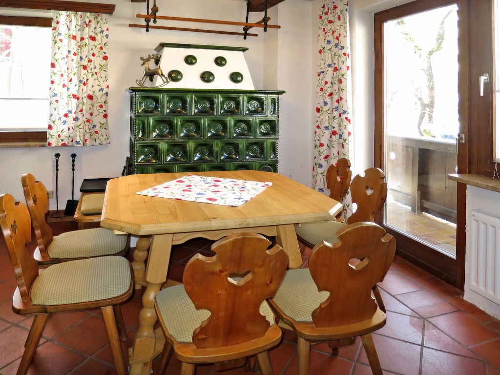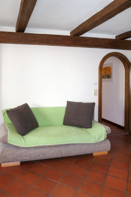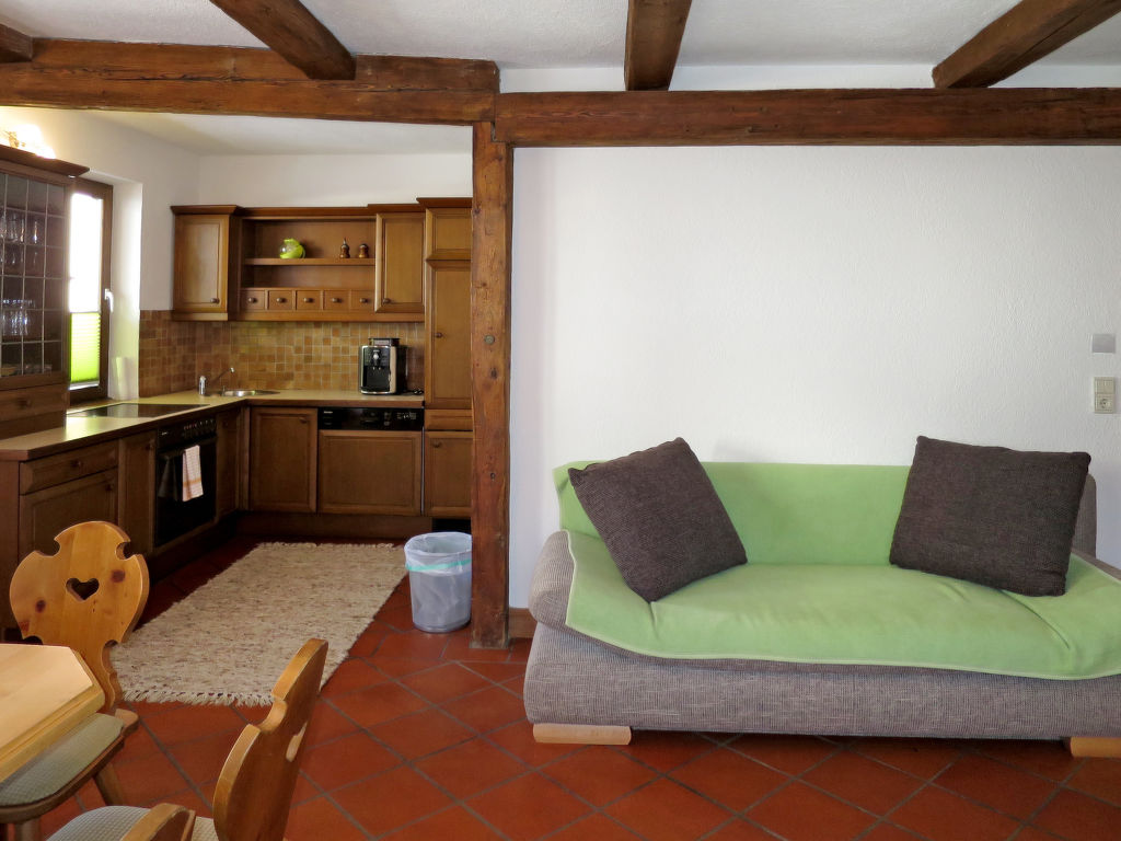 2-Zimmer-Wohnung, 1. Etage, ca. 55 m². Wohn-/Schlafraum mit Doppelbettcouch, weiterer Doppelbettcouch (als Zusatzbett, siehe Nebenkosten), Kachelofen mit Sitzbank (wird auf Wunsch vom Vermieter beheizt), Essplatz und Balkonausgang, zum Wohnraum offene Küche (4 Ceranfelder, Backofen, Geschirrspüler, Kühlschrank, Kaffeemaschine, Wasserkocher). Doppelzimmer. Bad/WC. REG.NR.:50628-001272-2020