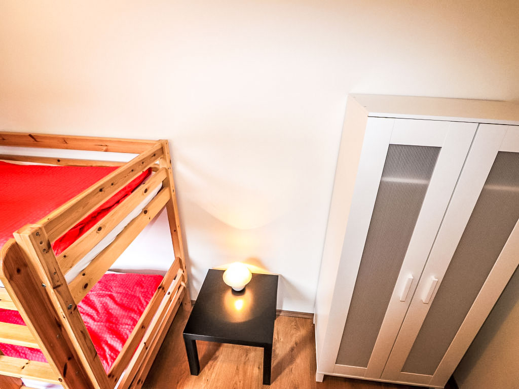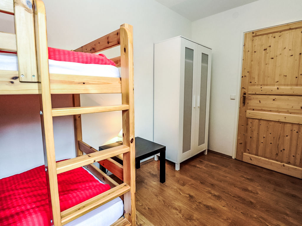 "Spatzennest", 5-Zimmer-Wohnung 82 m2 im 1. Stock. Objekt geeignet für 4 Erwachsene + 4 Kinder. Hell, gemütlich eingerichtet: grosses Wohn-/Esszimmer mit Esstisch, Küchenblock und Sat-TV. Ausgang zum Balkon. 1 Doppelzimmer. 1 Zimmer mit 1 franz. Bett (160 cm, Länge 200 cm). Ausgang zum Balkon. 2 Kinderzimmer, jedes Zimmer mit 1 x 2 Etagenbetten (80 cm, Länge 200 cm). Offene Küche (4 Kochplatten, Backofen, Geschirrspüler, Mikrowelle, Tiefkühler, elektrische Kaffeemaschine). 2 Duschen/WC. Grosser Balkon. Balkonmöbel. Schöne Sicht auf die Berge und die Ortschaft. Zur Verfügung: Internet (Wireless LAN, gratis). Bitte beachten: Nichtraucher-Unterkunft. Rauchmelder, Feuerlöscher, kein Fahrstuhl.