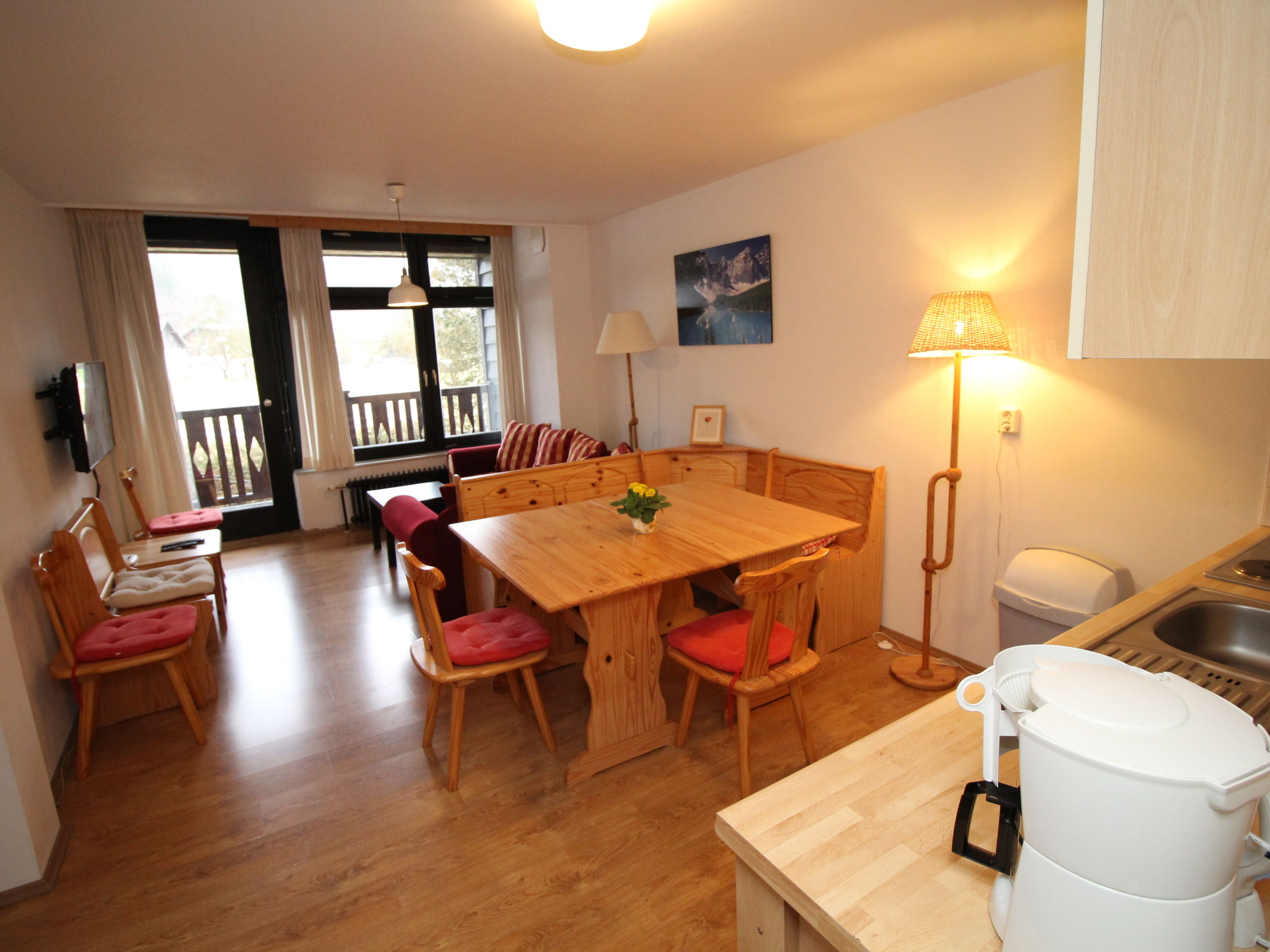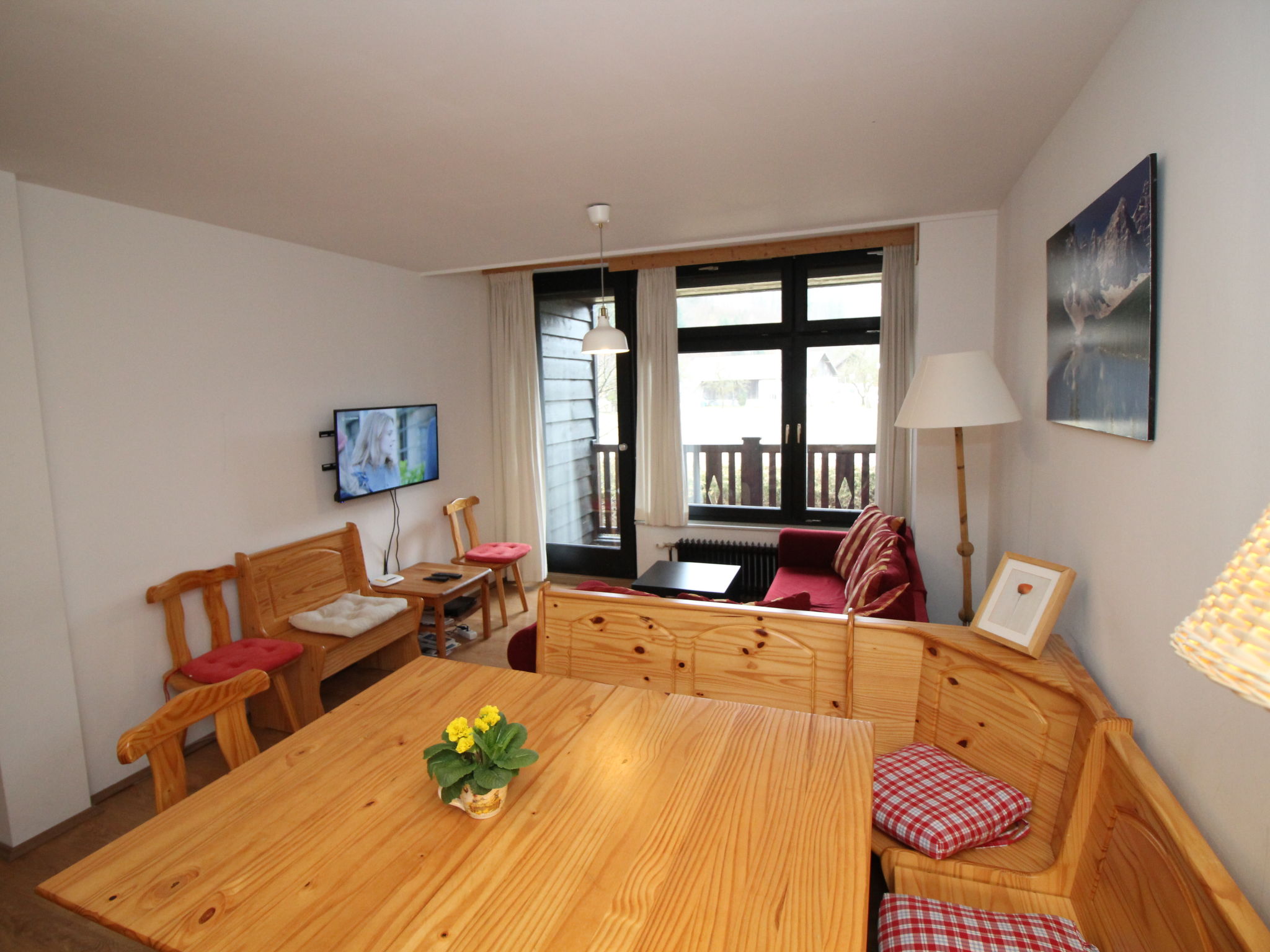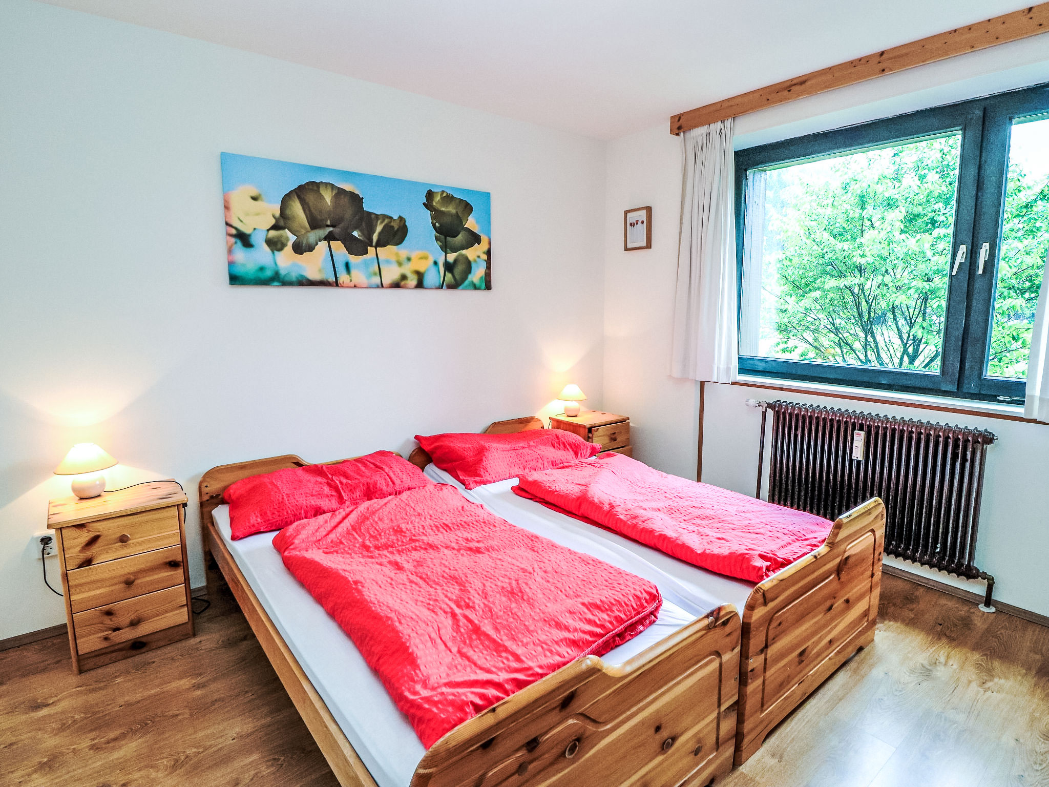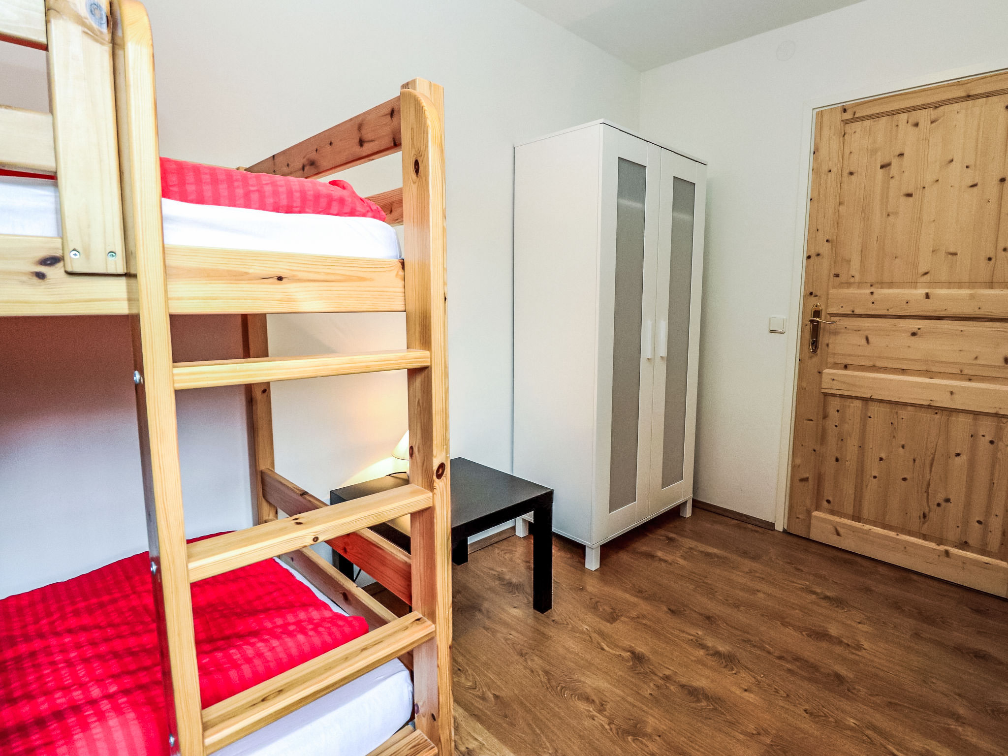 "Spatzennest", 5-Zimmer-Wohnung 82 m2 im 1. Stock. Objekt geeignet für 4 Erwachsene + 4 Kinder. Hell, gemütlich eingerichtet: grosses Wohn-/Esszimmer mit Esstisch, Küchenblock und Sat-TV. Ausgang zum Balkon. 1 Doppelzimmer. 1 Zimmer mit 1 franz. Bett (160 cm, Länge 200 cm). Ausgang zum Balkon. 2 Kinderzimmer, jedes Zimmer mit 1 x 2 Etagenbetten (80 cm, Länge 200 cm). Offene Küche (4 Kochplatten, Backofen, Geschirrspüler, Mikrowelle, Tiefkühler, elektrische Kaffeemaschine). 2 Duschen/WC. Grosser Balkon. Balkonmöbel. Schöne Sicht auf die Berge und die Ortschaft. Zur Verfügung: Internet (Wireless LAN, gratis). Bitte beachten: Nichtraucher-Unterkunft. Rauchmelder, Feuerlöscher, kein Fahrstuhl.