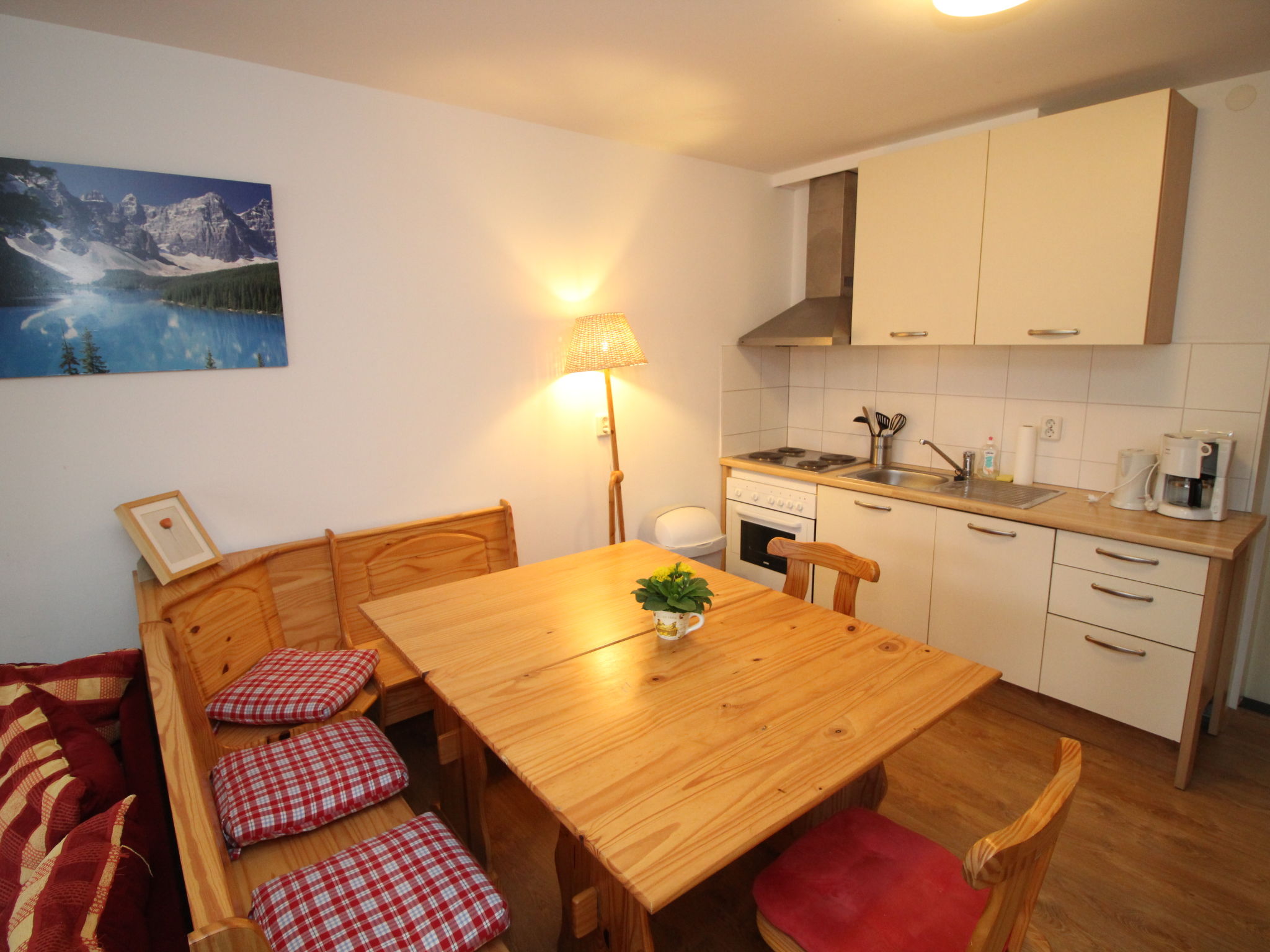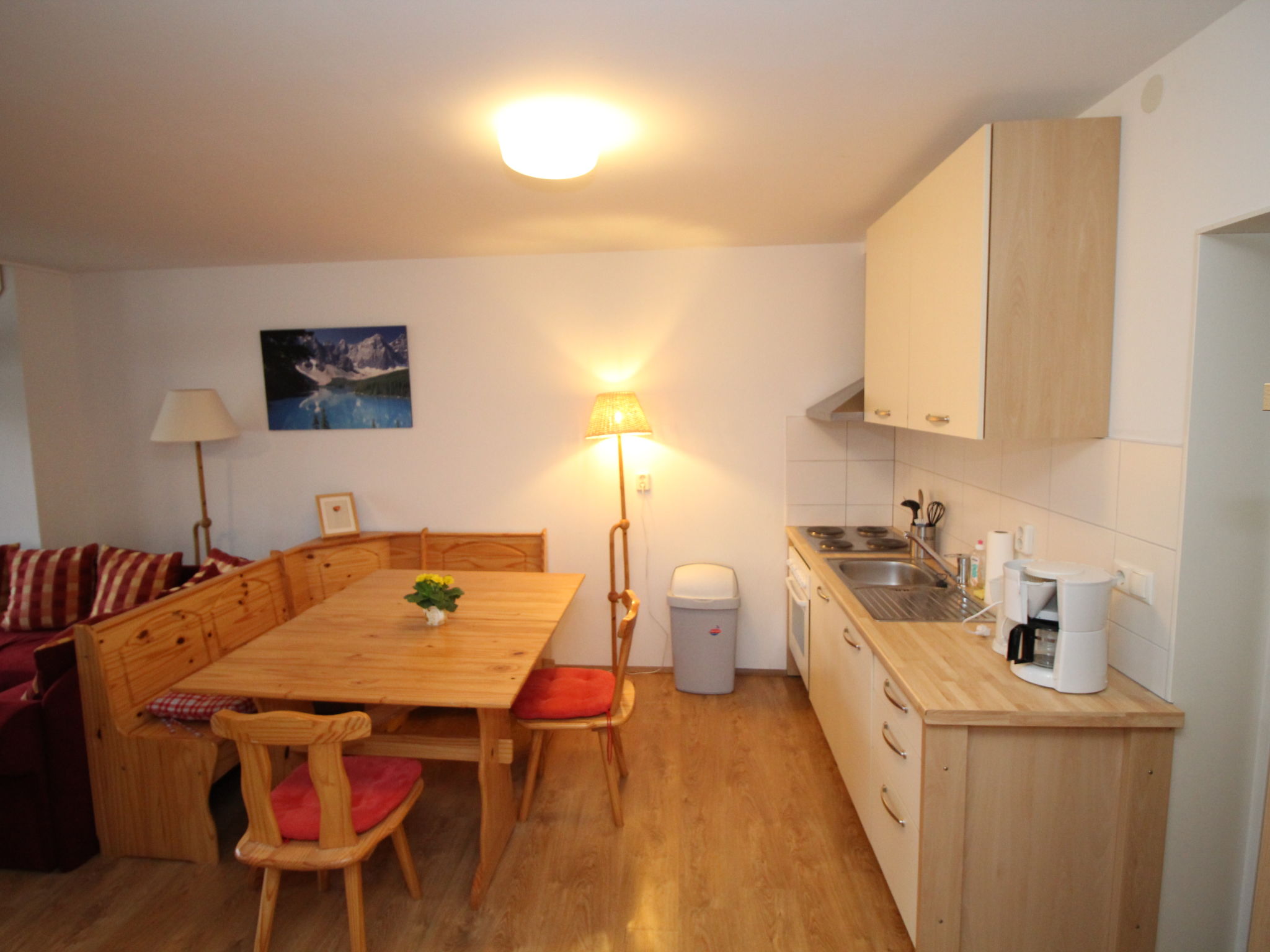 Gemütliches, einfaches Appartementhaus "Kesselboden", auf 3 Stockwerken, umgeben von Wiesen und Feldern. 500 m vom Zentrum, alleinstehende, ruhige Lage, in einer Sackgasse. Zur Mitbenutzung: naturbelassenes Grundstück. Im Hause: Wireless LAN, Einstellraum für Fahrräder, Skiraum. Parkplatz beim Haus. Lebensmittelgeschäft, Restaurant, Bäckerei, Café 500 m, Bahnstation "Grünau im Almtal" 750 m. Reitstall 2 km, Gondelbahn 5.5 km, Skipisten 5.5 km, Skiverleih 5.5 km, Skibushaltestelle 500 m. Nahe gelegene Sehenswürdigkeiten: Wildpark Grünau 6 km, Kinderland Schindlbach 7 km. Bekannte Skigebiete sind gut erreichbar: Familienskigebiet Kasberg 6 km. Bekannte Seen in der Umgebung sind gut erreichbar: Almsee 13 km, Traunsee 20 km. Wandergebiete: Farrenau 3 km. Bitte beachten: Babyausstattung auf Anfrage. Jugendgruppen nur auf Anfrage. Angeln (mit Bewilligung). Gratis Skibus. Tiere in der Umgebung. In diesem Haus sind weitere Ferienwohnungen mietbar. Alle Häuser/Wohnungen sind individuell eingerichtet.