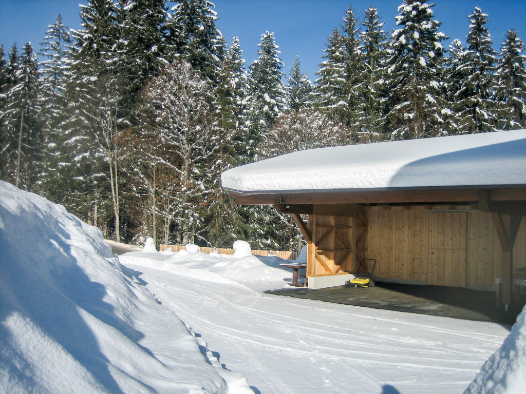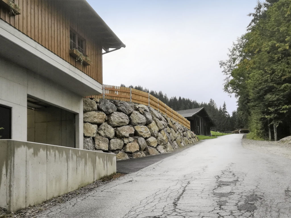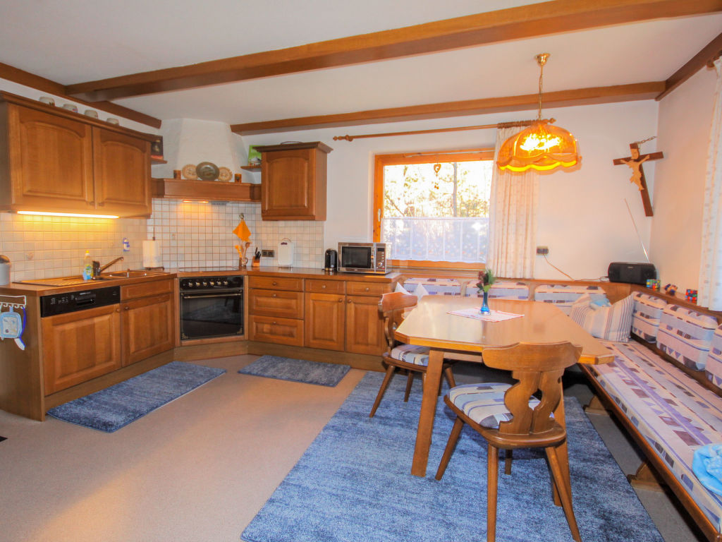 "Karwendel", 2-Zimmer-Wohnung 86 m2, im Erdgeschoss. Gemütlich eingerichtet: Eingang. 1 Zimmer mit 1 Bett und 1 Doppelbett. Wohn-/Schlafzimmer mit 1 Doppeldiwanbett, Sat-TV, DVD und Kachelofen. Ausgang zum Balkon. Wohnküche (4 Kochplatten, Backofen, Geschirrspüler, Mikrowelle) mit Essecke, Radio, CD und Holzofen. Ausgang zum Balkon. Bad/Dusche, sep. WC. Balkon 8 m2. Terrassenmöbel, Abstellkammer. Herrliche Panoramasicht auf die Berge und die Landschaft. Zur Verfügung: Waschmaschine, Wäschetrockner, Babybett. Internet (Wireless LAN, gratis). Der Kachelofen wird auf Wunsch täglich eingeheizt (Holz inklusive).