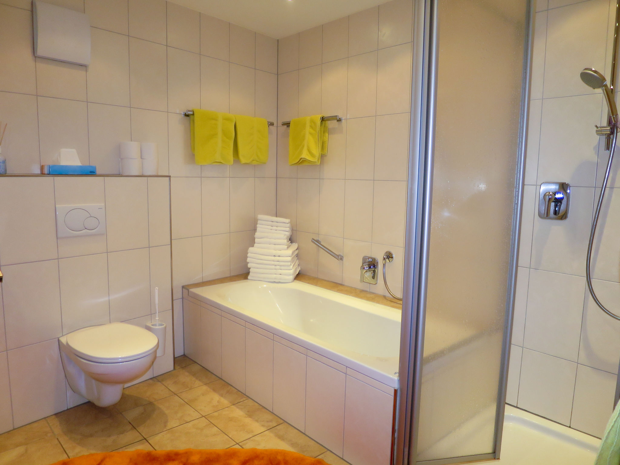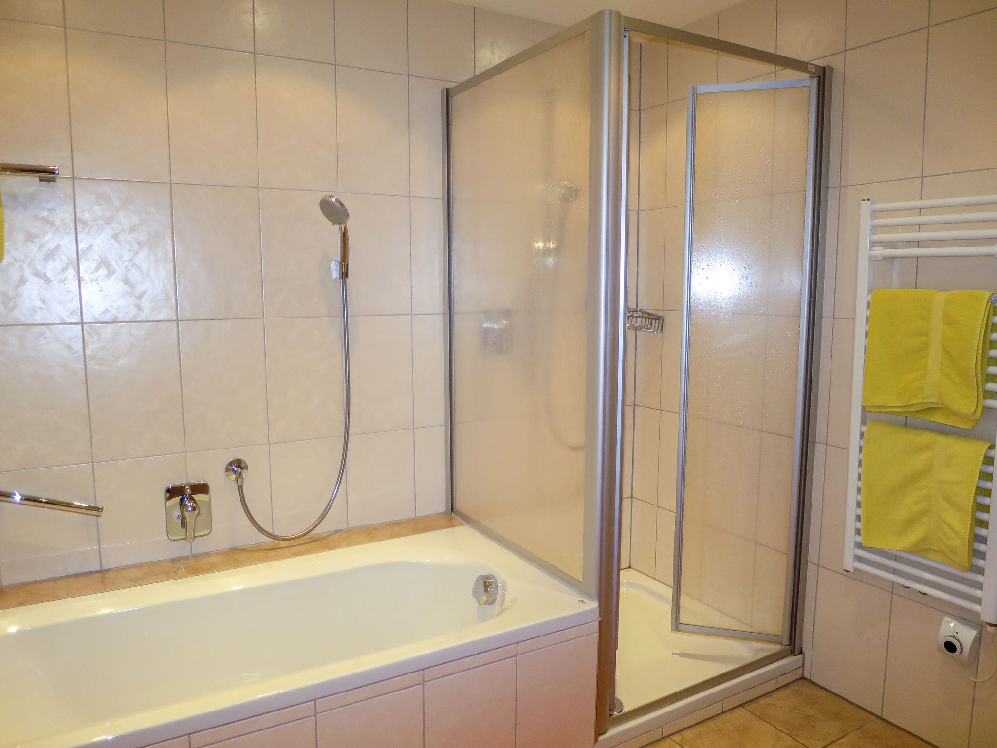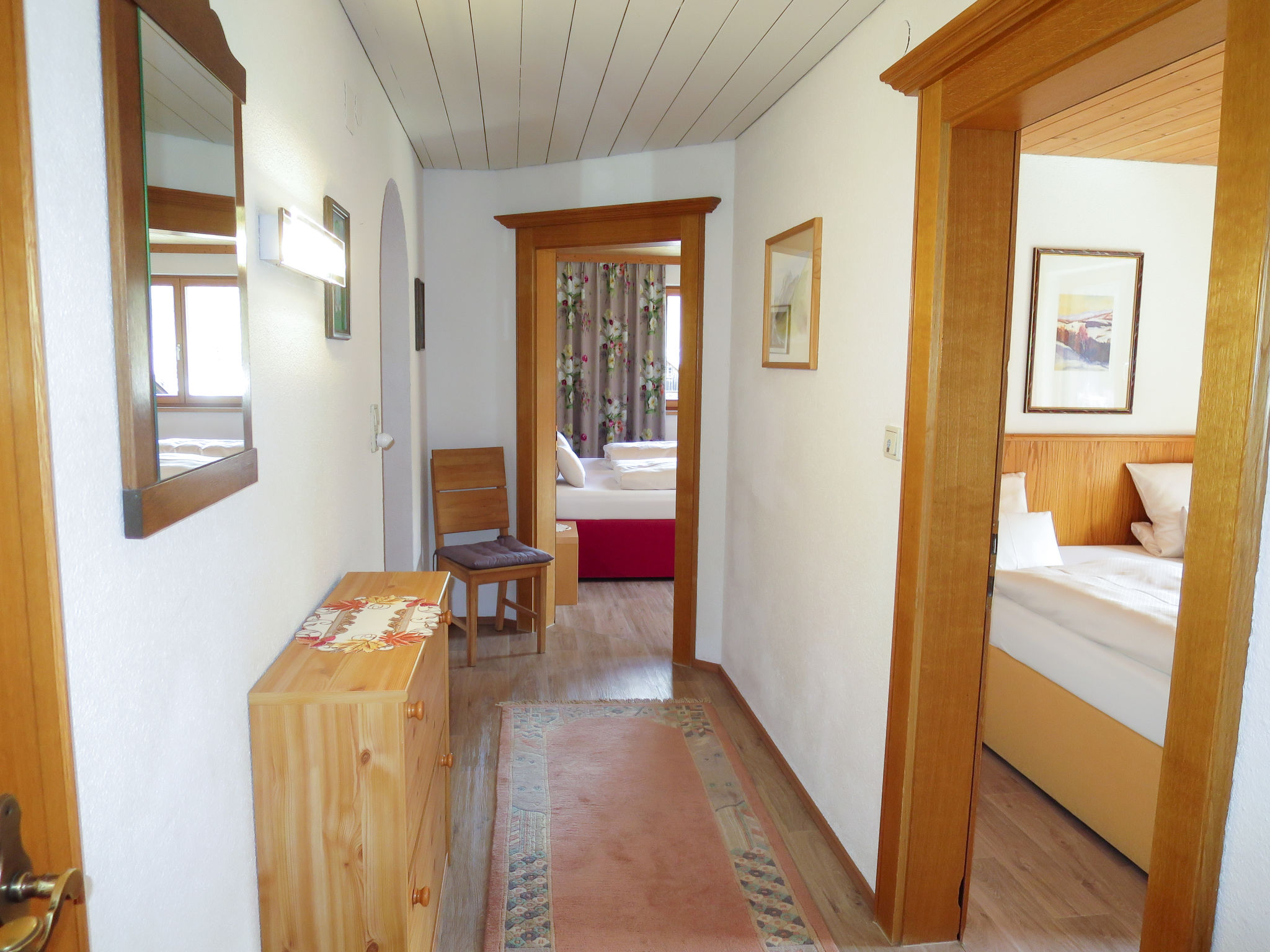 "Am Schönbach (STA155)", 5-Zimmer-Wohnung 90 m2 im 1. Stock. Gemütlich und mit viel Holz eingerichtet: abgeschrägtes Wohnzimmer mit Essecke, Kabel-TV und Radio. 1 Zimmer mit 1 Bett und 1 Doppelbett. 2 Doppelzimmer. Wohnküche (Backofen, Geschirrspüler, 4 Glaskeramikherd Platten, Mikrowelle, Tiefkühler, elektrische Kaffeemaschine) mit Essecke. Dusche, sep. WC, Bad/Dusche/WC, Doppelwaschbecken. Heizung. Parkettböden, Teppichboden. Balkon. Zur Verfügung: Kinderhochstuhl, Babybett (extra). Internet (Wireless LAN, gratis). Bitte beachten: Nichtraucher-Unterkunft. Maximal 1 Haustier/Hund erlaubt.