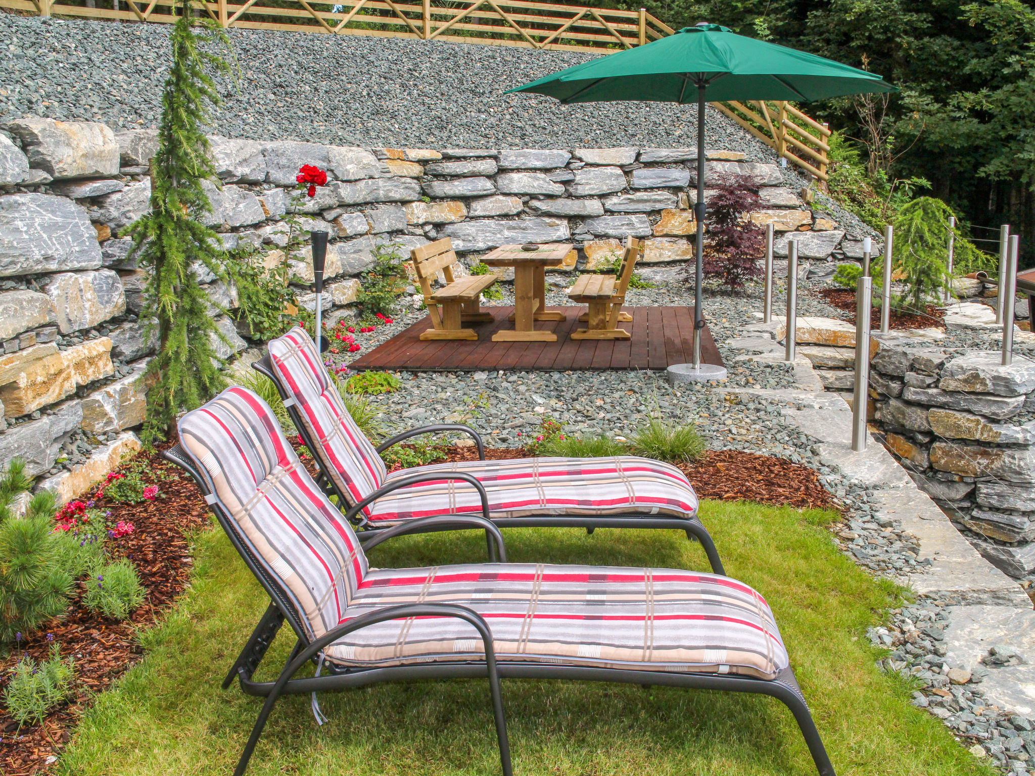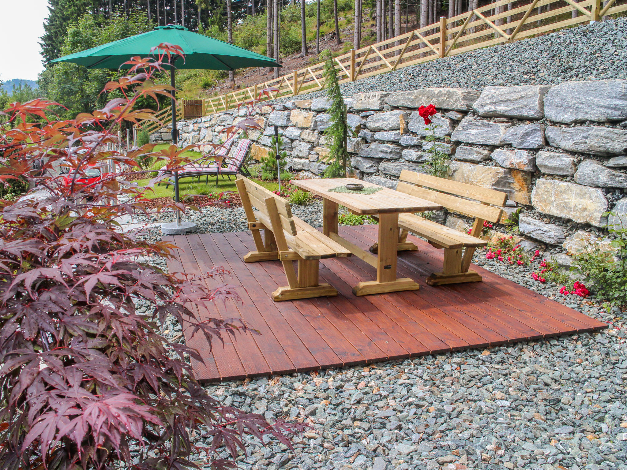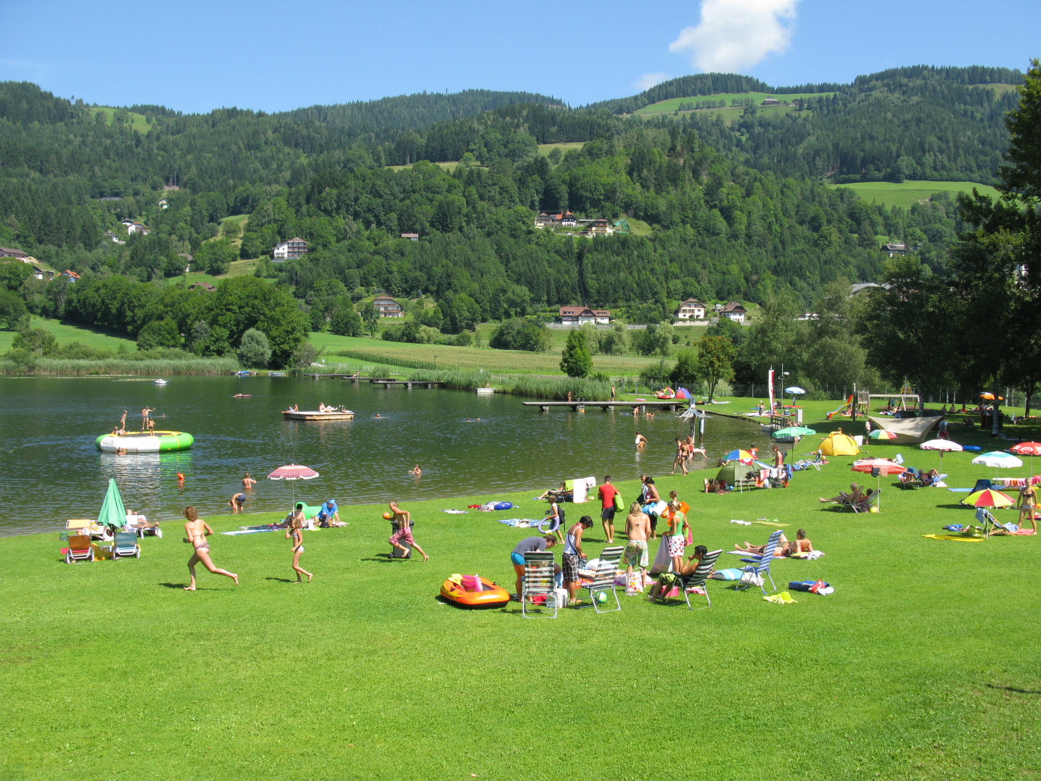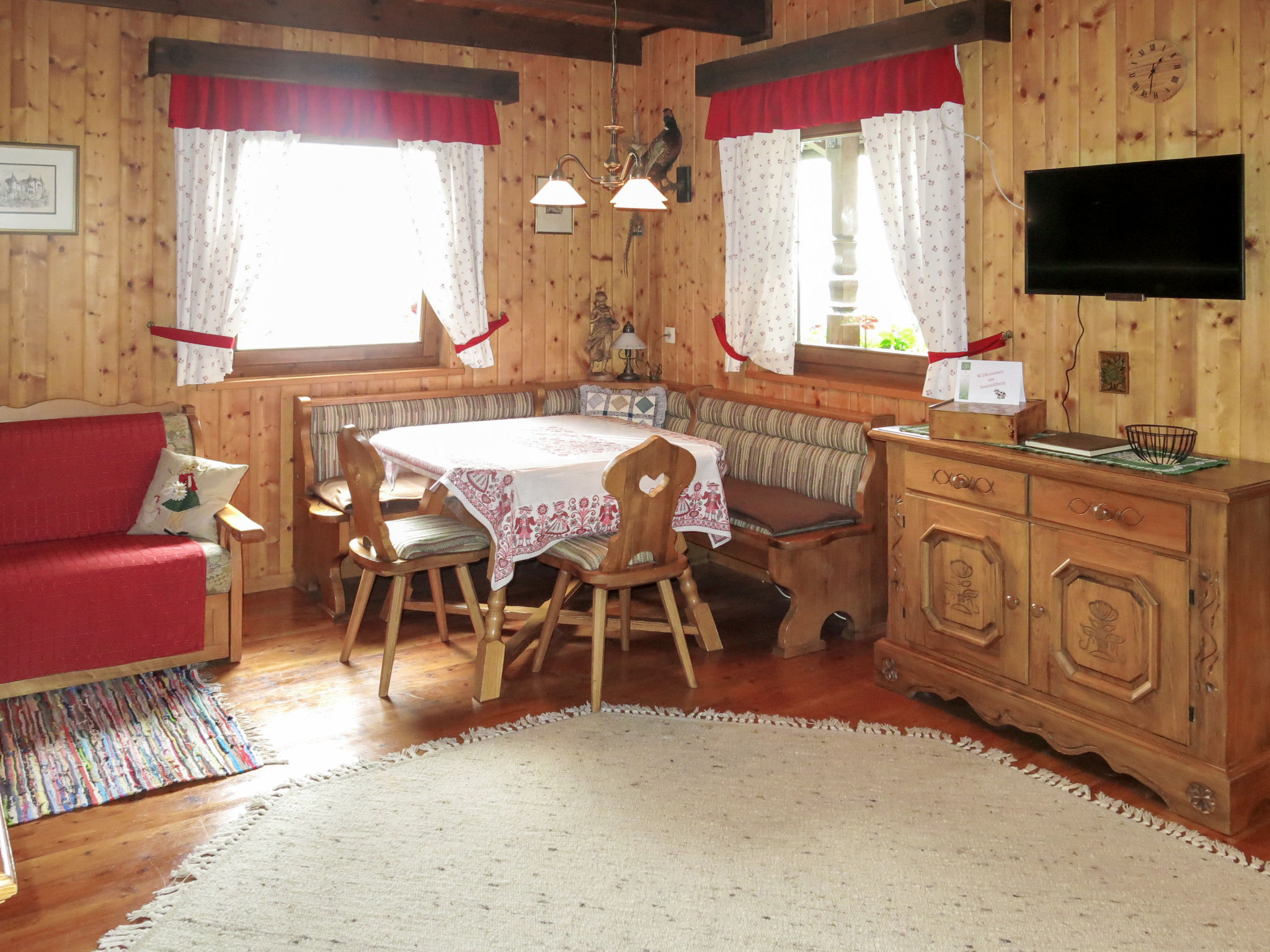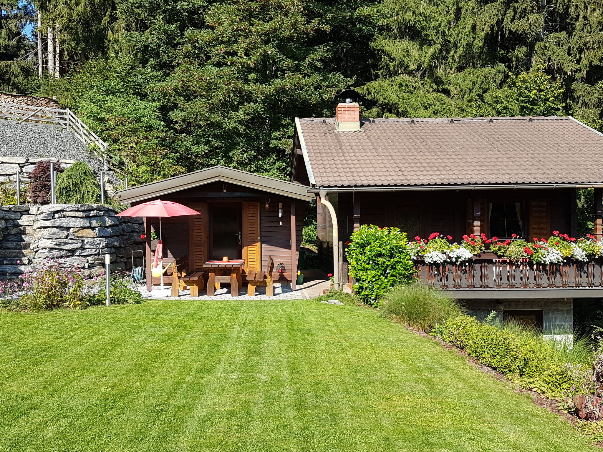 Die SAURACHBERGHÜTTE, ein Ferienhaus und eine kleine Hütte, liegen am gleichnamigen Berg auf 1000 m Höhe, 7 km von Feldkirchen entfernt. Zufahrt über asphaltierte Bergstraße. Ossiacher See 15 km. Flatschacher See 7 km. Einfahrtstor. 1 Parkplatz auf dem Grundstück, 2 weitere Parkplätze unmittelbar vor dem Einfahrtstor. Das terrassierte, ca. 600 m² große, abgeschlossene Gartengrundstück wurde 2014 komplett umgestaltet und neu angelegt. Große ebene Liegewiese mit Rasen. Freisitz mit herrlichem Blick ins Tal bis zu den Karawanken. Schöne möblierte Terrasse vor der Hütte. 2 Sonnenliegen. Grill. Das Haus und die unmittelbar daneben liegende kleine Hütte sind gut und rustikal eingerichtet (Holzverkleidung, Holzdielenböden). Im Ferienhaus neue Küche und neues Bad, Kaminofen (Holz inklusive), Sat-TV, Stereo-Anlage, umlaufender Balkon. In der Hütte Elektroradiator.