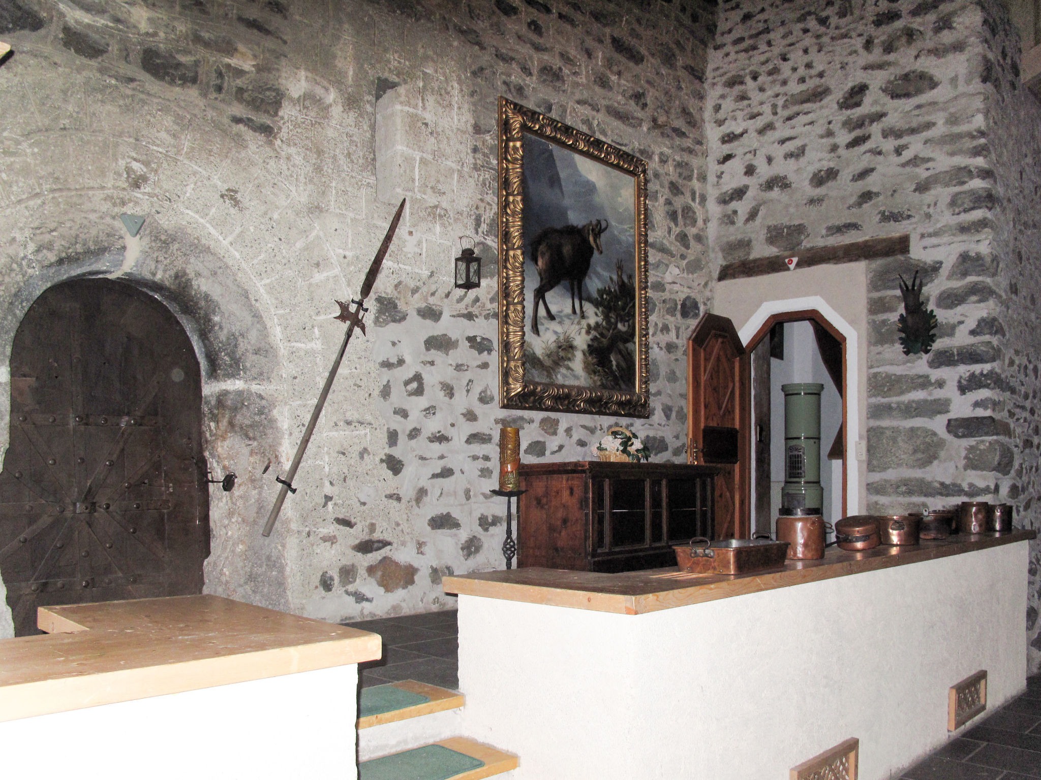 BURG BIEDENEGG, in Fliess liebevoll 'Schloss' genannt, steht in dominierender Lage hoch über Fliess. Herrlicher Rundblick über Ort, Tal und Berge. Ortsmitte mit Lebensmittelgeschäft ca. 850 m. Freibad 2 km. Supermarkt und Hallenbad (im Hotel Mozart) in Landeck, 8 km. Die aus dem 11. Jhdt. stammende Burg ist vollständig erhalten, Schutzmauern mit Tor, Pforte, Burghalle und Turm lassen das Mittelalter aufleben. Die Burg wurde in 8 großzügige Wohnungen umgewandelt, wovon eine gelegentlich vom Besitzer bewohnt wird. Über einen Vorraum erreicht man die große, hohe Burghalle in Naturstein, von der aus man intern, teils über Treppen, zu den einzelnen Wohnungen gelangt. Jede Wohnung, nach einem der vergangenen Burggeschlechter benannt, wird von dessen Wappen geziert. Burg Biedenegg bietet Sauna (montags 1x pro Woche im Preis inklusive, ansonsten € 6/Person), Kinderspielzimmer. Im Burggarten vor den Mauern (innerhalb des umzäunten Privatgrundstücks) einige Kinderspielgeräte und Liegewiese mit einigen Obstbäumen. Vor der Burgpforte Freisitz mit Mobiliar für ca. 30 Personen und Grill zur allgemeinen Nutzung. Großer Privatparkplatz vor den Burgmauern. Den Gästen von FIE 211 steht zusätzlich zu den jeweiligen Wohnungen das 'Schlosscafé' zur Verfügung. Dieses ehemalige Café (ca. 53 m²) bietet Essplätze für 20 Personen, Bartresen und eine schmale Küche (4 Platten, Backofen, Geschirrspüler, 2x Kühlschrank, Wasserkocher, Toaster). Es liegt im Erdgeschoss neben der Burgpforte mit Zugang von der Burghalle und hat einen eigenen Ausgang zum Freisitz. Die Ferienwohnungen sind rustikal mit schönen Holzmöbeln, teils handbemalten Bauernmöbeln stilvoll eingerichtet, der Burgatmosphäre bestens angepasst. Jeweils Parkettboden. Sat-TV. Internetzugang (WLAN, inklusive). Öl-Zentralheizung. Winter-Infos: Bergbahn/Skilift/Skischule: Venet-Süd 5,5 km, Fiss/Serfaus 21 km, Kaunertaler Gletscher 42 km. Skibushaltestelle ca. 150 m (kostenloser Pendelbus Fliess-Venet Süd). Rodelbahn 5,5 km. Langlaufloipe 2 km. Skiraum mit Skischuhheizung.