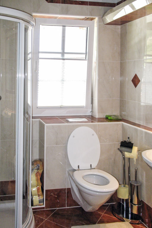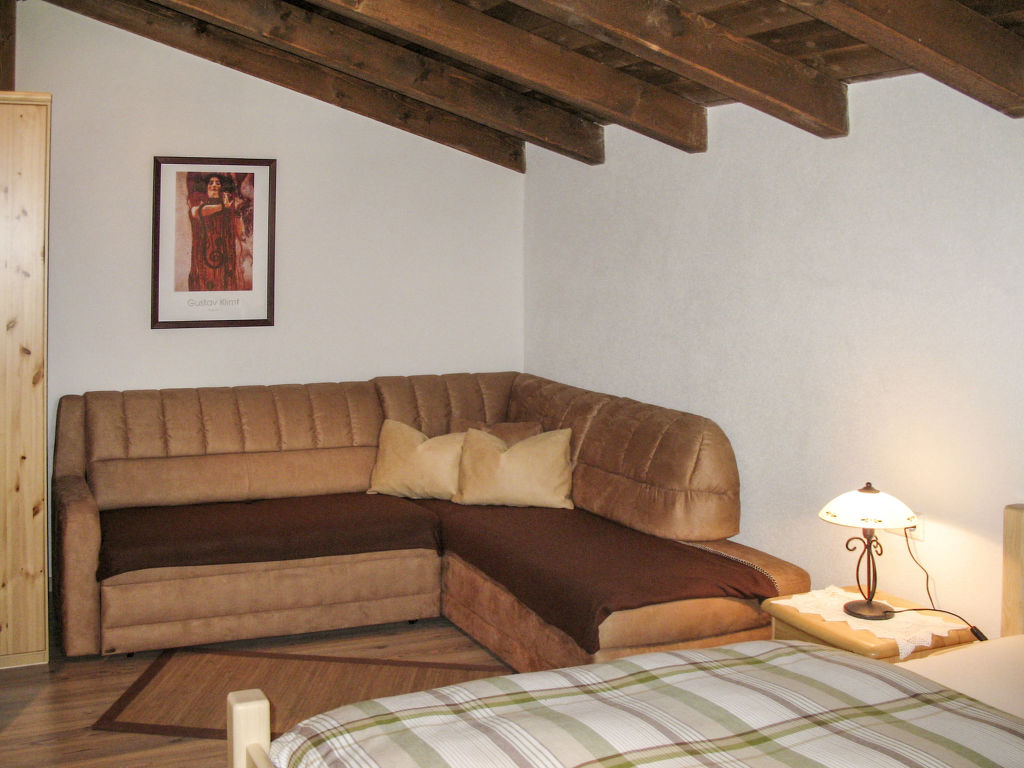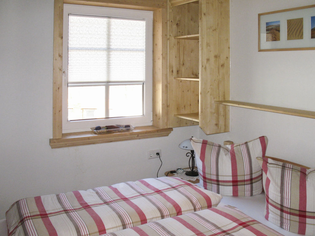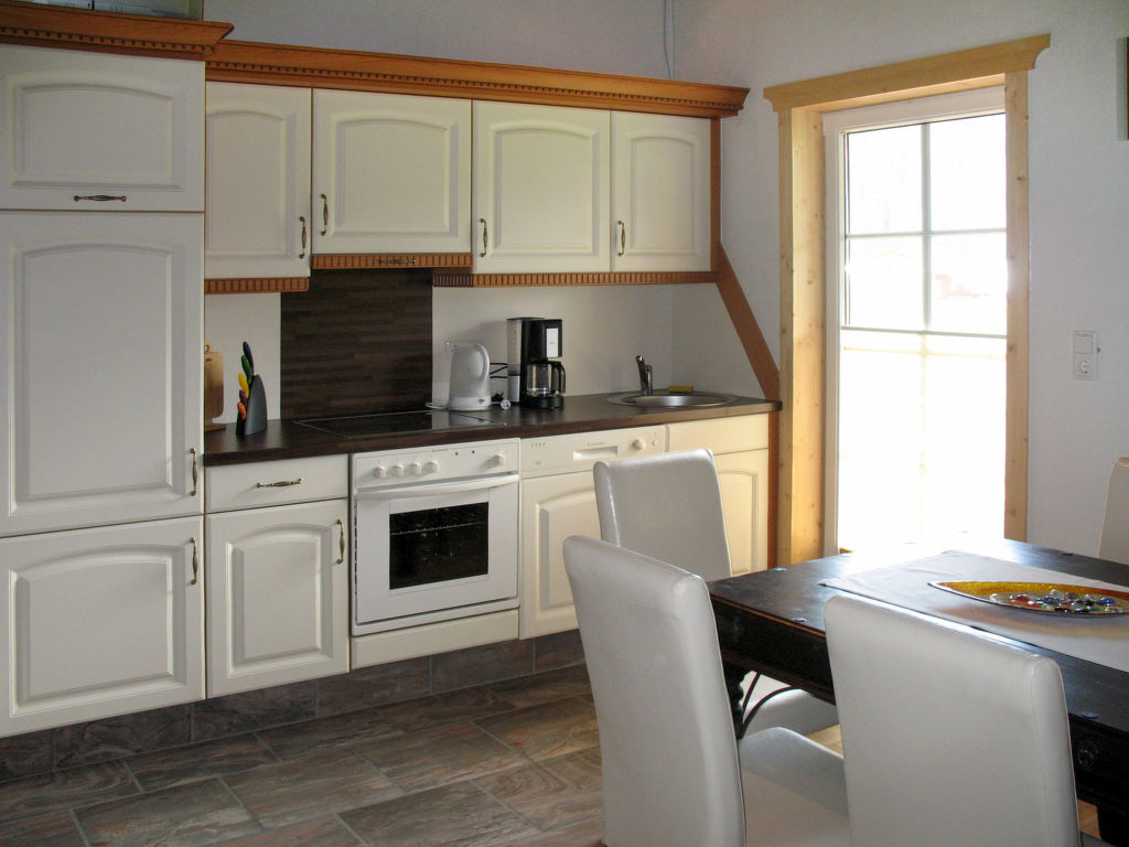 3-Zimmer Wohnung, 1. Etage, ca. 70 m². Vorraum mit Garderobe. Wohn-/Schlafraum mit Doppelbettcouch, Essplatz und Küchenzeile (4 Ceranfelder, Backofen, Mikrowelle, Geschirrspüler, Kühlschrank, Kaffeemaschine, Wasserkocher, Toaster), Balkonausgang. Doppelzimmer. Schlafzimmer mit Doppelbett und Doppelbettcouch (als Zusatzbett, siehe Nebenkosten). Dusche/WC.