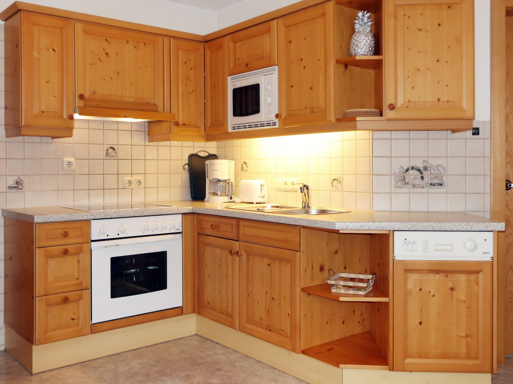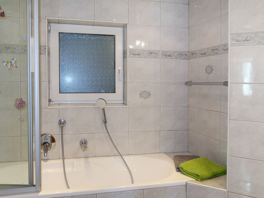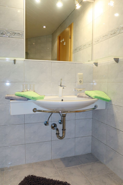 2-Zimmer-Wohnung, Erdgeschoss, ca. 44 m². Eingang in Wohnküche (4 Ceranfelder, Backofen, Mikrowelle, Geschirrspüler, Kühlschrank, Kaffeemaschine, Wasserkocher, Toaster) mit Essplatz (Eckbank) und fest eingebautem Einzelbett (0,75 m breit, 1,70 m lang). Doppelzimmer. Bad/WC.Maximale Belegung: 2 Erwachsene und 1 Kind bis ca. 10 Jahre.