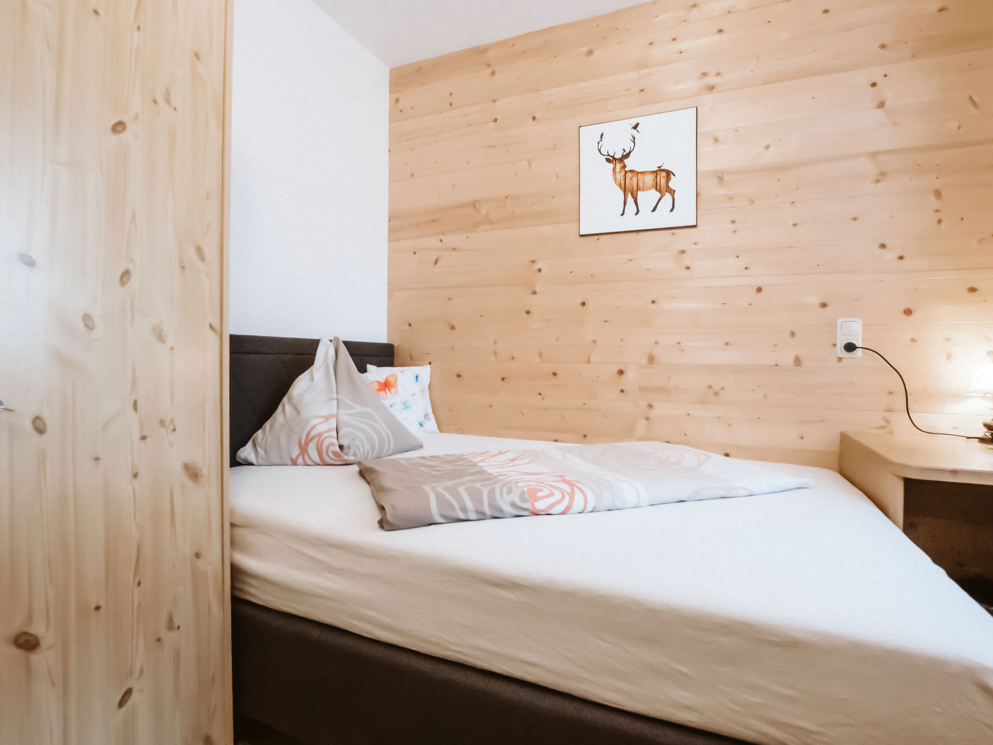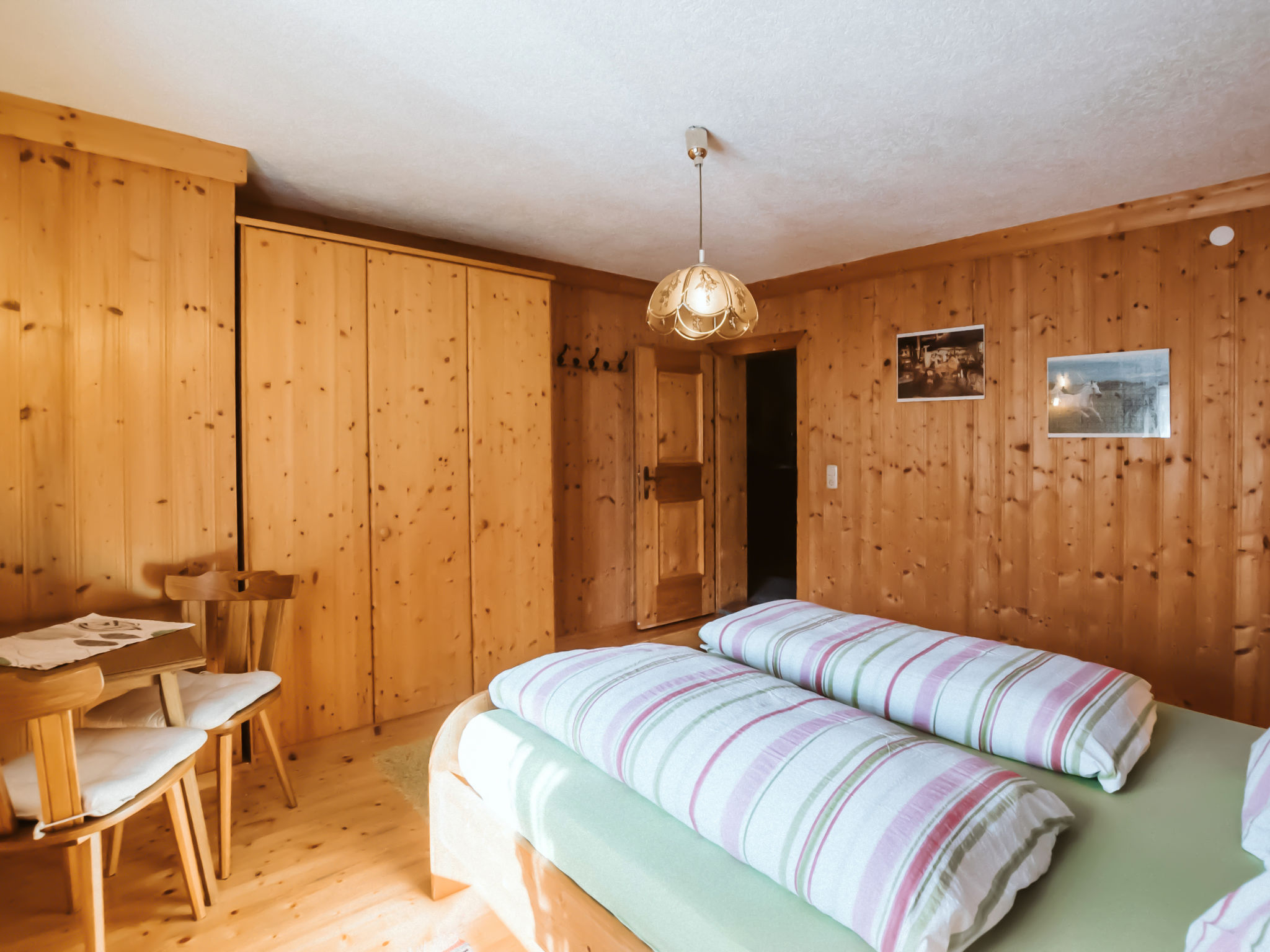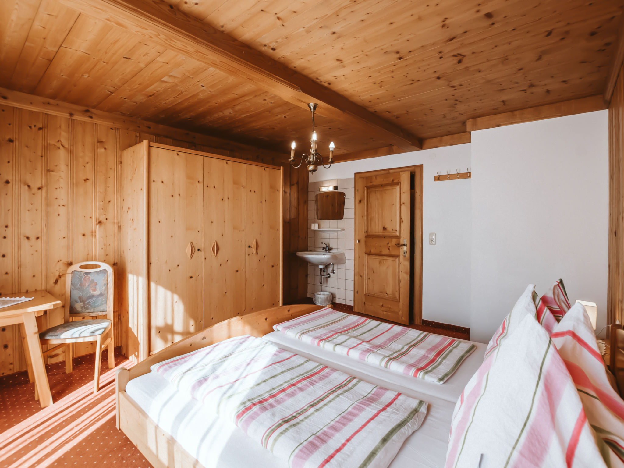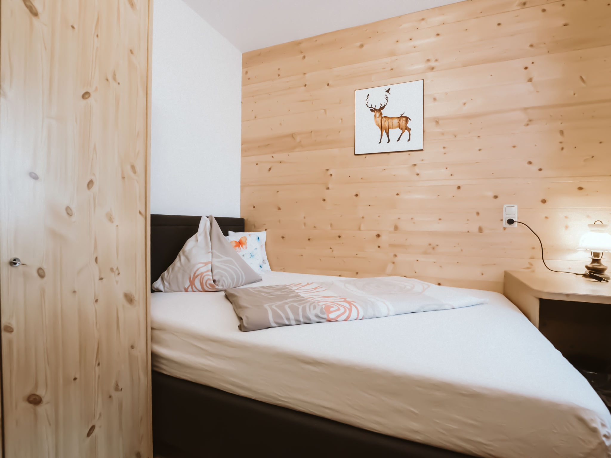9-Zimmer-Haus, 3 Etagen, ca. 220qm. Dieses Angebot setzt sich aus der Kombination der Wohnungen BMG 141 und BMG 142 zusammen: 5-Zimmer-Wohnung, 2 Etagen, ca. 155 m². Untergeschoss: 3 Doppelzimmer. Dusche/WC. Erdgeschoss: Bauernstube mit Essplatz (Eckbank), Sitzcouch, Sessel, Kachelofen, Balkonausgang. Küche (4 Ceranfelder, Zusatzherd, Backofen, Mikrowelle, Geschirrspüler, Kühlschrank, Kaffeemaschine) mit Essplatz (Eckbank). Doppelzimmer (Boxspringbett). Bad/Dusche. Sep.WC. 4-Zimmer-Wohnung, 1. Etage, ca. 65 m². Zugang über Außentreppe. Flur mit Garderobe. Wohnküche (4 Ceranfelder, Backofen, Kühlschrank, Kaffeemaschine, Wasserkocher) mit Essplatz (Eckbank) für 6 Personen, Balkonausgang. 3 Doppelzimmer, jeweils mit Balkonausgang. Dusche/WC. Sep.WC. Bad (Eckwanne)/Dusche. 50601-000413-2020
