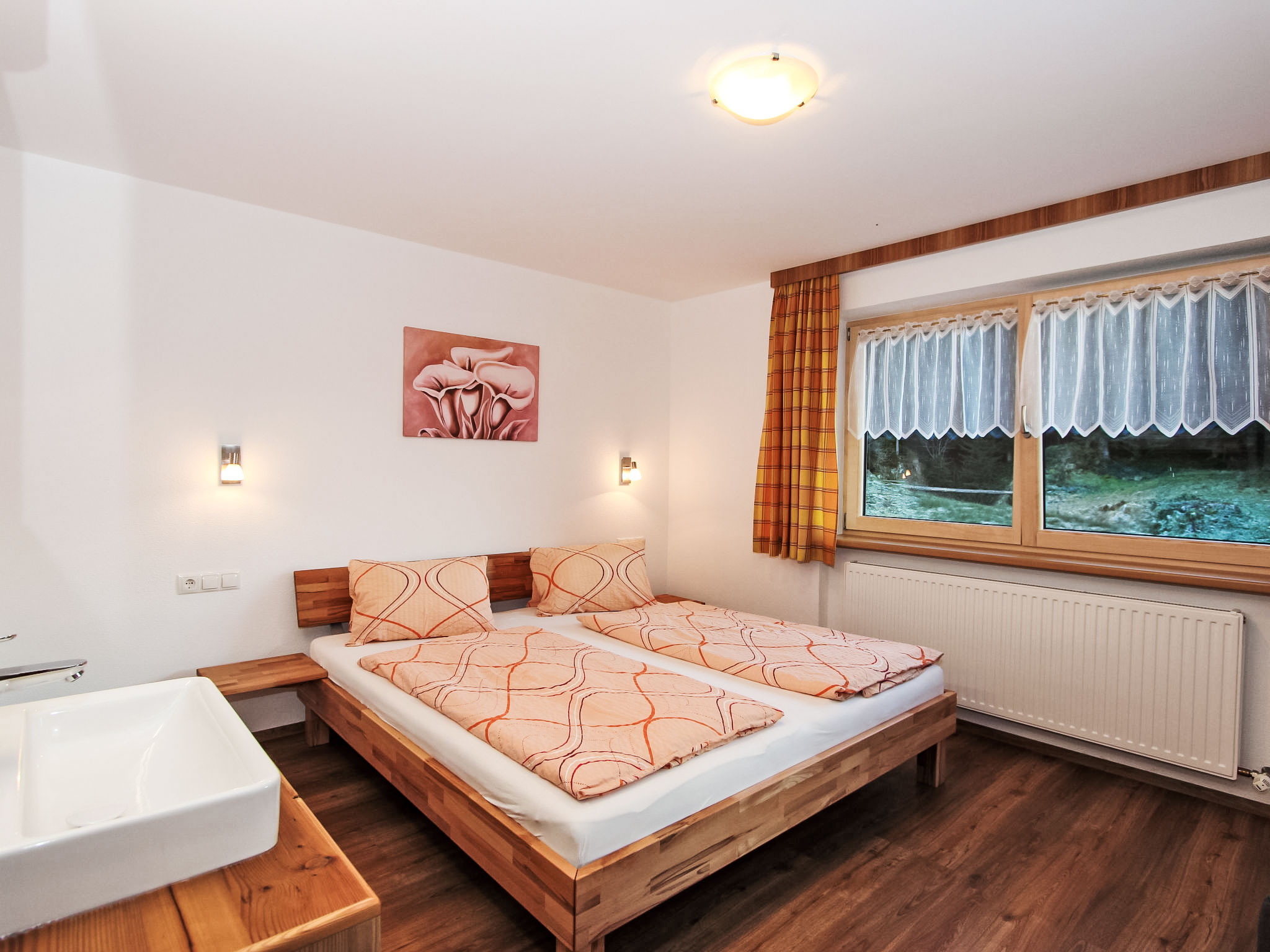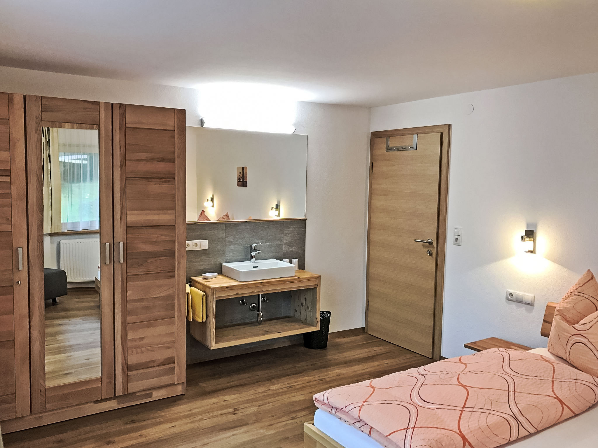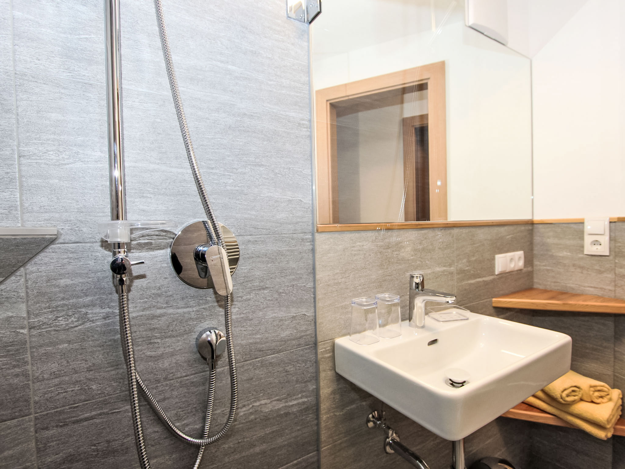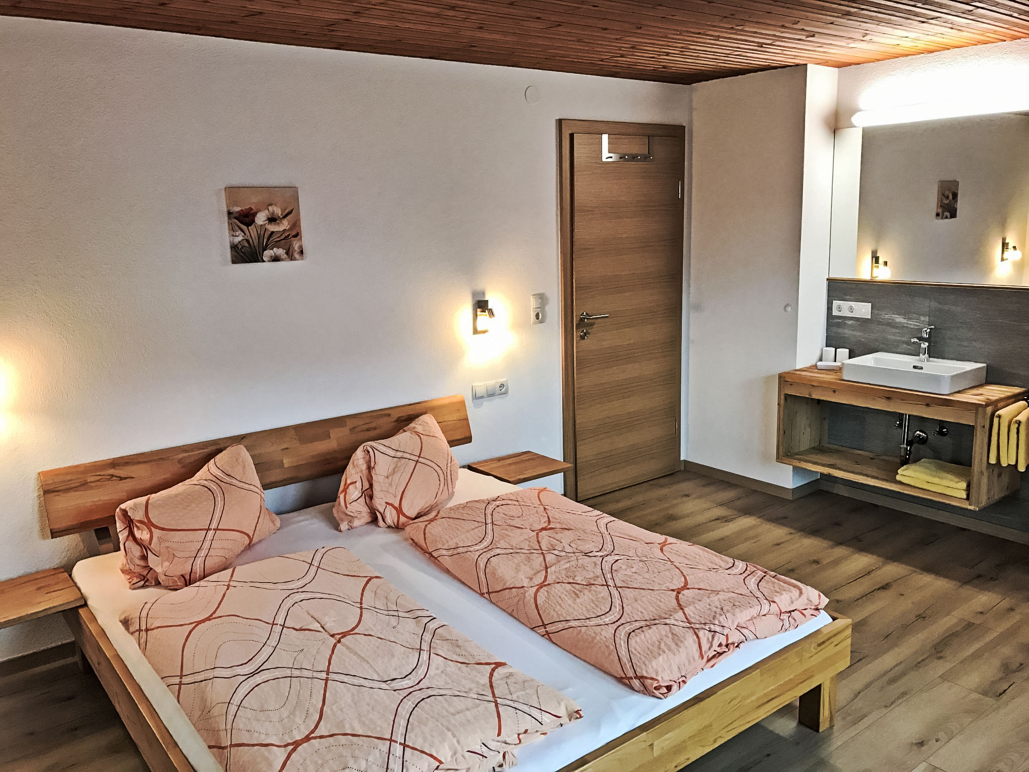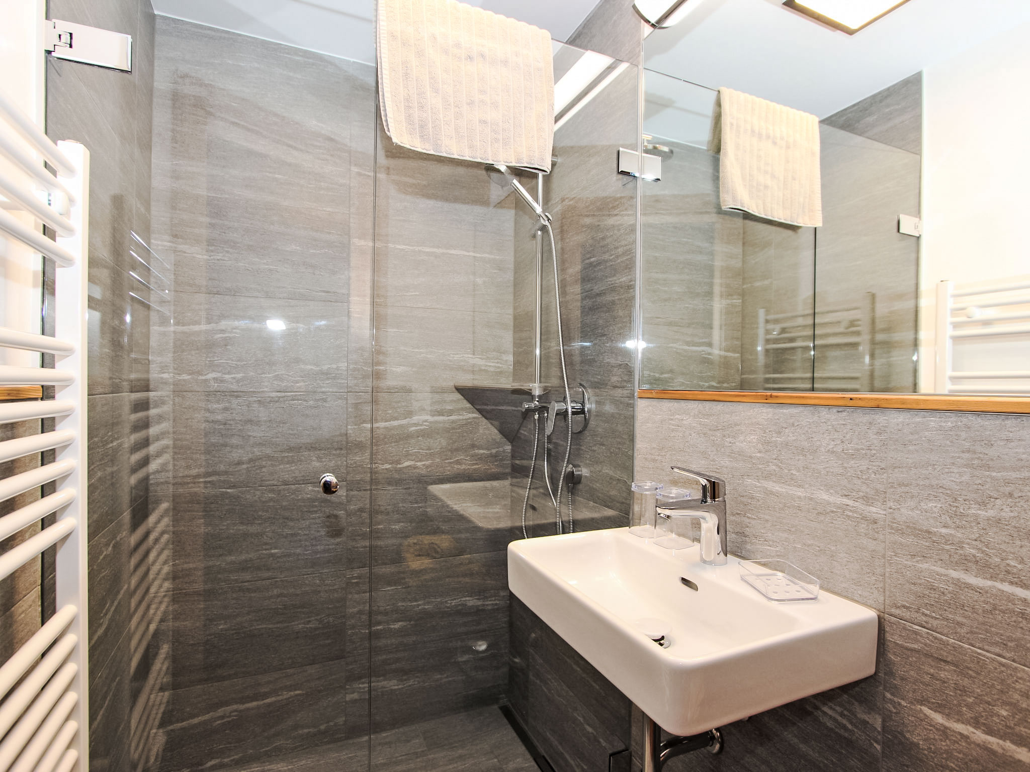 8-Zimmer-Haus 210 m2 auf 3 Stockwerken. Komfortabel und geschmackvoll eingerichtet: Eingang. Ausgang zum Garten. 2 Zimmer, jedes Zimmer mit 1 Doppelbett und 1 Ausziehbett (1 Pers.). Grosse Wohnküche (Backofen, Geschirrspüler, 4 Glaskeramikherd Platten) mit Esstisch, Radio und CD. Dusche/WC, sep. WC. Obergeschoss: Eingang. Wohnzimmer mit 2 Diwanbetten und Sat-TV (Flachbildschirm). Ausgang zum Garten, zum Balkon, zur Terrasse. 1 Doppelzimmer. Ausgang zum Garten, zur Terrasse. Wohnküche (Backofen, Geschirrspüler, 4 Glaskeramikherd Platten, Mikrowelle) mit Esstisch, 1 Diwanbett, Radio und CD. Bad, sep. WC. 2. Obergeschoss: 3 Zimmer, jedes Zimmer mit 1 Doppelbett und 1 Ausziehbett (1 Pers.), Waschbecken. Ausgang zum Balkon. 1 kleines Zimmer mit 1 x 2 Etagenbetten. 2 Duschen, 2 sep. WC's. Das Wohnzimmer ist eine Bauernstube. 2 grosse Balkone, Terrasse. Terrassenmöbel, Liegestühle (5). Herrliche Panoramasicht auf die Berge, das Tal und die Landschaft. Zur Verfügung: Kinderhochstuhl. Internet (Wireless LAN, gratis). Bitte beachten: Nichtraucher-Unterkunft. Schöner Grillplatz vorhanden.