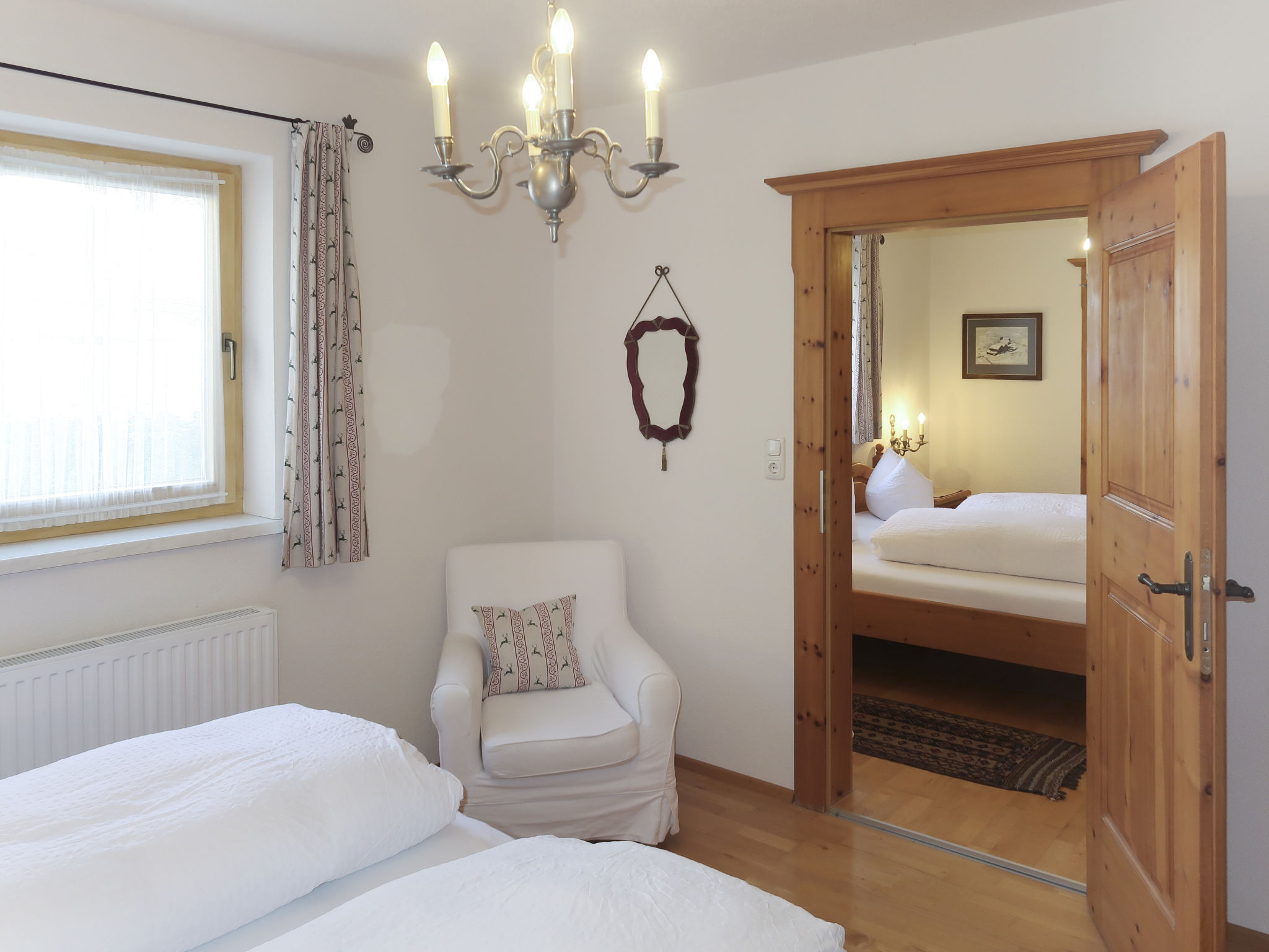 6-Zimmer-Haus, 2 Etagen, ca. 125 m². Erdgeschoss: Flur. Stube mit Sitzgruppe, Essplatz (Eckbank) und Kachelofen (nur Dekoration). Küche (4 Ceranfelder, Mikrowelle, Geschirrspüler, Kühlschrank, Kaffeemaschine, Wasserkocher, Toaster). Doppelzimmer mit Dusche/WC. Doppelzimmer mit Zugang zu weiterem Doppelzimmer, von beiden Zimmern Zugang zu gemeinsamer Dusche/WC. Treppe zum Obergeschoss (gemütliche Dachschräge): Doppelzimmer mit Sitzgruppe. Zweibettzimmer. Dusche. Sep.WC. Bei Belegung mit weniger Personen als der maximalen Personenzahl stehen nicht alle Wohneinheiten zur Verfügung.