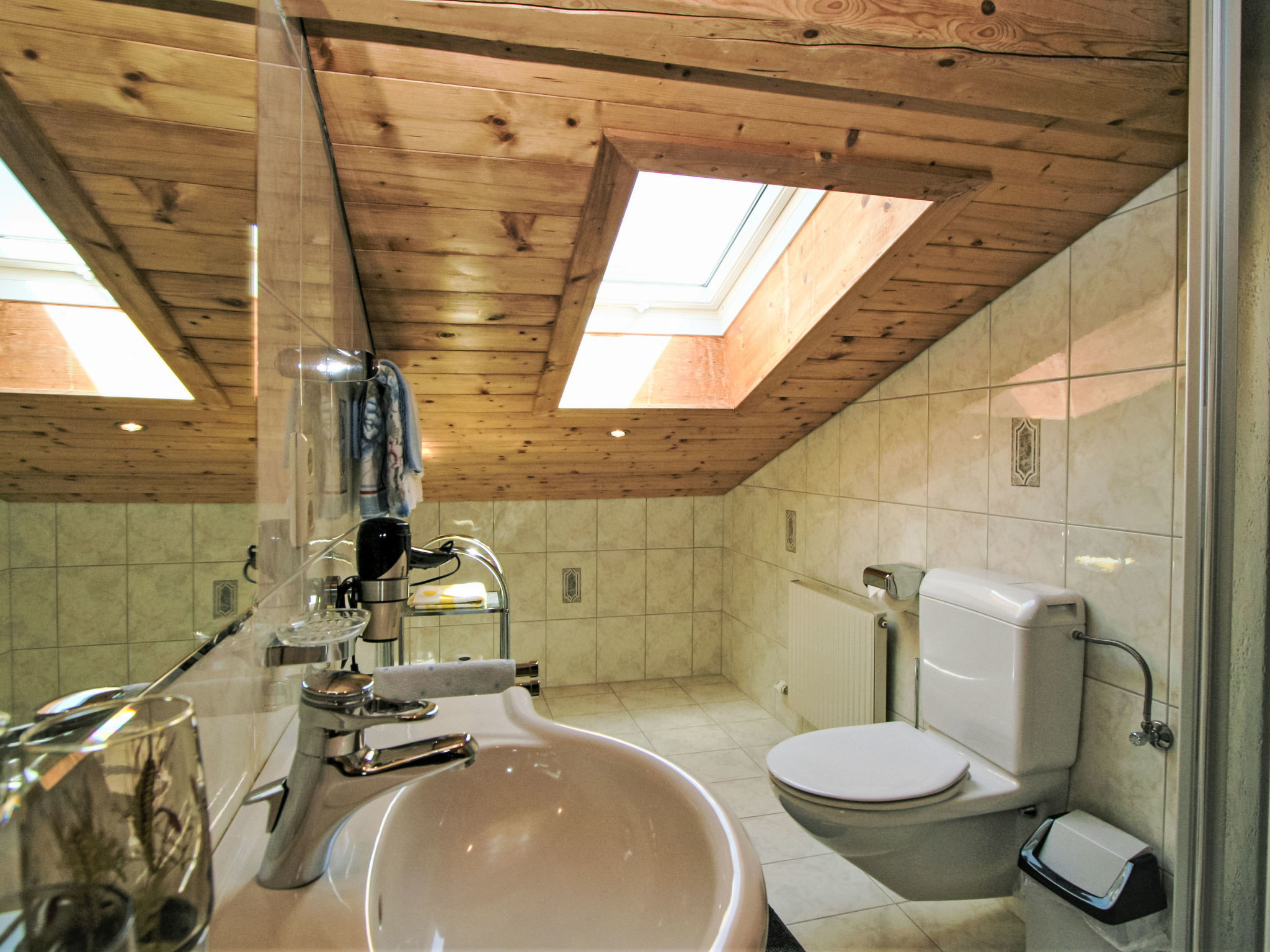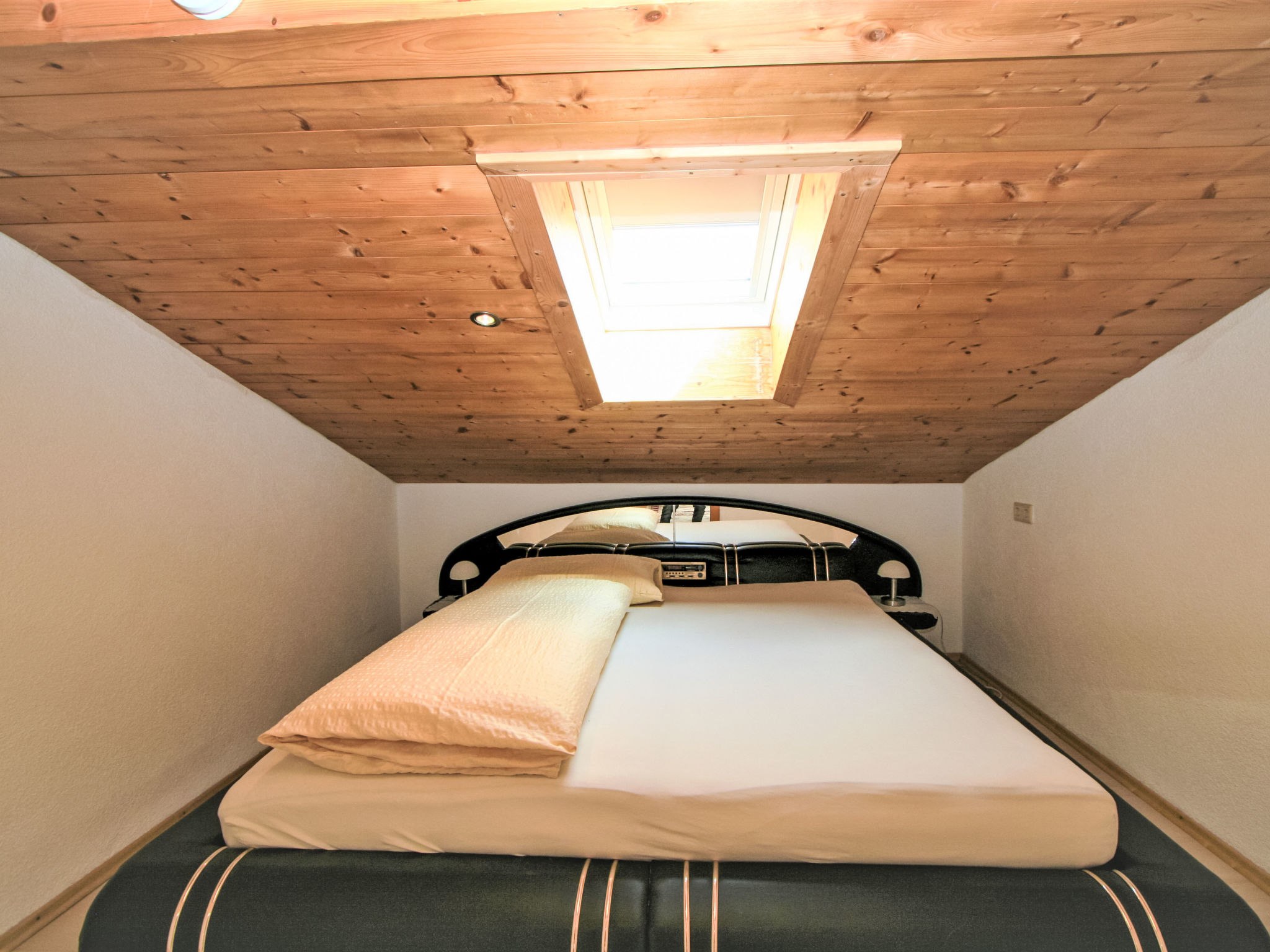 5-Zimmer-Wohnung 150 m2. Geräumig, teilweise abgeschrägt, gemütlich eingerichtet: 3 Doppelzimmer, jedes Zimmer mit Waschbecken. Ausgang zum Balkon. Wohnküche (4 Kochplatten, Backofen, Geschirrspüler, elektrische Kaffeemaschine) mit Essecke und Sat-TV. Ausgang zum Balkon. Dusche, sep. WC. Dachgeschoss: abgeschrägtes Wohnzimmer mit Sat-TV (Flachbildschirm). 1 Zimmer mit 1 Doppelbett (2 x 80 cm, Länge 200 cm). Dusche/WC. Grosser Balkon 20 m2. Balkonmöbel. Sehr schöne Panoramasicht auf die Berge und die Landschaft. Zur Verfügung: Internet (Wireless LAN, gratis). Parkplatz. Bitte beachten: Nichtraucher-Haus.
