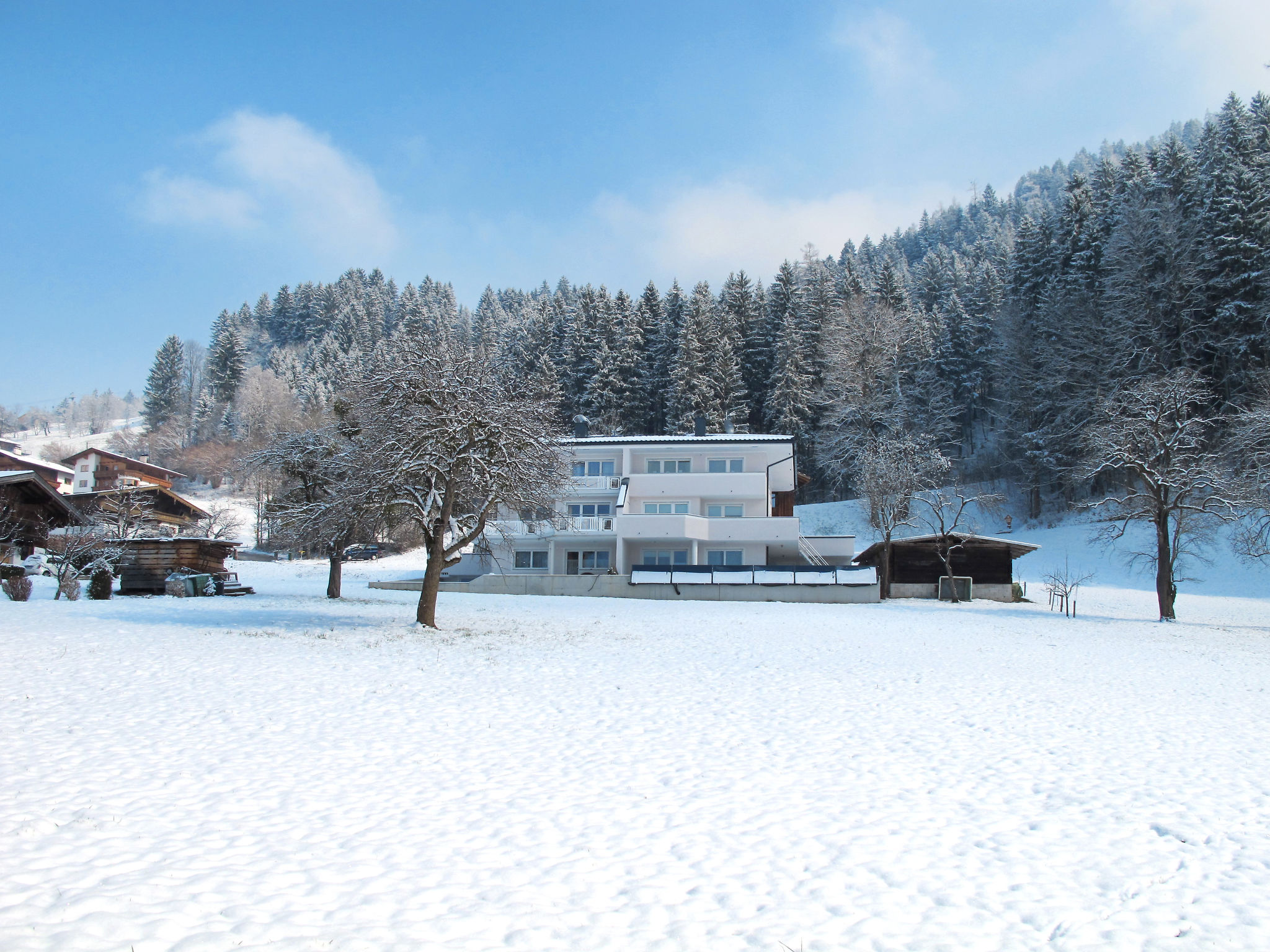 CHALET SCHIESTL, ein 2012 gebautes Doppelhaus mit 2 Wohnungen, steht in sonniger Hanglage in Ramsau, ca. 500 m von der Ortsmitte entfernt. Restaurant ca. 200 m. Erlebnisschwimmbad in Hippach ca. 700 m, Mayrhofen 3,5 km. Brötchenservice. Parkplätze beim Haus. Infrarotsauna im Untergeschoss (inklusive). Teilüberdachte Terrasse (ca. 30 m²) mit Mobiliar und Sonnenliegen, Balkon (ca. 10 m²). Moderne Einrichtung und gute Ausstattung. Parkett- und Fliesenboden. Radio/CD. Internetzugang (WLAN, inklusive). Sat-TV in allen Zimmern. DVD. Gas-Zentralheizung. Hinweise: Rauchen ist in der Wohnung nicht gestattet. Der Vermieter erlaubt im Zeitraum 01.05.-31.10.20 die Mitnahme eines Haustiers. In den übrigen Zeiträumen ist die Mitnahme eines Haustiers nicht erlaubt. Winter-Infos: Skibushaltestelle ca. 50 m. Horbergbahn 2 km. Langlaufloipe 2 km. Im Haus Ski- und Schuhraum mit Skischuhtrockner.