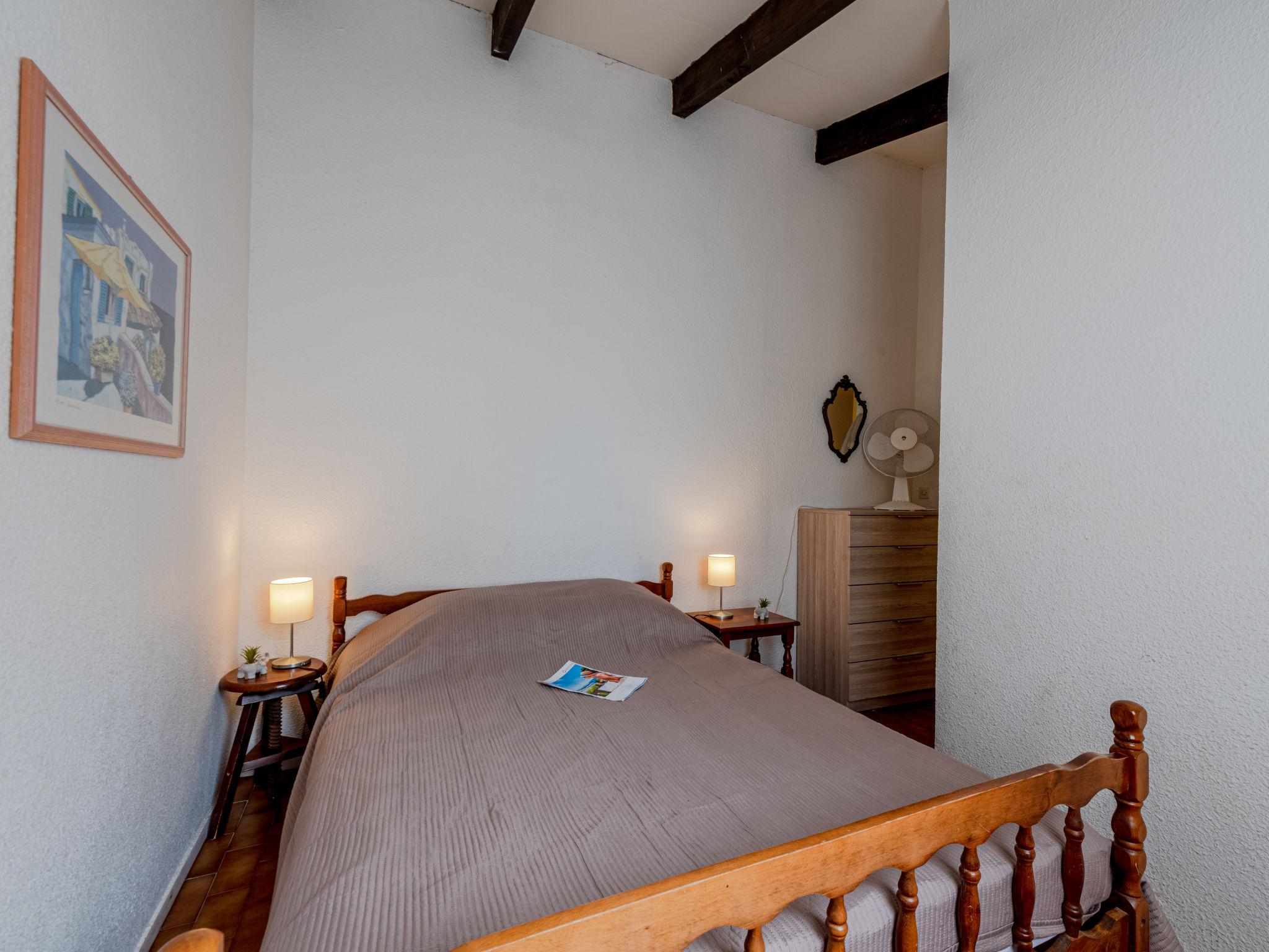 2-Zimmer-Reihenhaus 37 m2. Wohn-/Esszimmer mit TV (Flachbildschirm). Ausgang zur Terrasse. 1 Zimmer mit 1 franz. Bett (140 cm, Länge 190 cm). Kabine mit 1 x 2 Etagenbetten (90 cm, Länge 180 cm). Kochnische (3 Kochplatten, Backofen, Mikrowelle, Tiefkühler). Bad, sep. WC. Terrasse, kleiner Garten 30 m2, Südlage. Terrassenmöbel, Elektrogrill. Zur Verfügung: Waschmaschine. Internet (Wireless LAN, extra). Parkplatz. Bitte beachten: Maximal 1 Haustier/Hund erlaubt. Rauchmelder. Inserat einer Privatperson nach Artikel 155, IV, CGI.