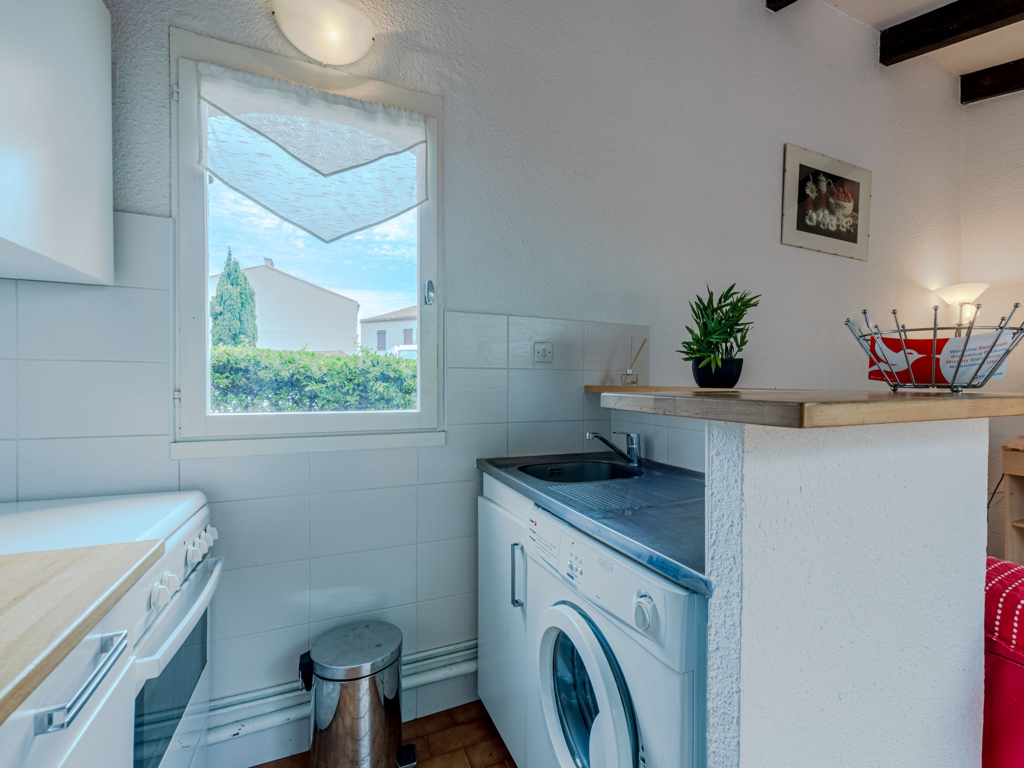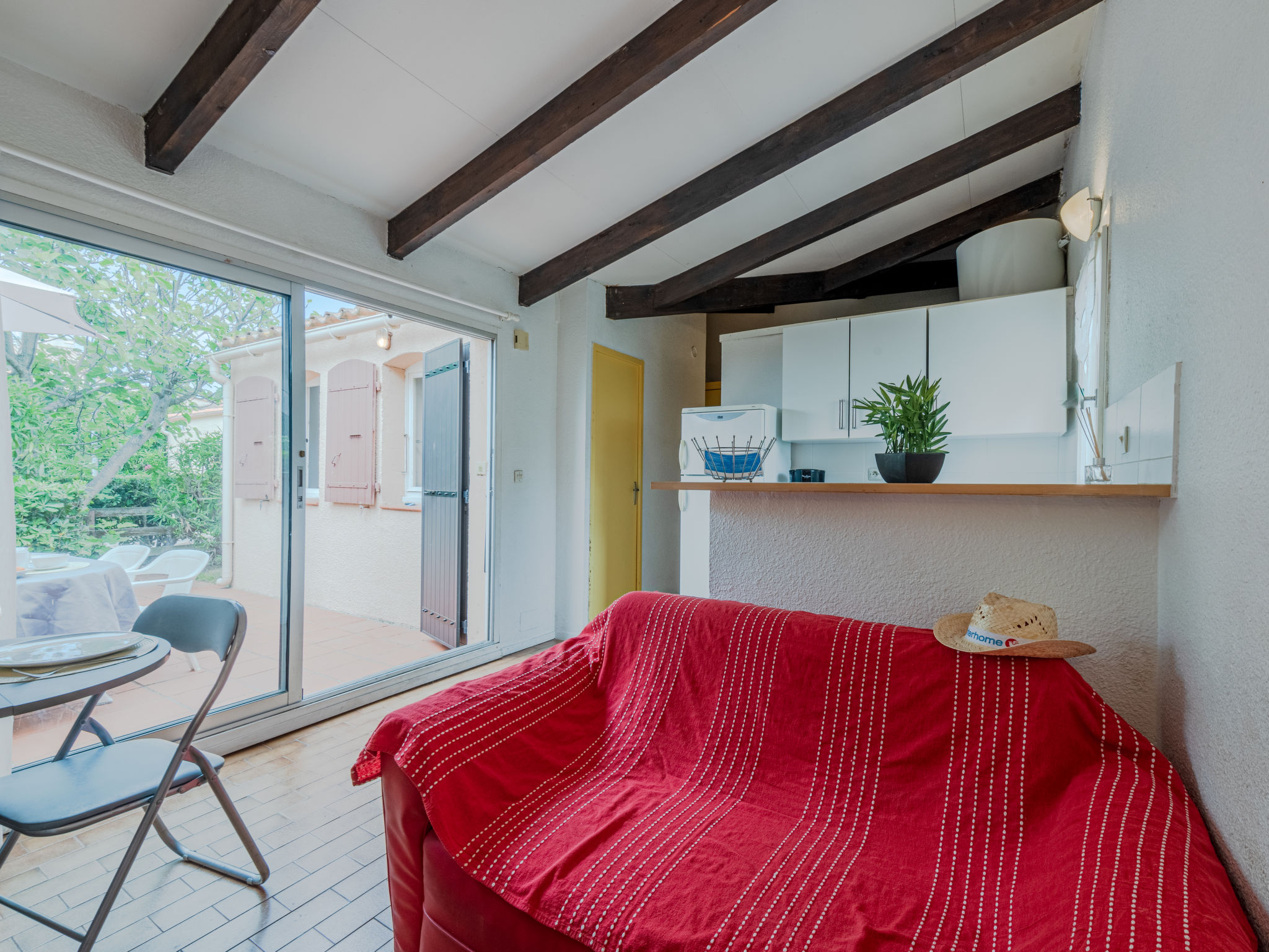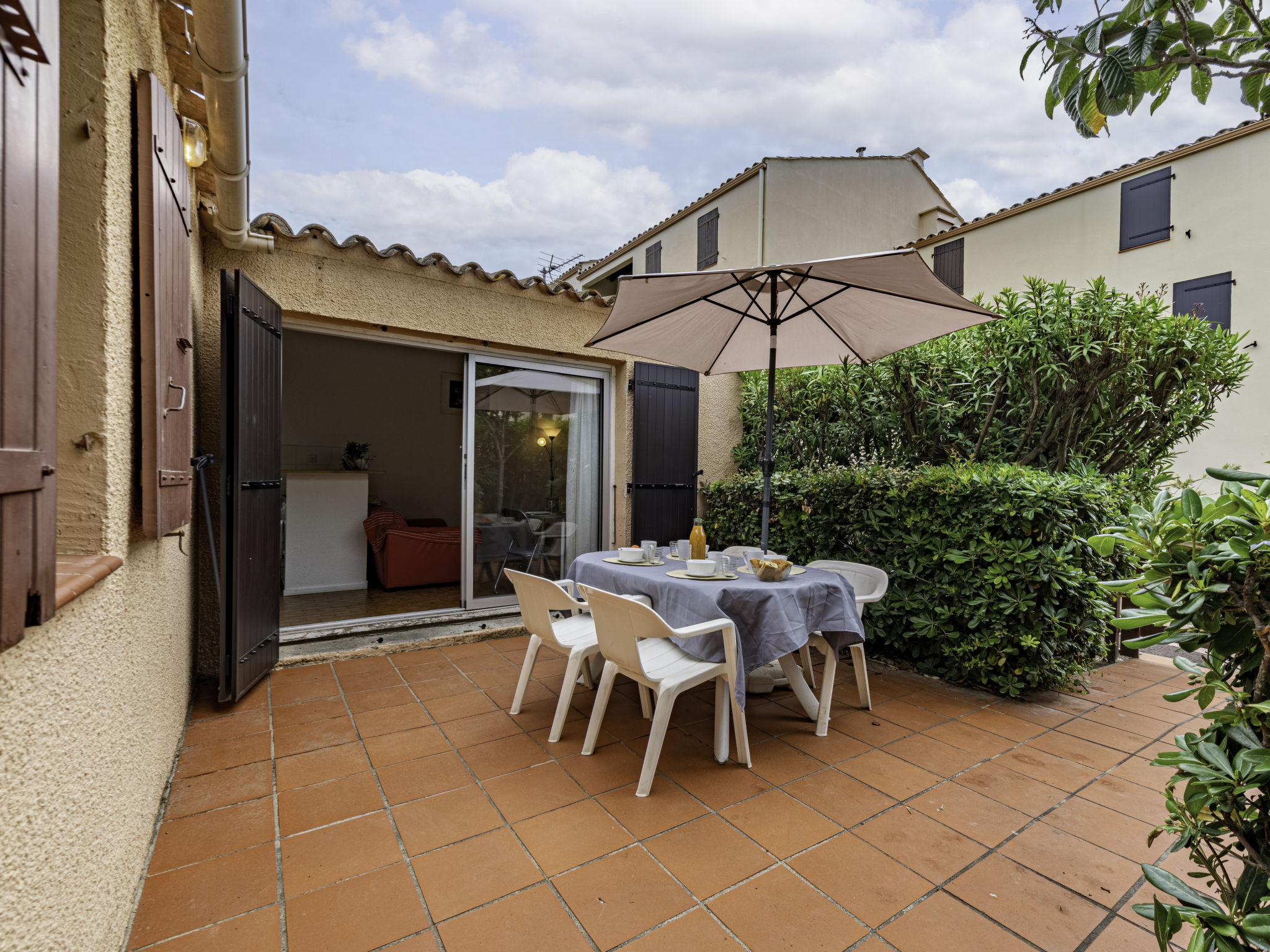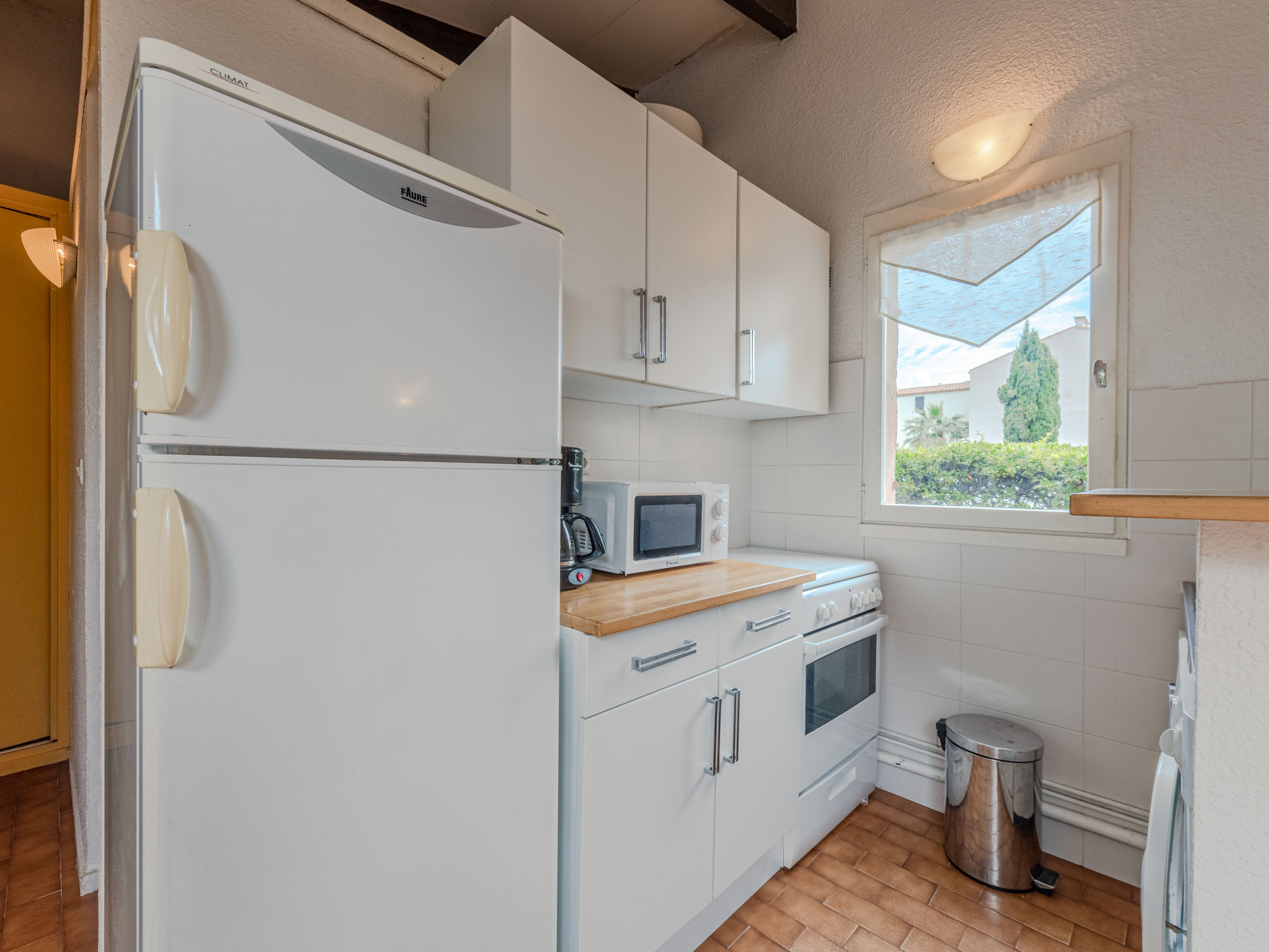 Residenz "Le Hameau des Capellans". Im Ortsteil Les Capellans, 800 m vom Meer, 800 m vom Strand, direkter Zugang zur Lagune. Zur Mitbenutzung: Schwimmbad (20 x 10 m, 105 - 240 cm tief, saisonale Verfügbarkeit: 15.Jun.-15.Sep.). Einkaufsgeschäft, Lebensmittelgeschäft 800 m, Supermarkt 2.7 km, Restaurant 800 m, Bahnstation "Elne" 8 km, Sandstrand "Plage du pont tournant" 800 m. Sporthafen 1.5 km, Golfplatz (27 Loch) 4.7 km, Segelschule 1.2 km, Minigolf 3.4 km, Reitstall 1.6 km, Sportzentrum 1.5 km. Nahe gelegene Sehenswürdigkeiten: Aqualand 2.6 km.